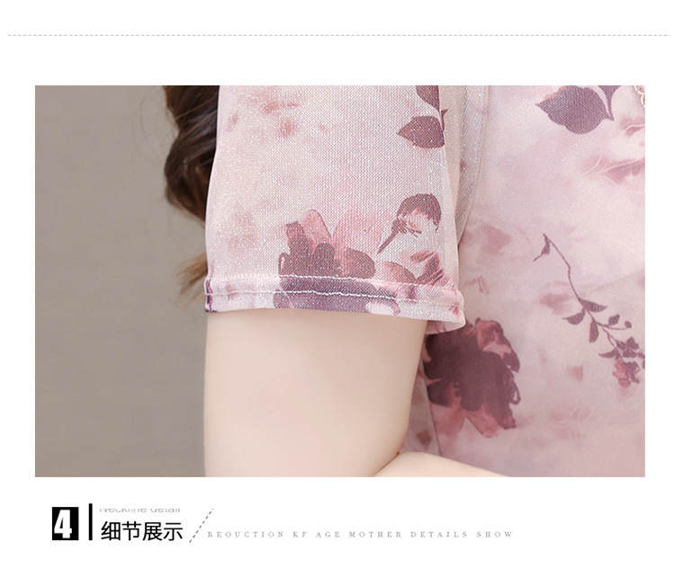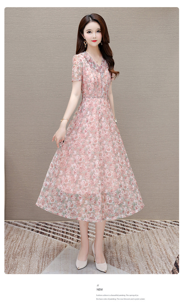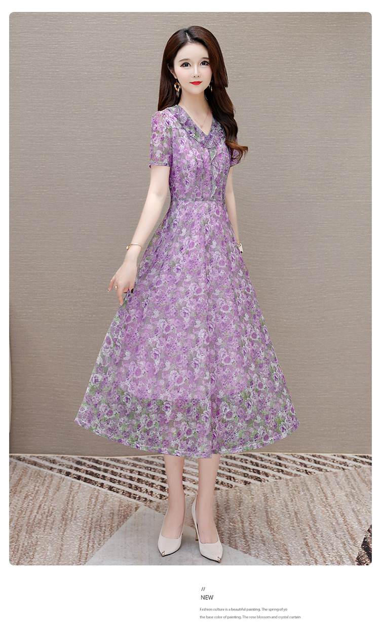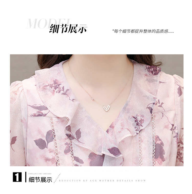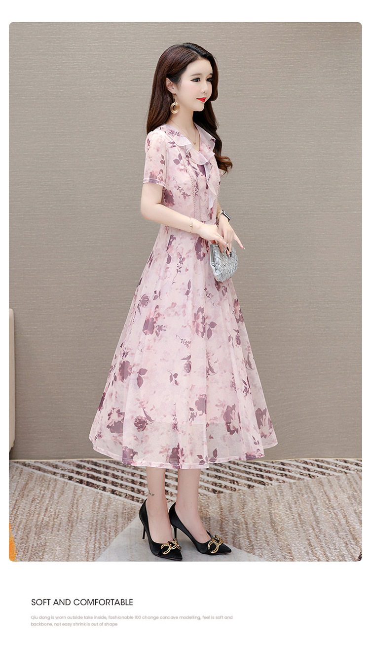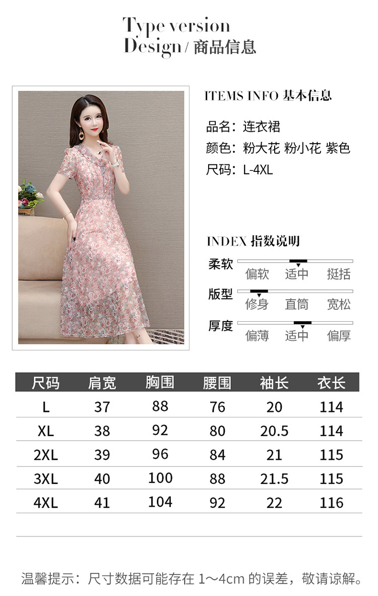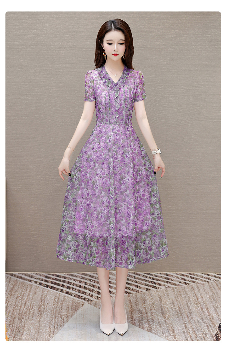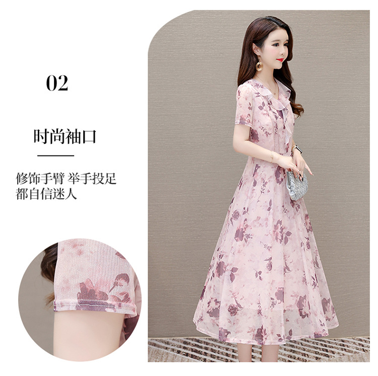 印花雪纺修身时尚连衣裙,荷叶边V领短袖洋气休闲A字裙QYM-XQD-54B2423-L