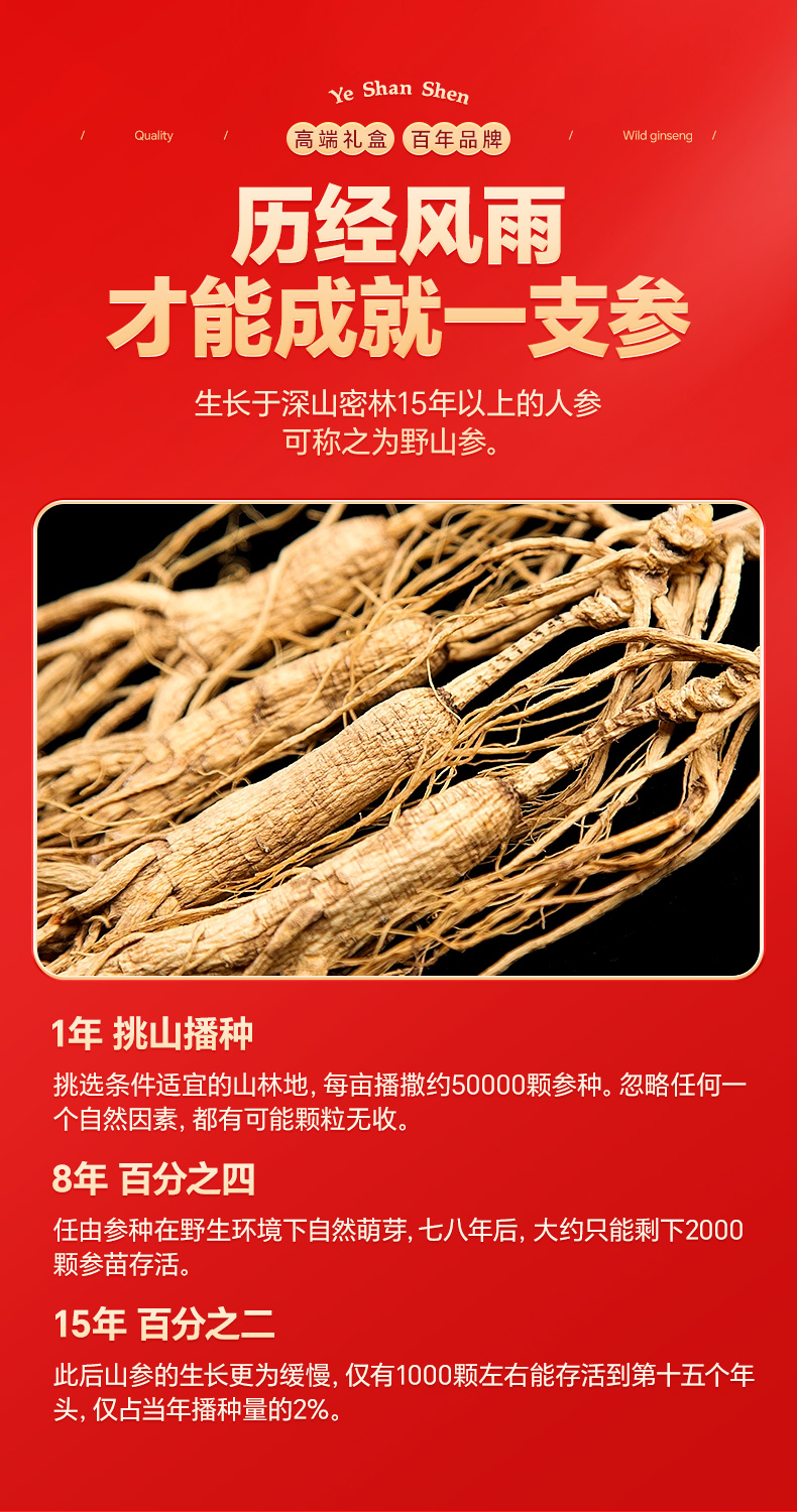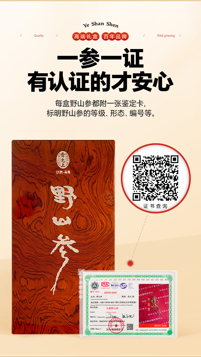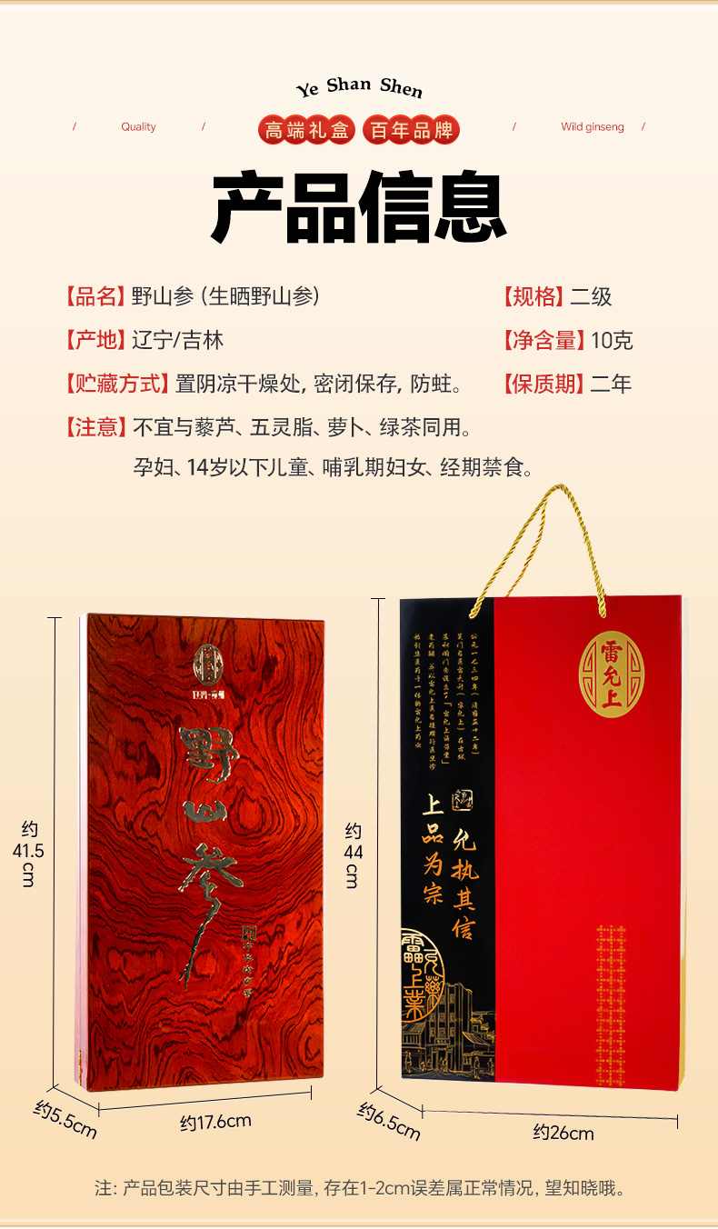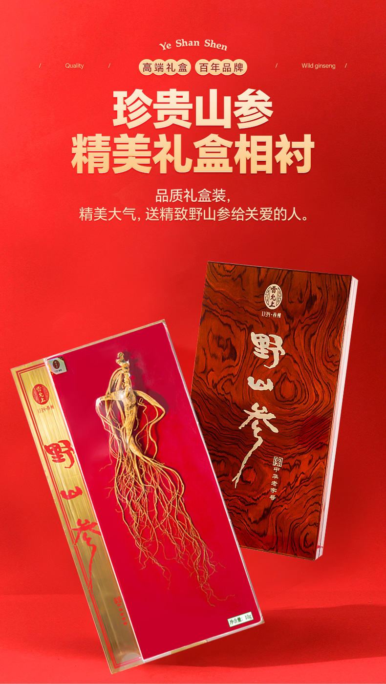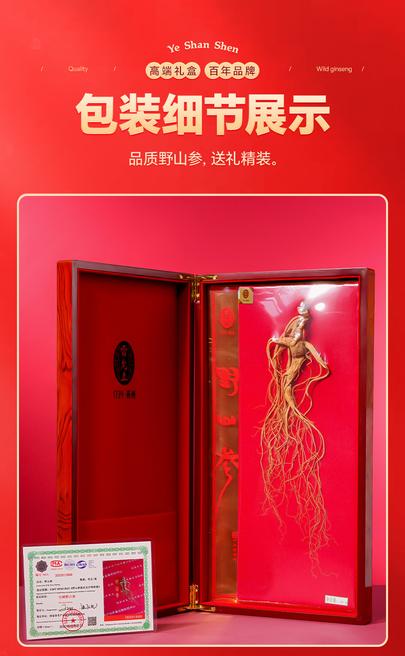 雷允上直营 | 长白山林下野山参整支10g/盒 生长周期15年以上 高端木盒