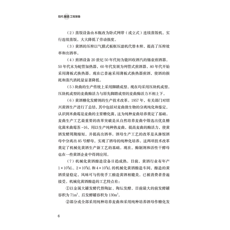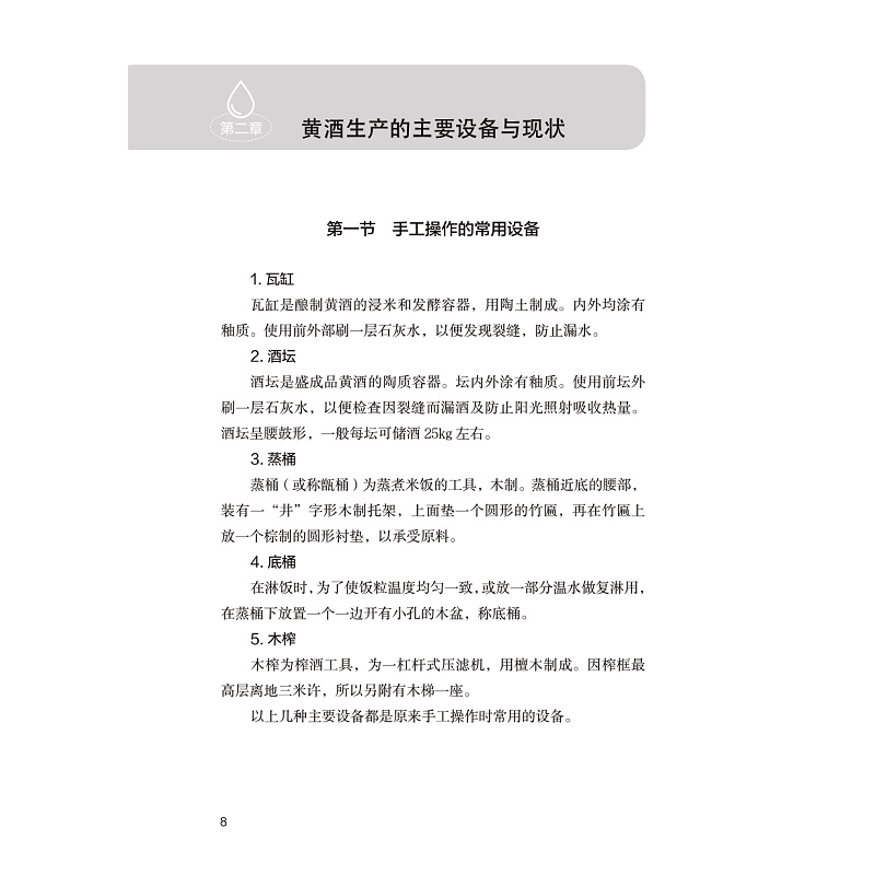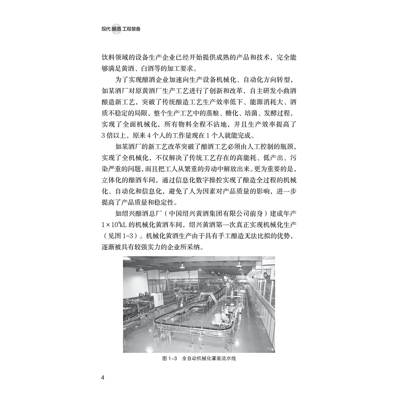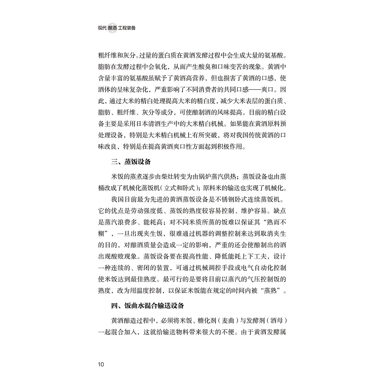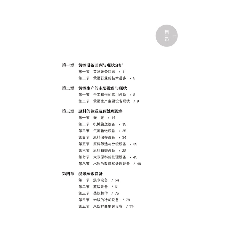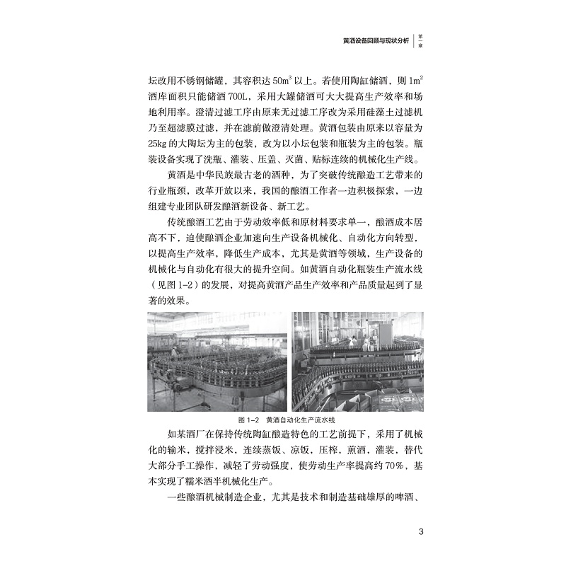 本书主要参考了现有发酵工程设备、酿酒工艺技术、生物工程设备等方面的专业教材与专著,从基础的机械原理入手,通过对现代化黄酒酿造过程中原料处理设备,自动化生麦曲、熟麦曲生产设备,机械化浸米、蒸饭设备,酒母培养设备,大型前、后发酵装备,不锈钢大罐贮酒设备,节能高效快速压滤设备、新型膜过滤设备及玻璃瓶全自动流水线灌装设备,以及各类生产设备相关的操作技术和自动化控制系统的介绍,以期能从机械设备的认识与实际操作入手,较为详细地、完整地介绍现代化黄酒生产工程装备的操作要求与自动化控制方法,让酒类酿造专业及生物工程专业的高校学生对现代酿酒工程装备有一个完整的认识。同时,也可作为发酵类生产技术人员和技术工人的参考读物。