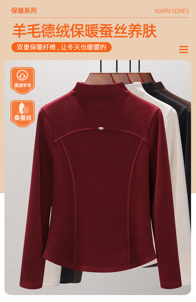 【自】全新升级【铂金会员109/天猫149/差价40】(14008) 洛诗琳秋冬新款桑蚕丝羊毛半高领打底衫德绒中领保暖上衣女