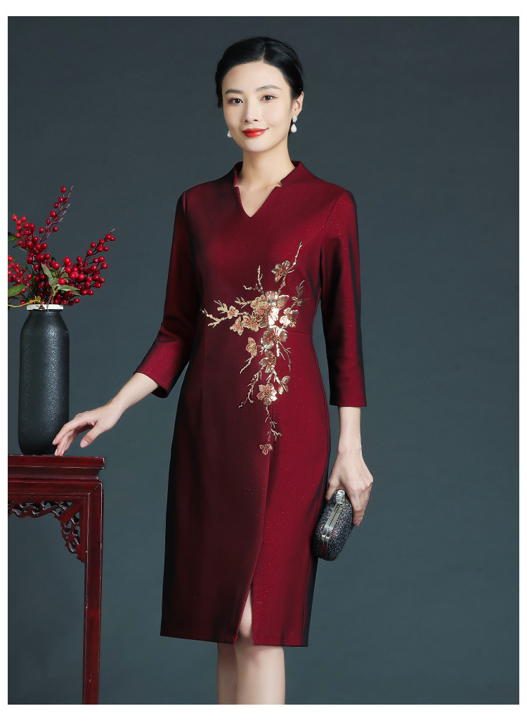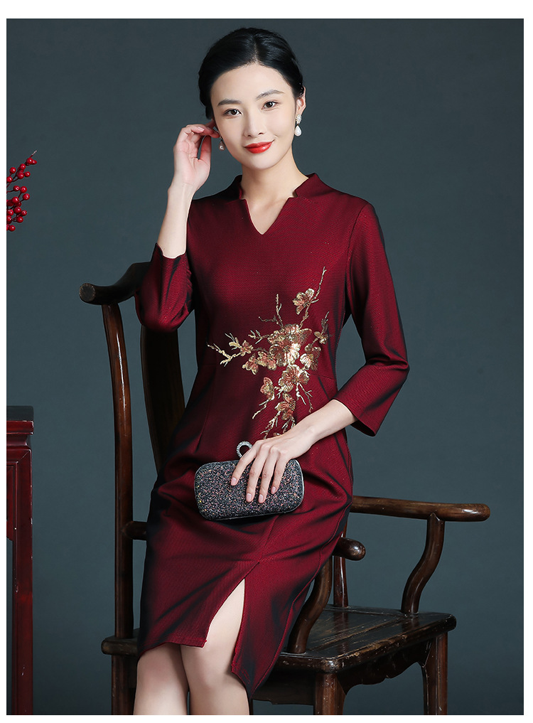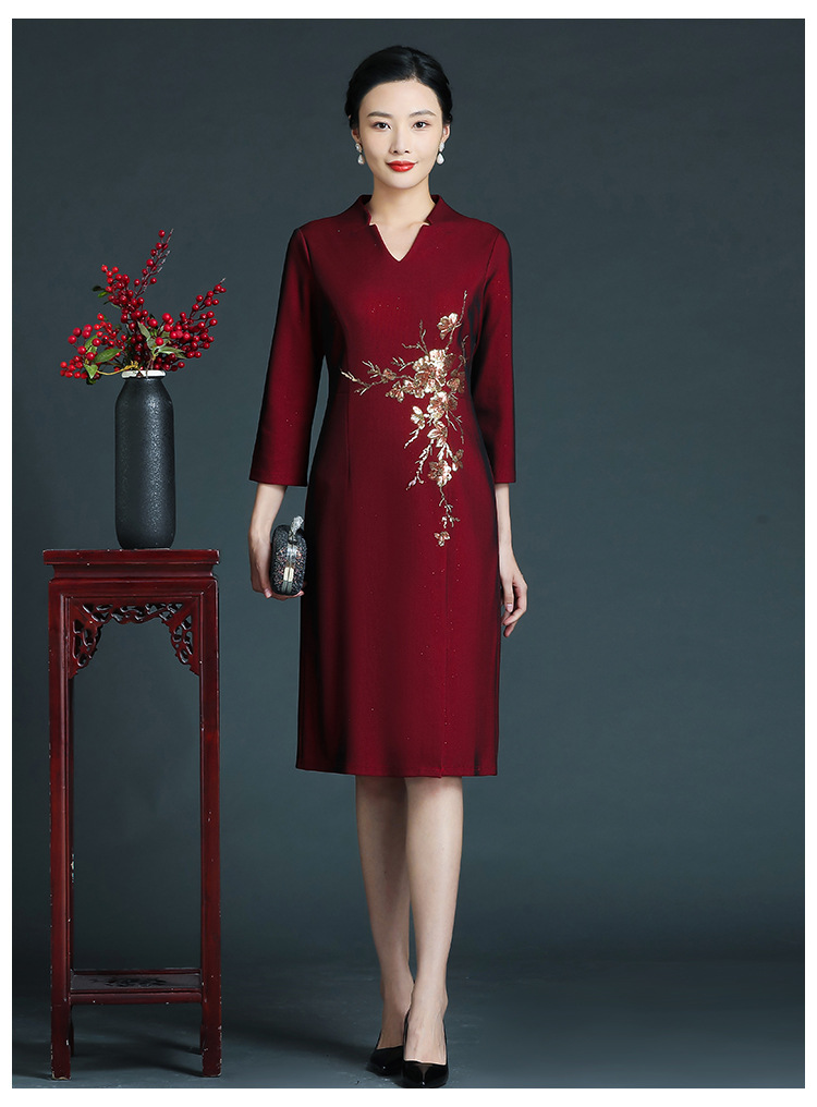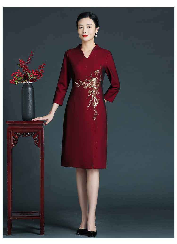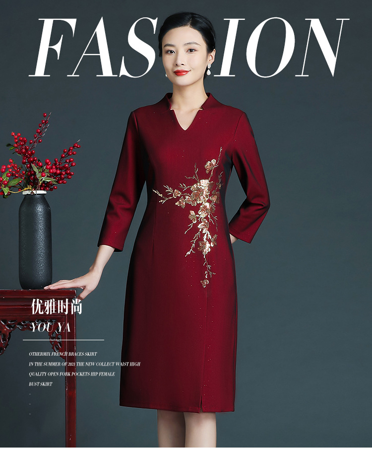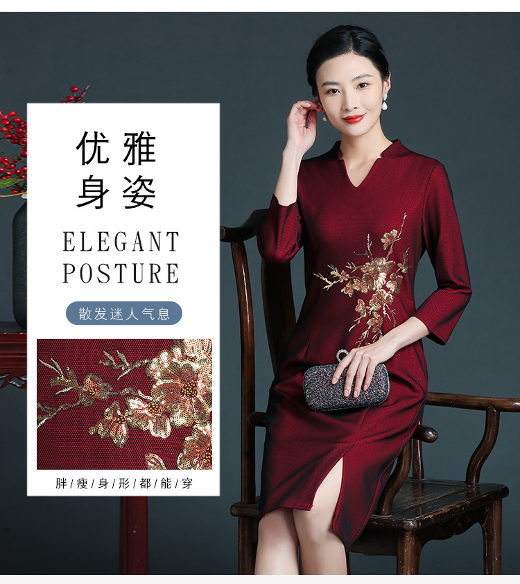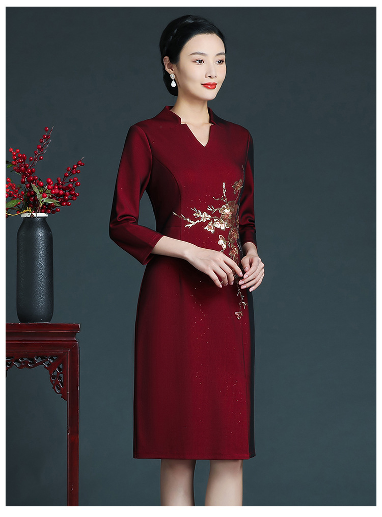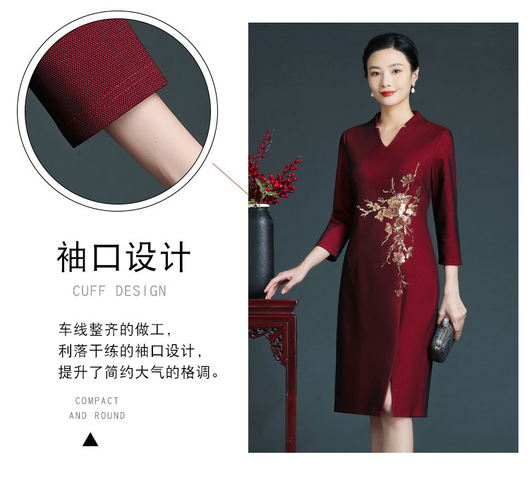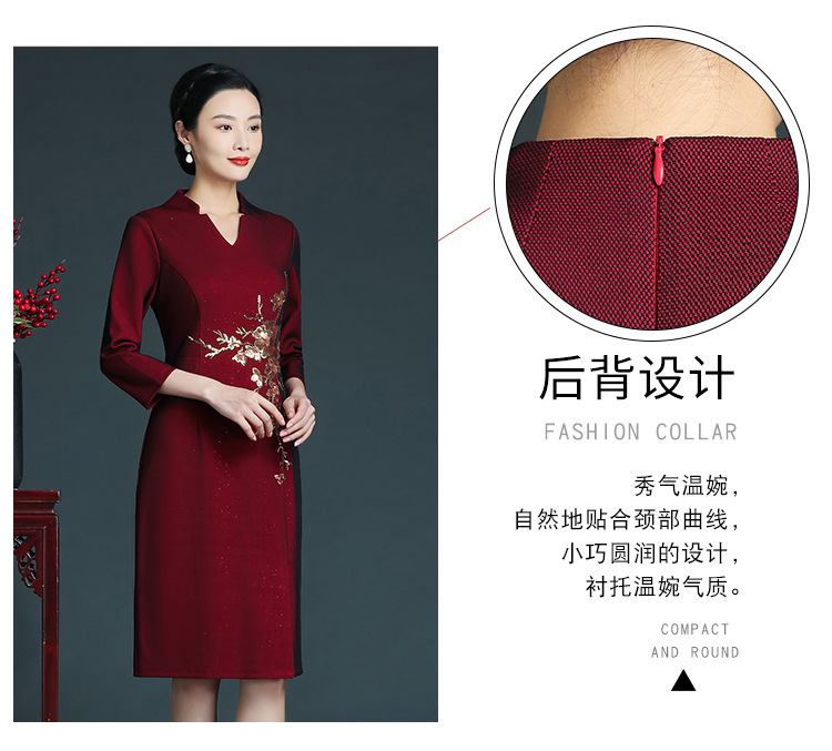 上海旗袍厂ZY-Q5726秋季新款端庄气质婚宴喜庆旗袍改良大码礼服裙