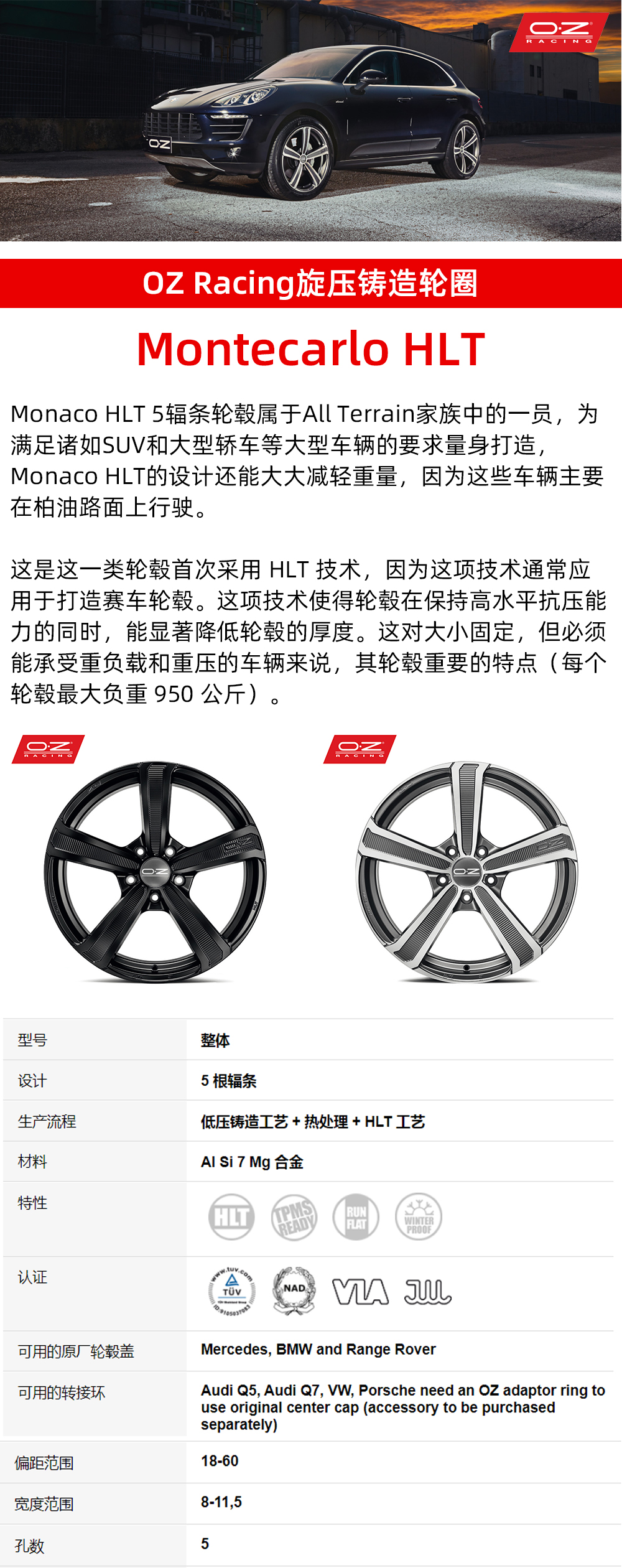 意大利进口OZ Racing旋压铸造 Montecarlo HLT系列 19/20/22寸