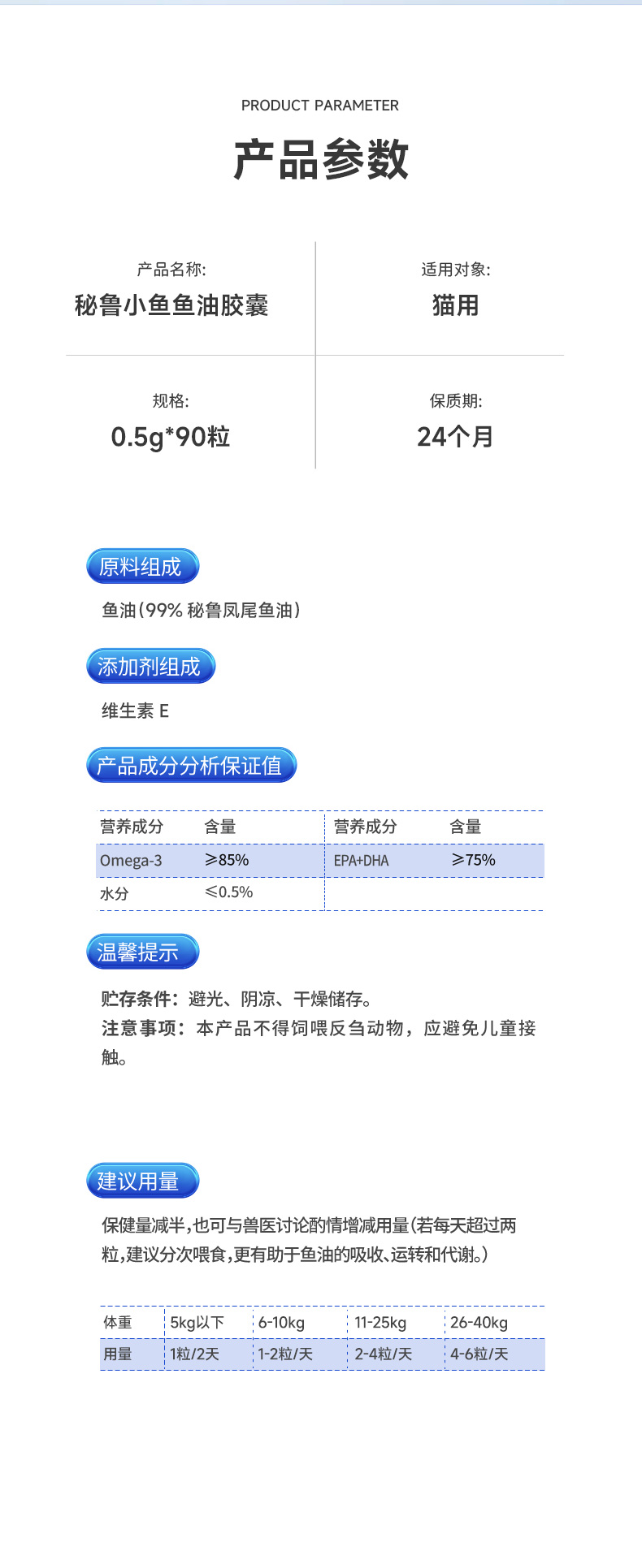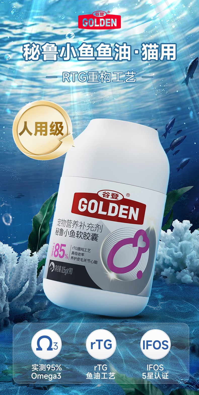 【下单即送化毛膏1支】谷登秘鲁小鱼鱼油软胶囊(猫用)0.5g*90粒