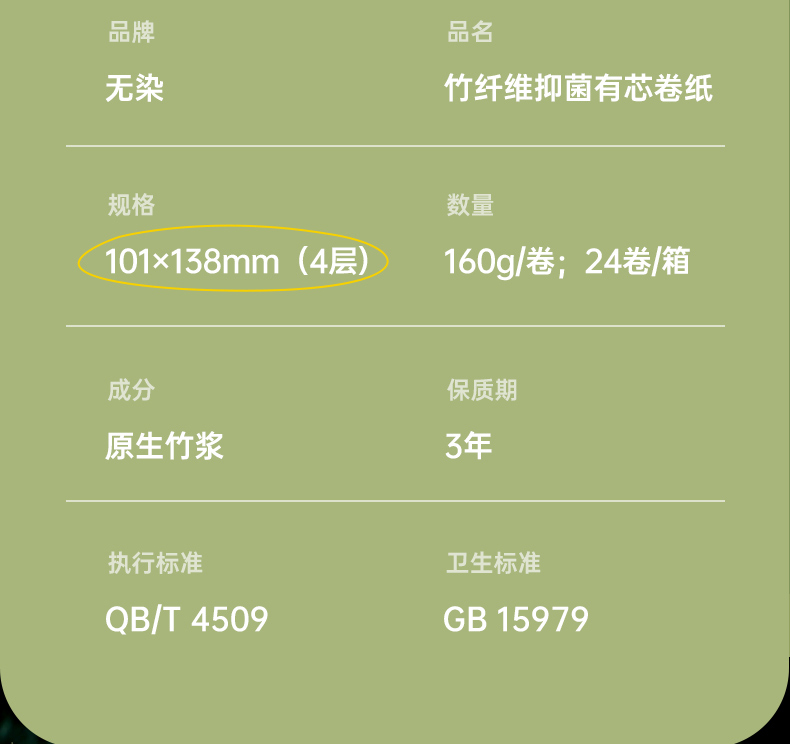 【秒杀专享】无染竹纤维有芯卷纸 24卷/箱 160克/卷