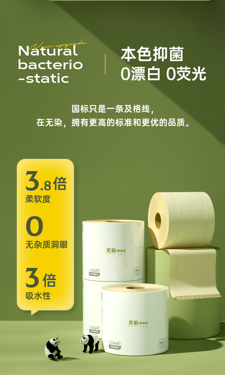 无染竹纤维有芯卷纸30卷整箱