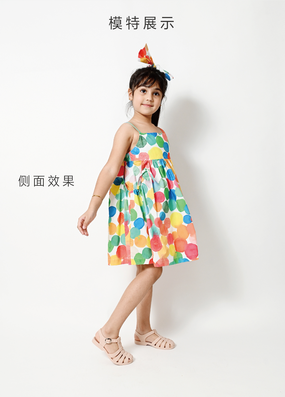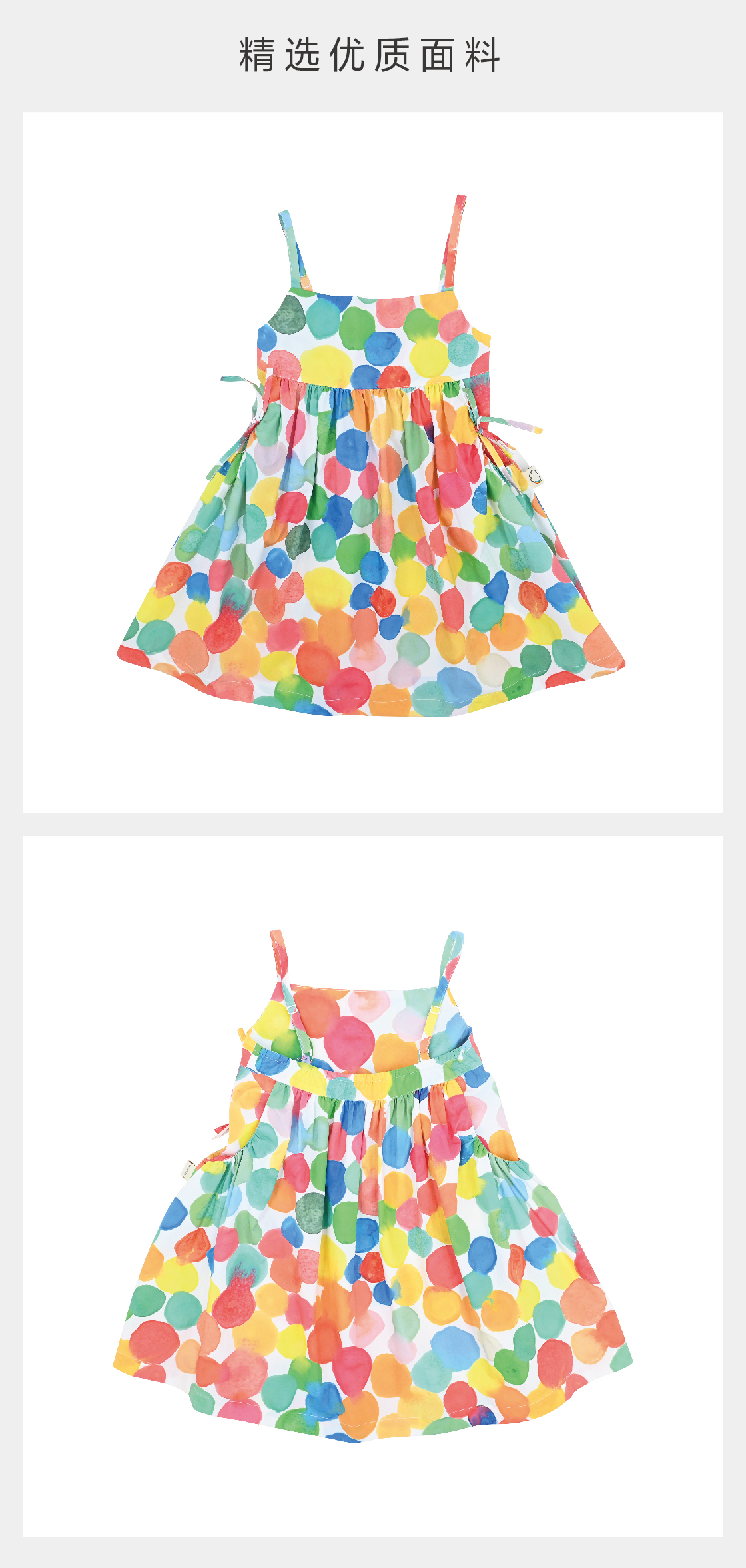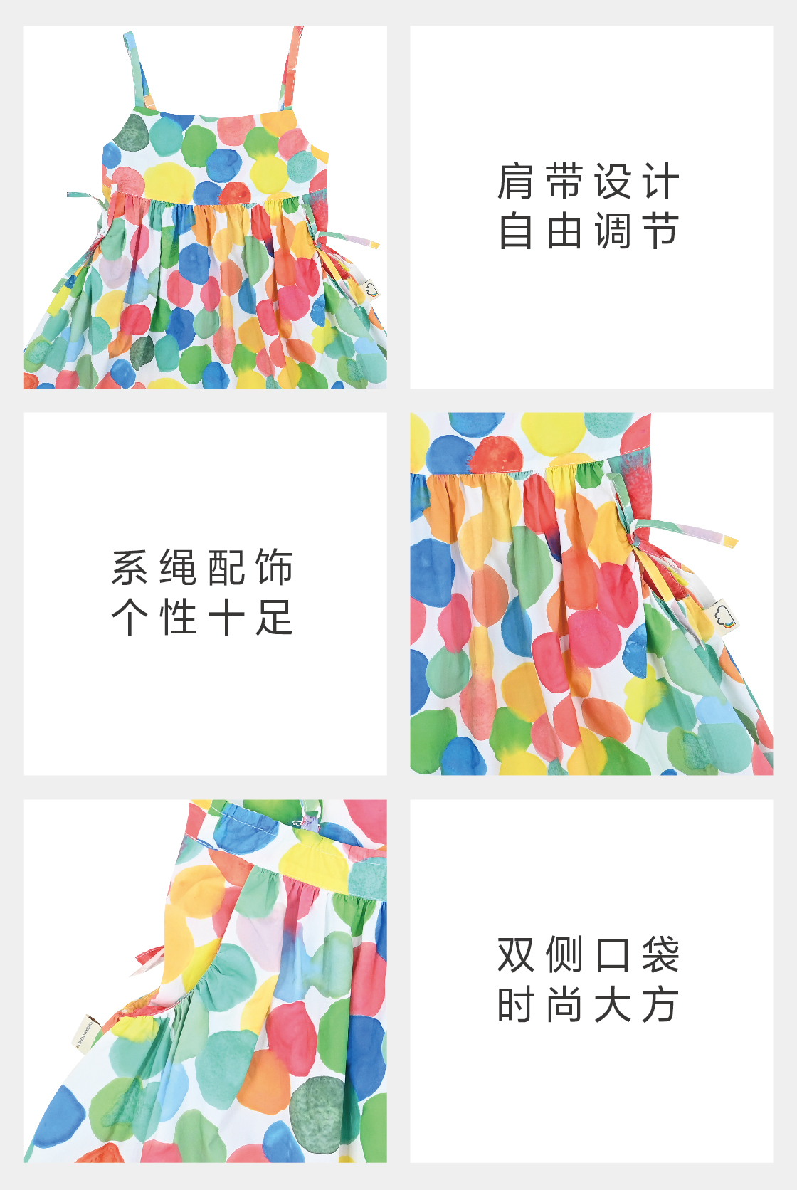 rainbowxoxo 彩色波波印花吊带双袋连衣裙【该商品不支持用券】