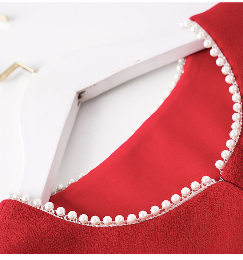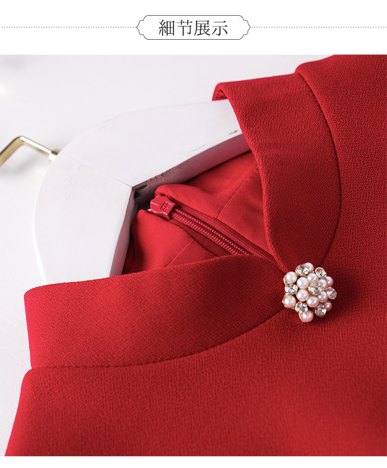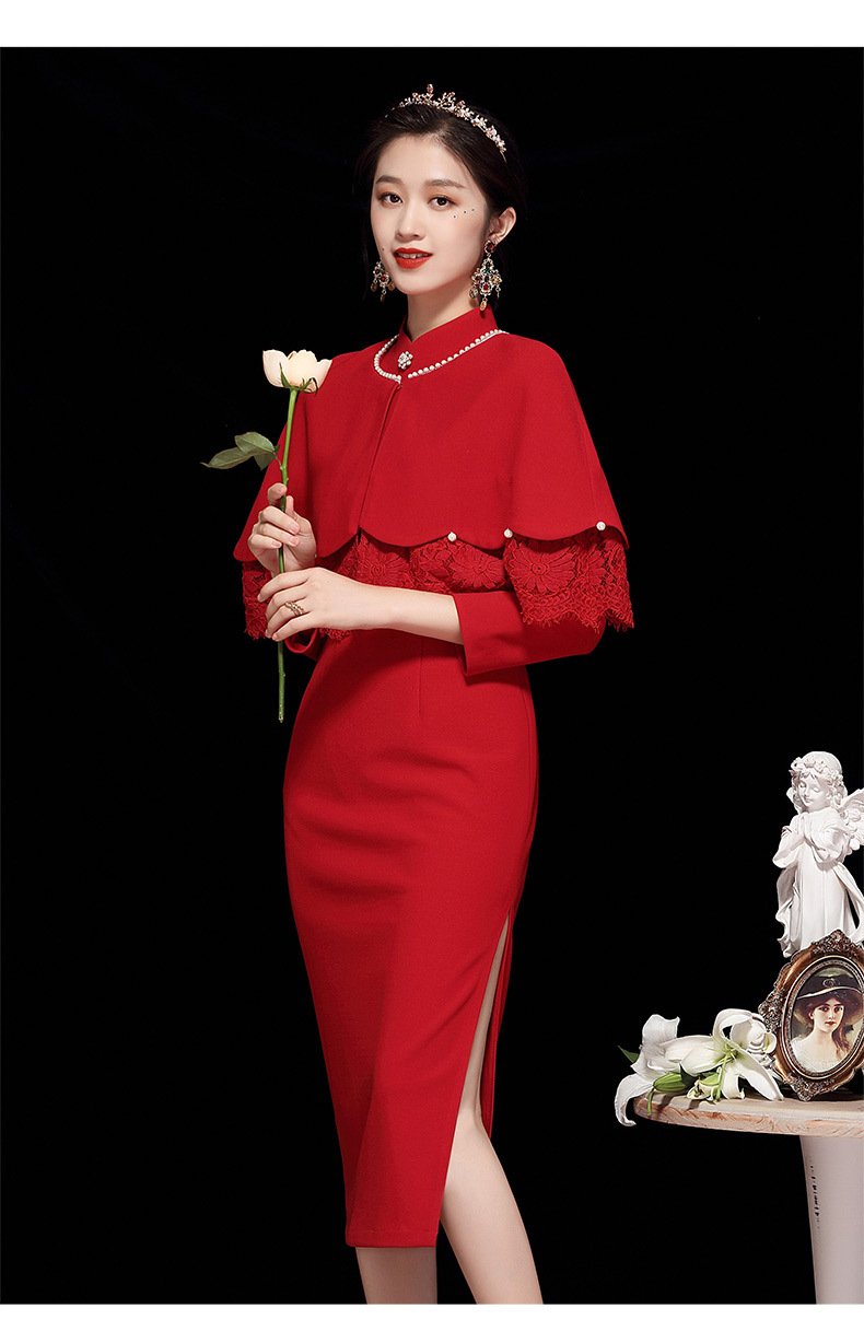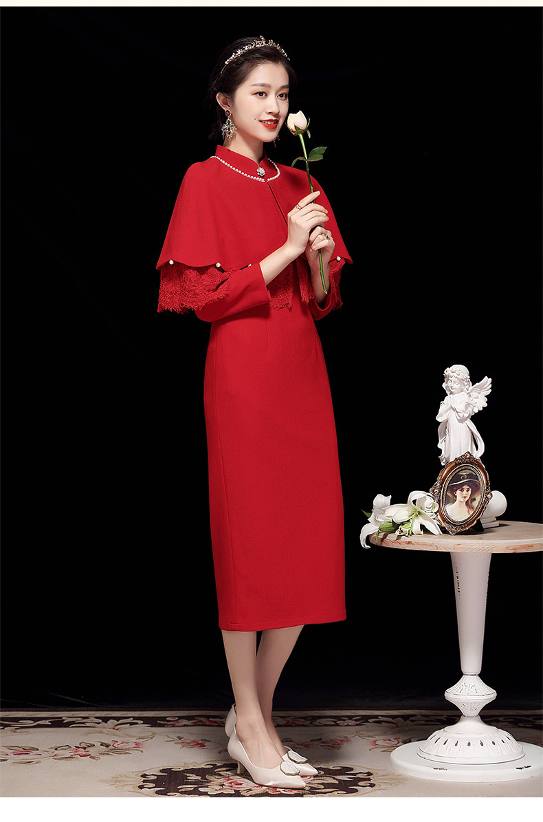 宴会旗袍,钉珠荷叶边流苏斗篷连衣裙两件套 OY-21176