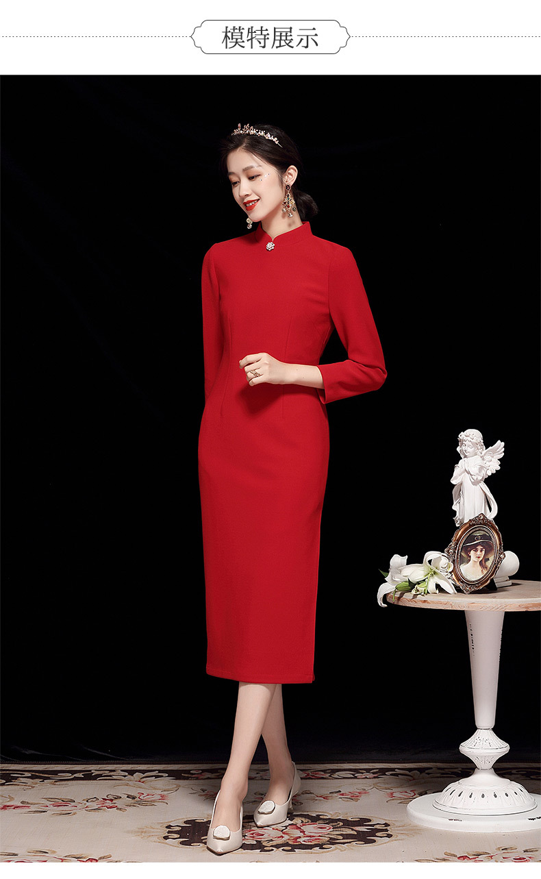 加厚冬季妈妈装婚宴婚礼旗袍裙礼服,喜婆婆婚宴服端庄大气长款LHS-L9081