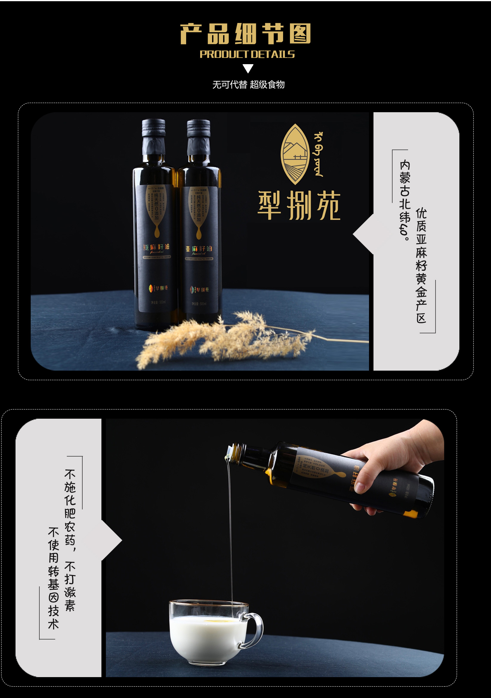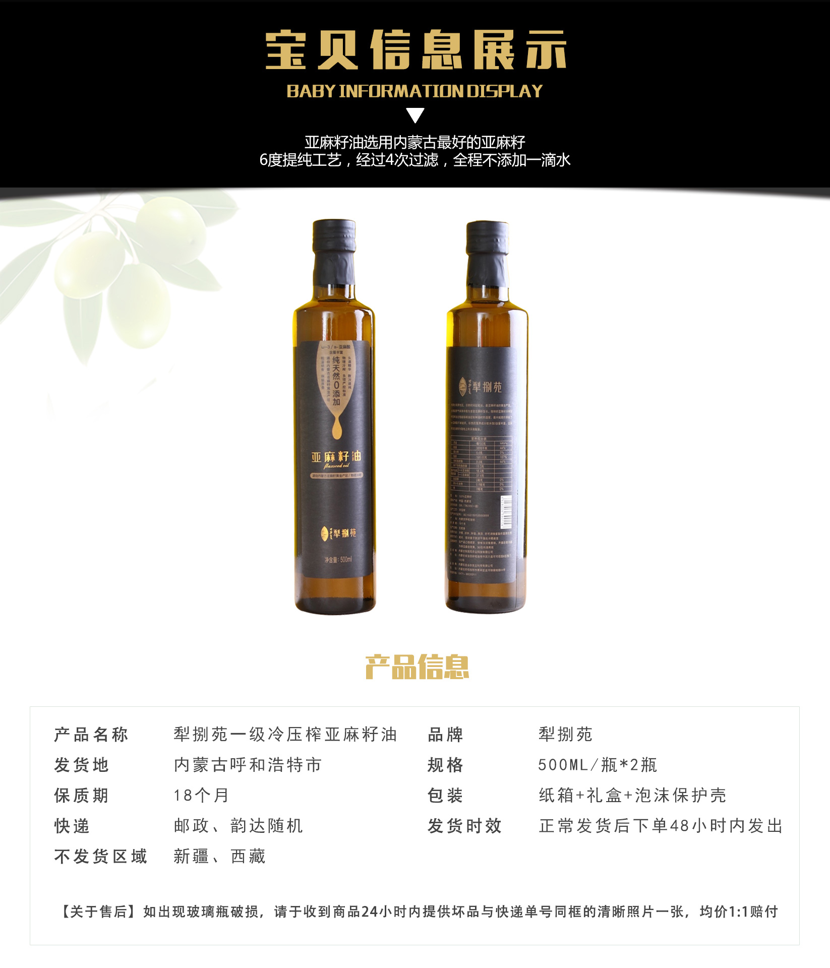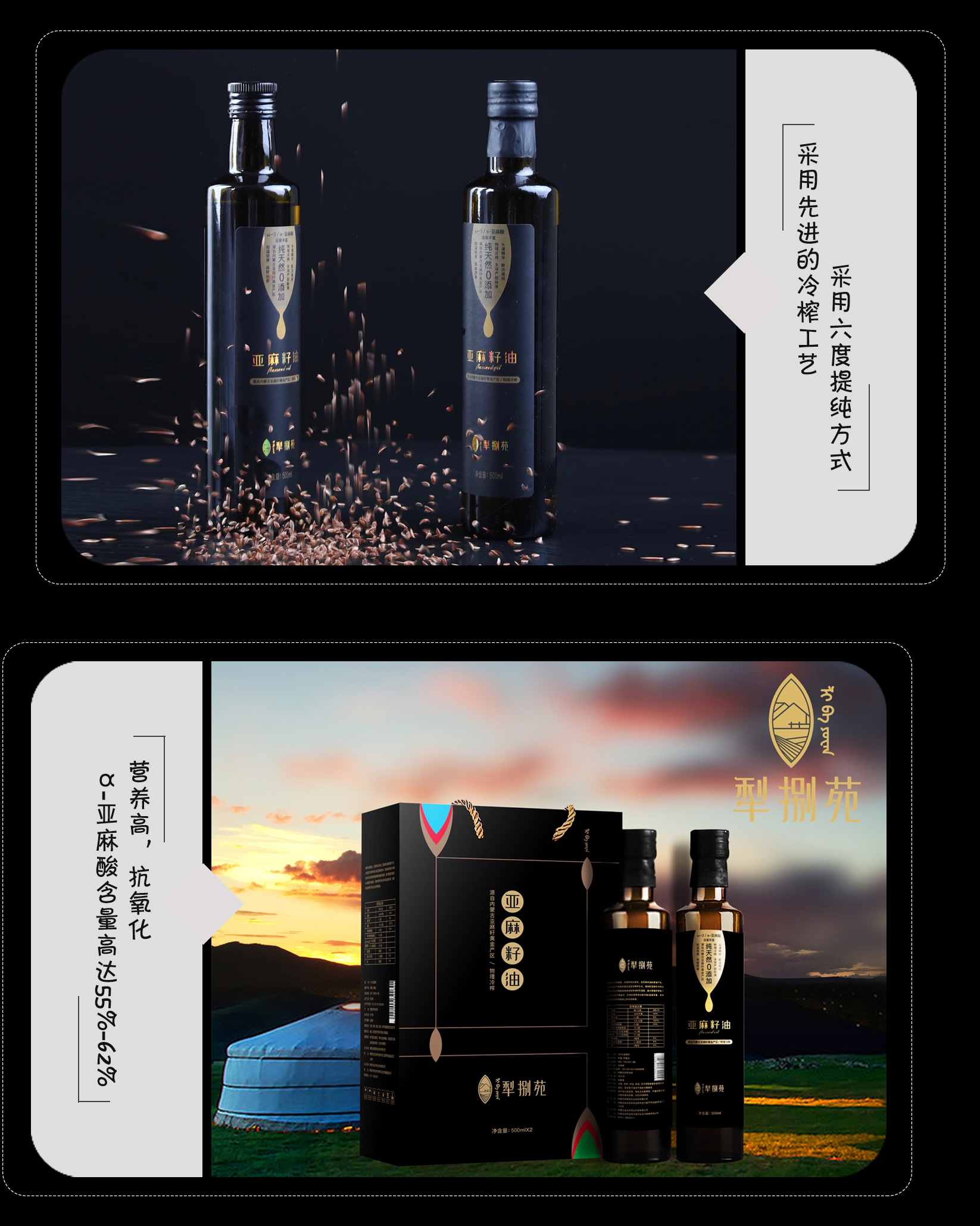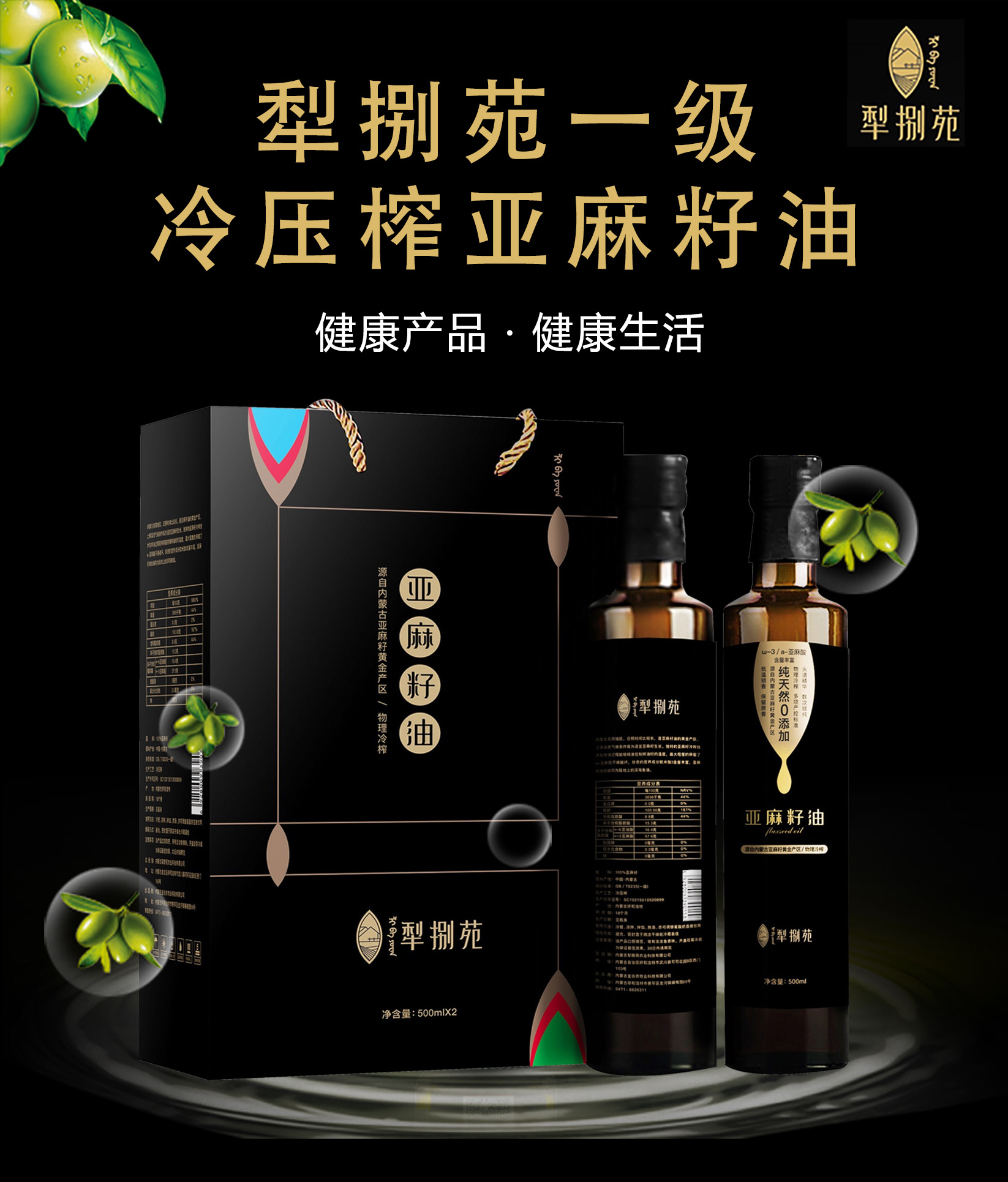 犁捌苑亚麻籽油500ml/瓶*2瓶礼盒