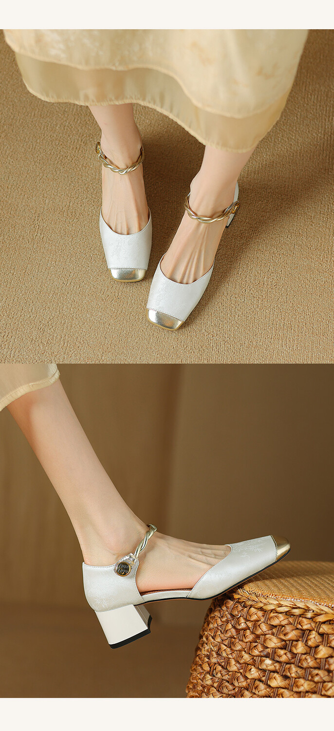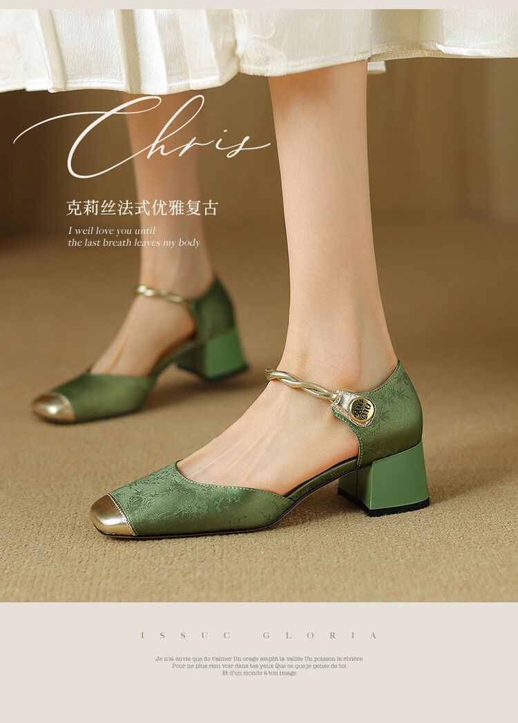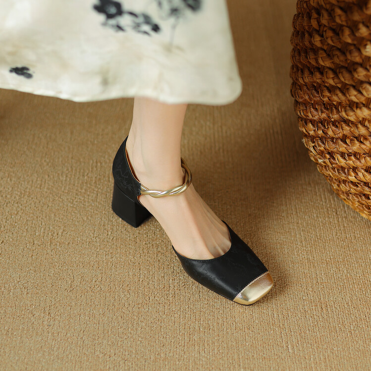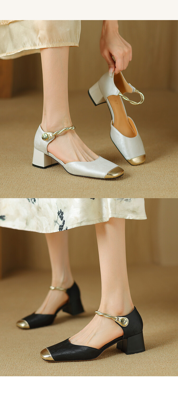 【预售5天】法式复古拼接方头,低跟玛丽珍鞋AMN&TX11-210