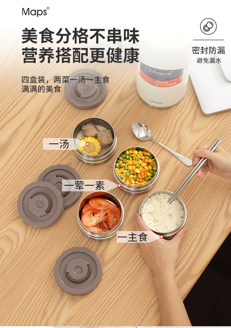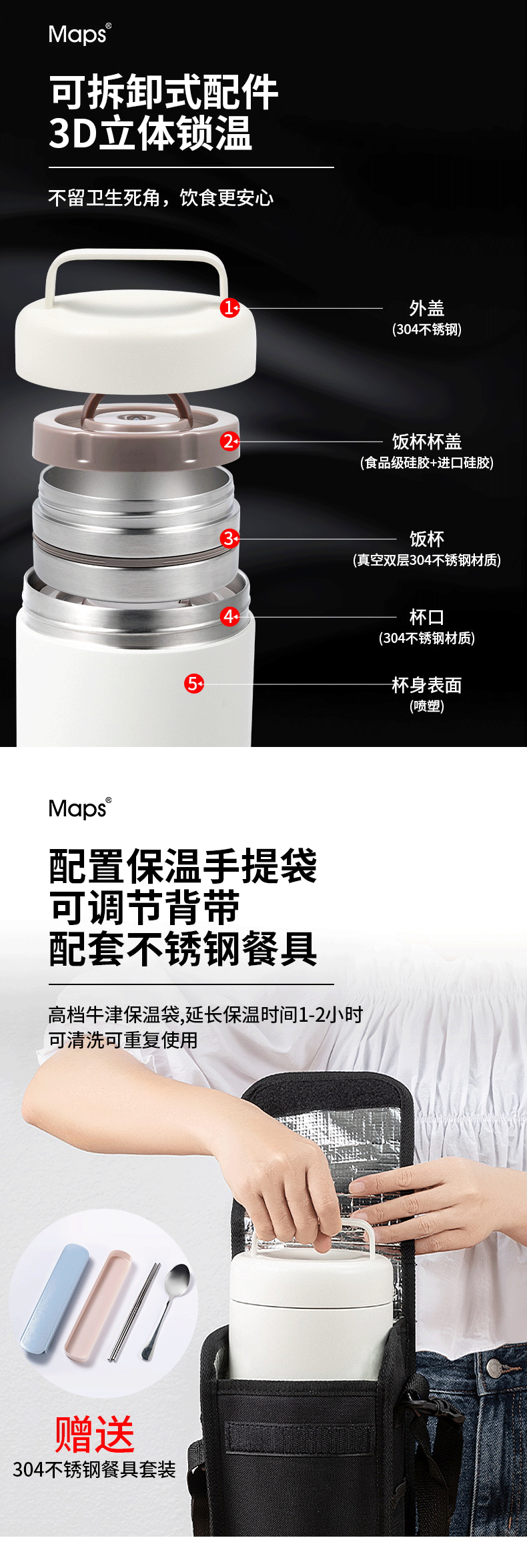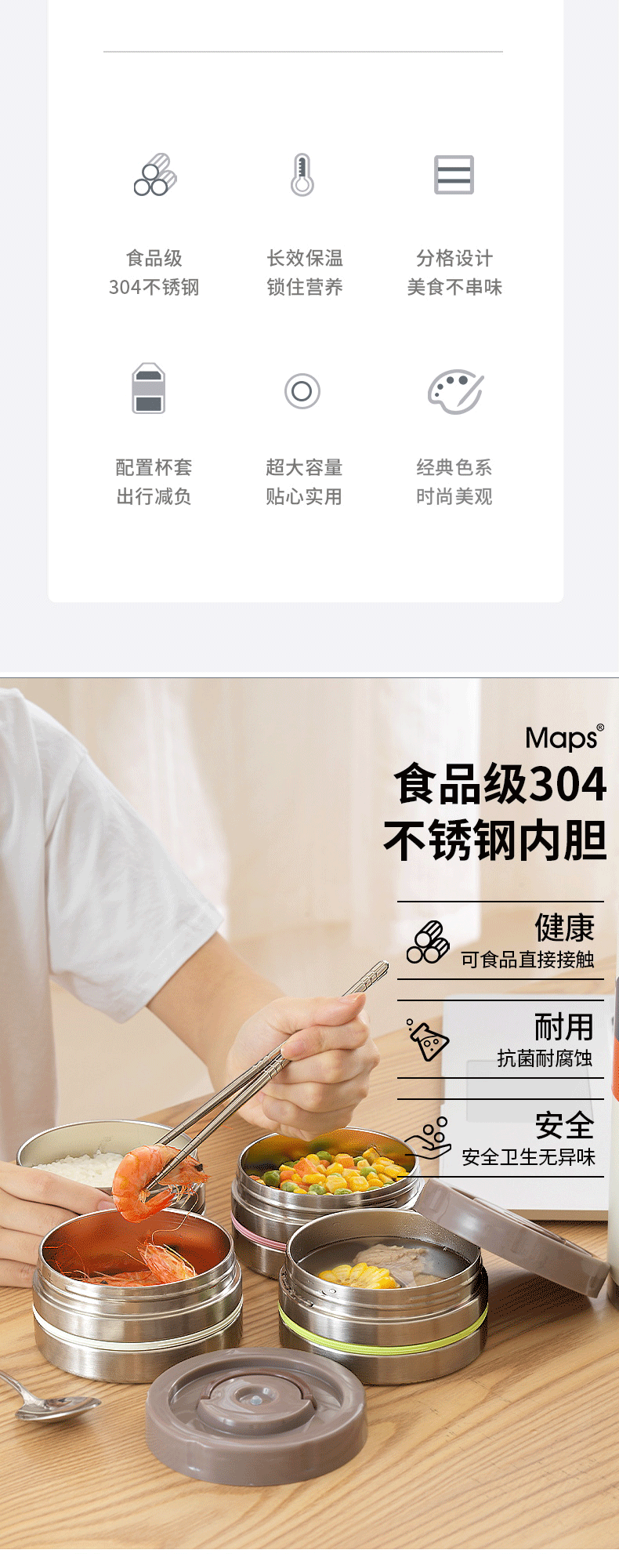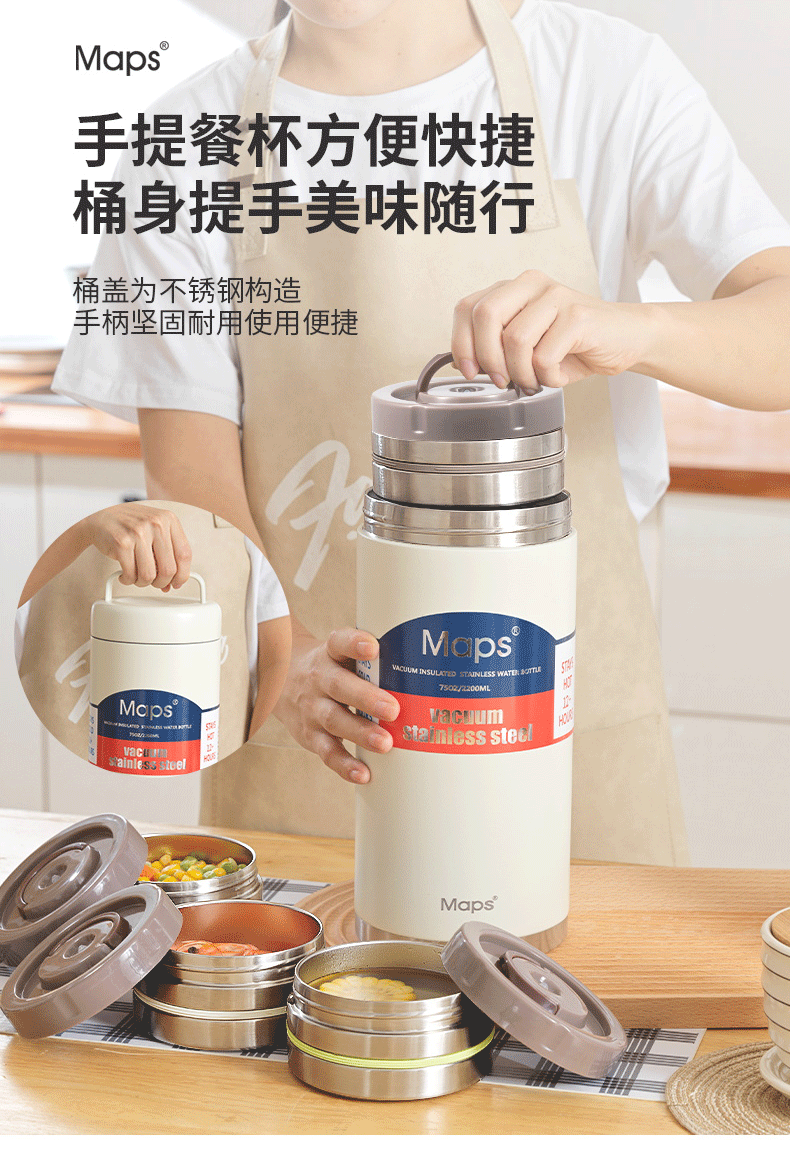 MAPS(美派斯)便携式双真空保温饭盒FH01-2200 独立餐杯设计不串味更健康