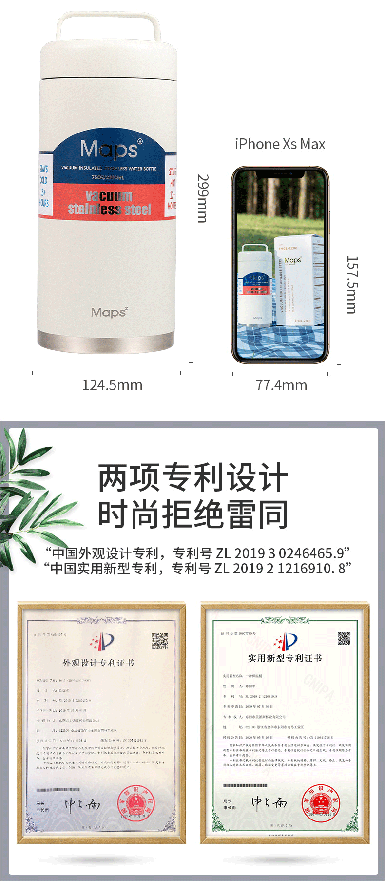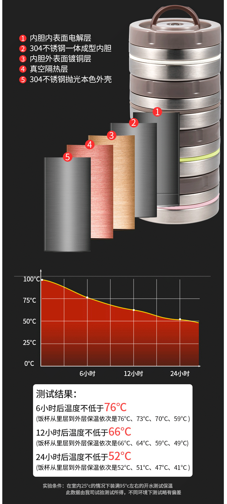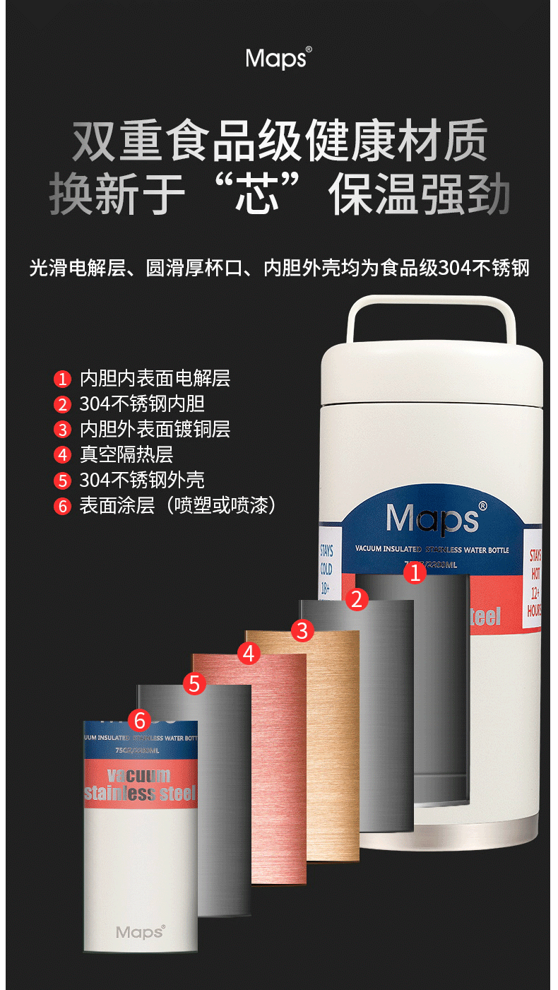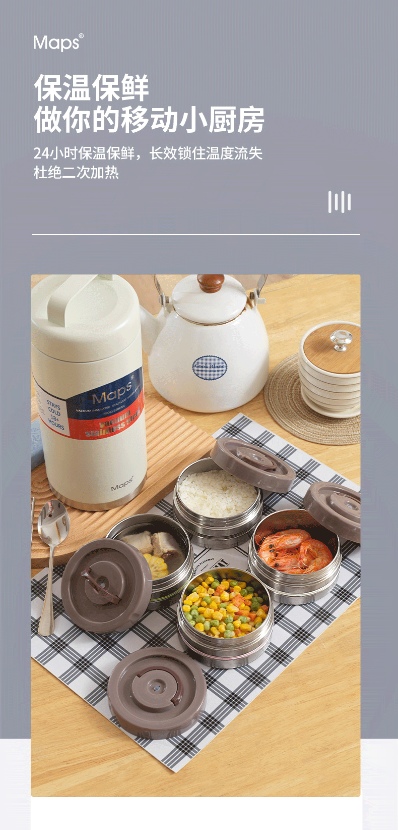 MAPS(美派斯)便携式双真空保温饭盒FH01-2200 独立餐杯设计不串味更健康