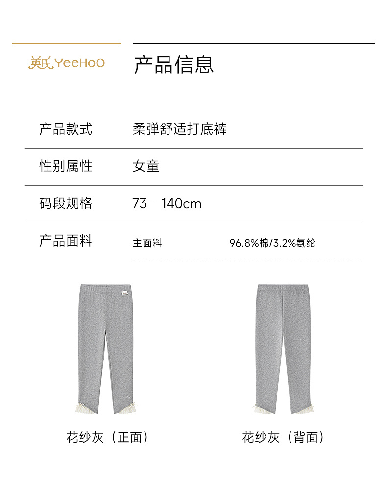 【商场同款】英氏童装儿童长裤女童裤子休闲打底裤花边裤子