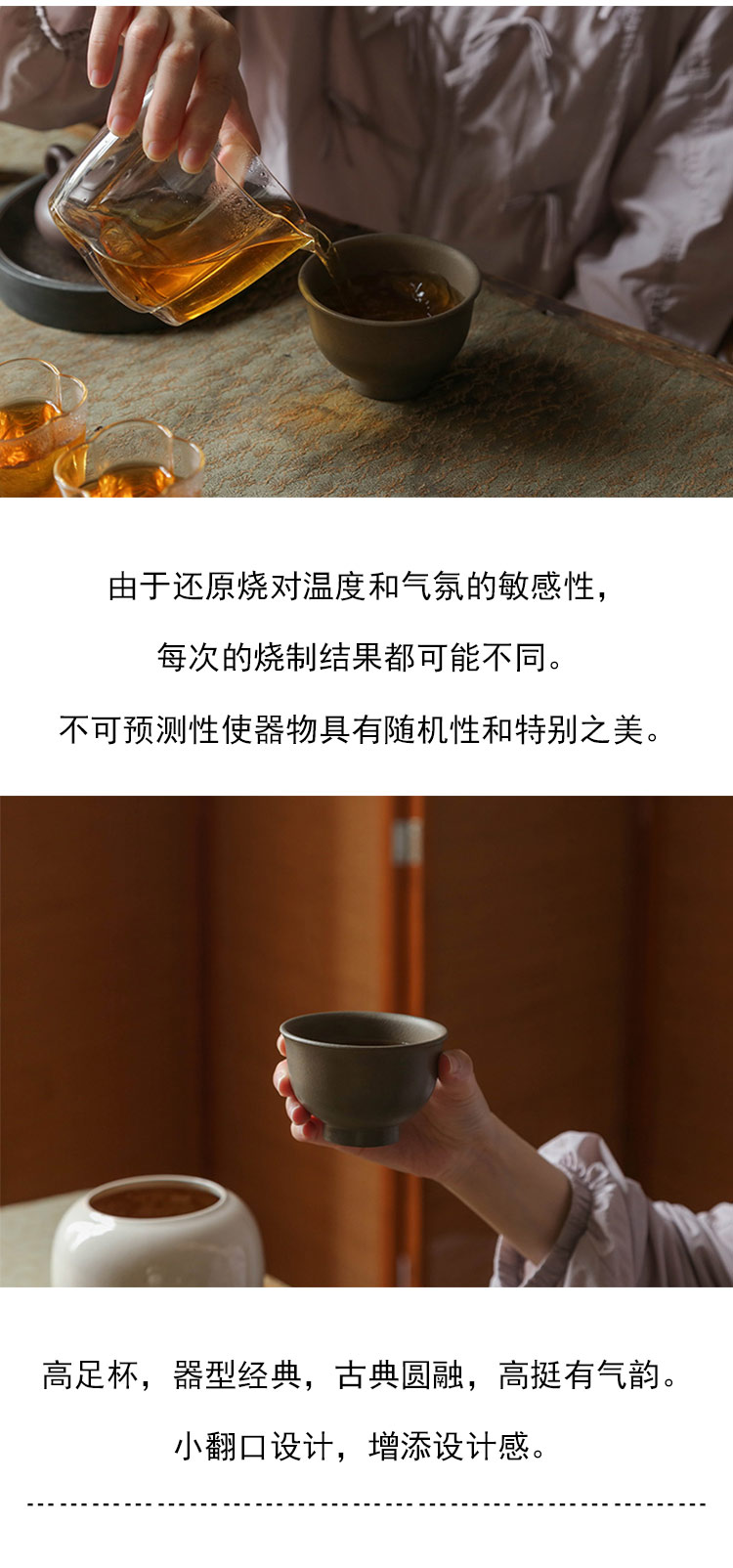 茶香记 润砂堂原矿青段还原烧双色高足主人杯130ml圆融高挺茶杯