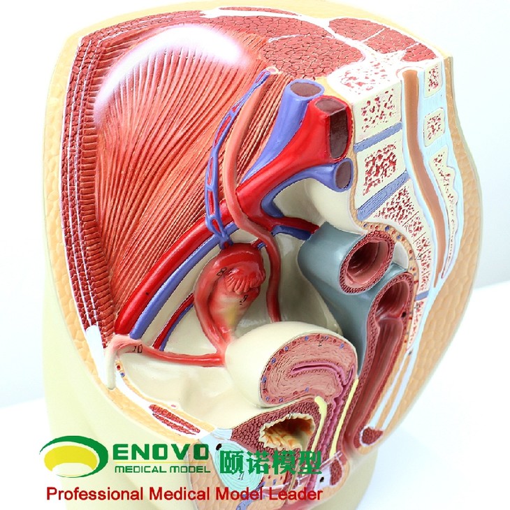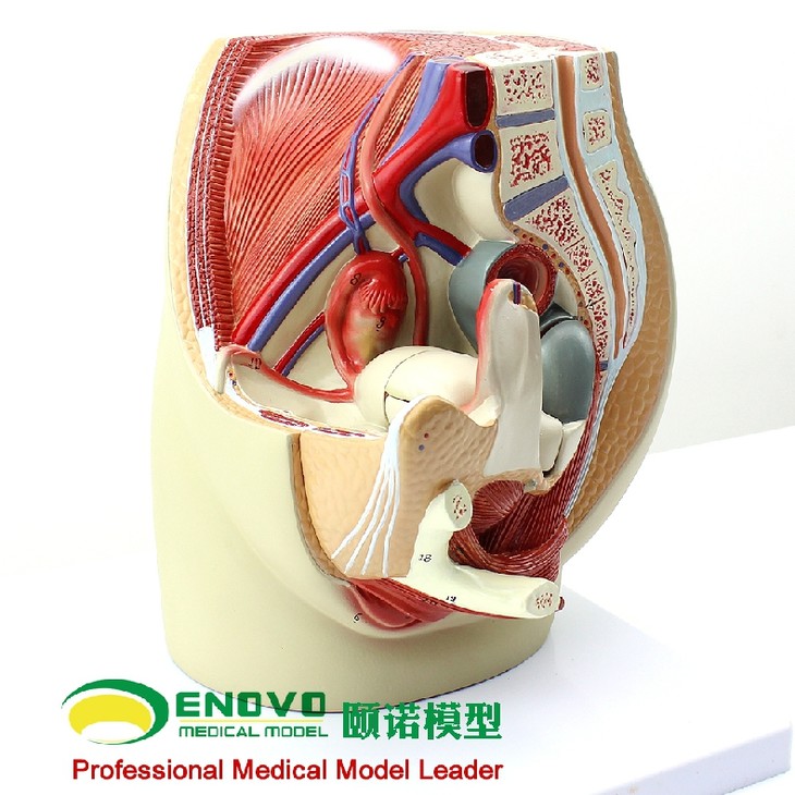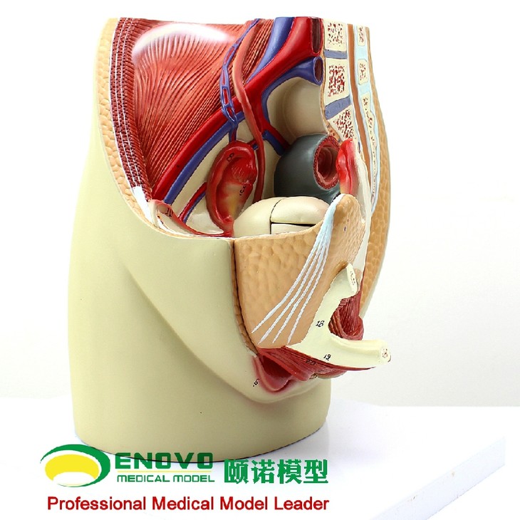 这个真人大小的模型,可拆分三部分组成,展示了女性盆腔系统的所有重要结构,并且非常详细地展示了腹腔和骨盆肌,女性泌尿生殖系统的内部结构非常详细描绘。全部手工上色,并且配有数字指示标识