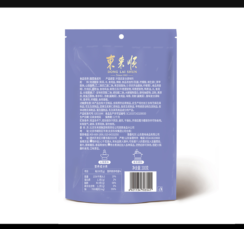 东来顺 酸菜鱼底料 300g*2
