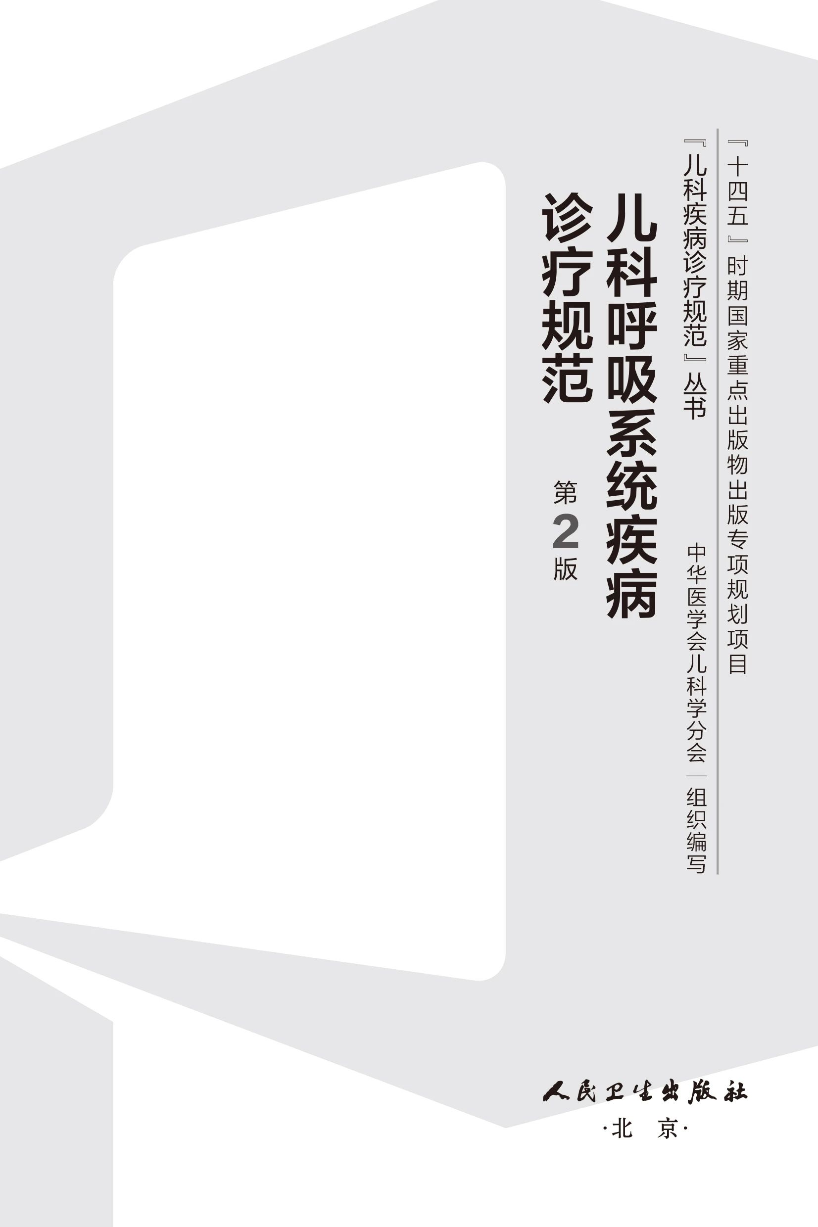 本书 为“儿科疾病诊疗规范丛书”其中一分册,由中华医学会儿科学分会呼吸学组组织专家经过近1年时间的精心打磨而成。