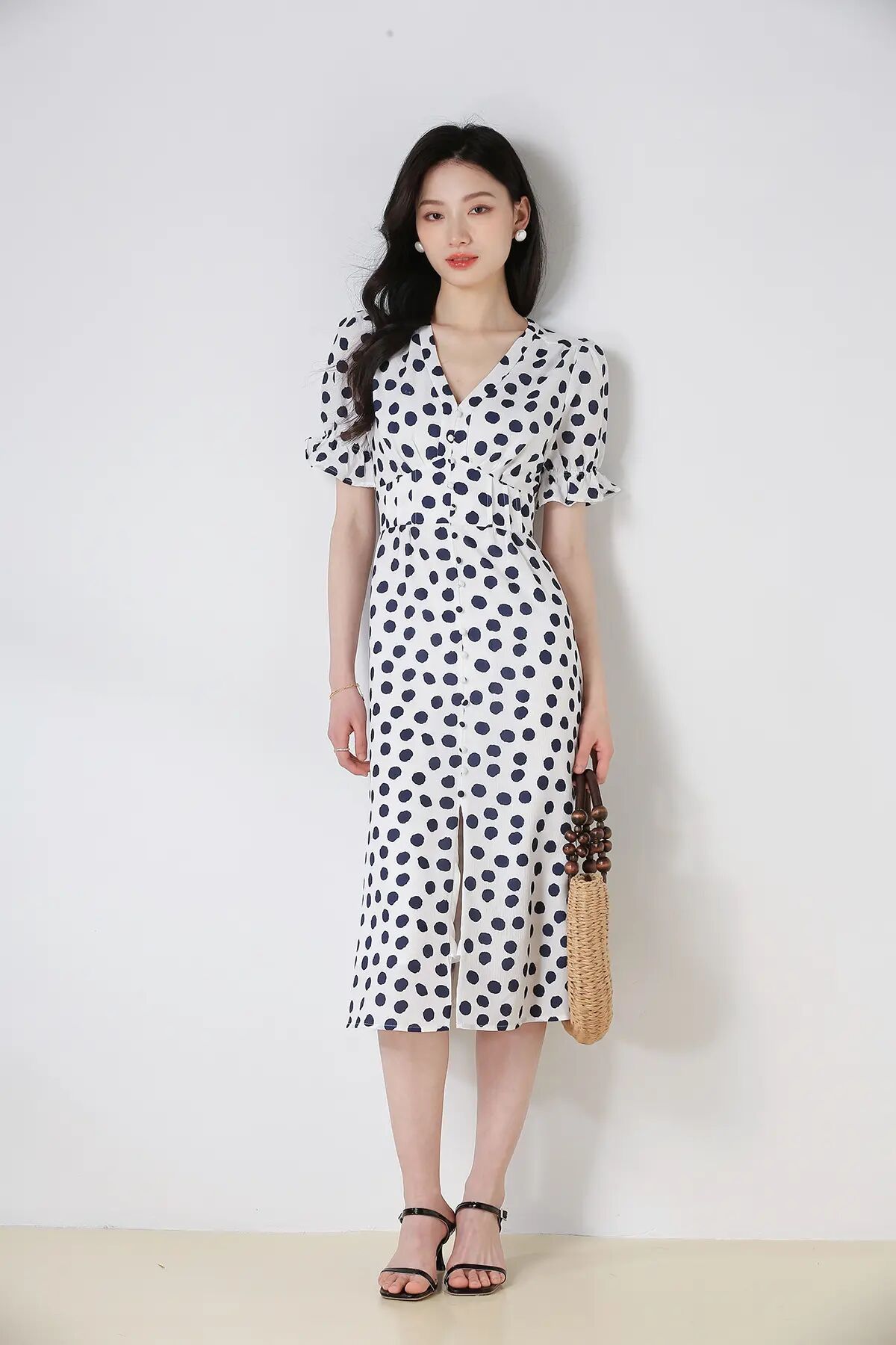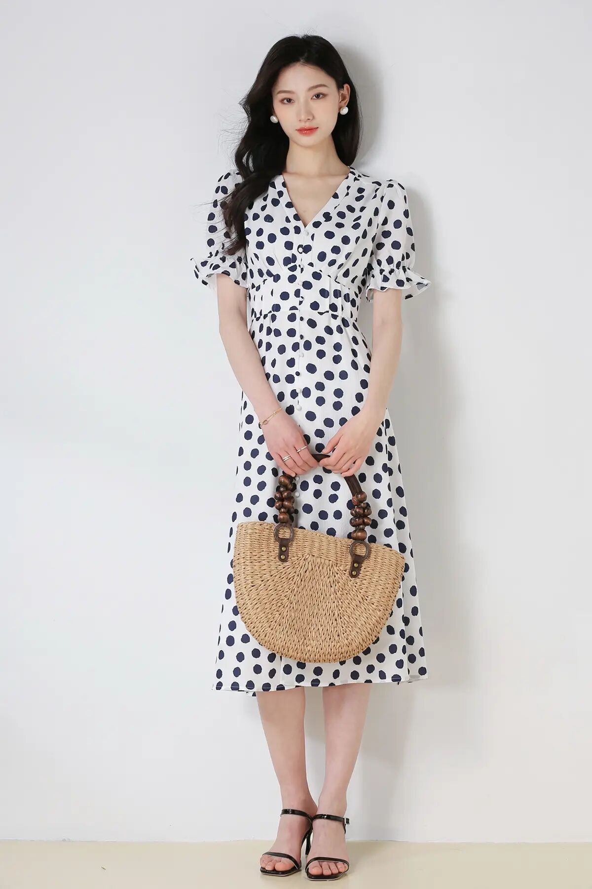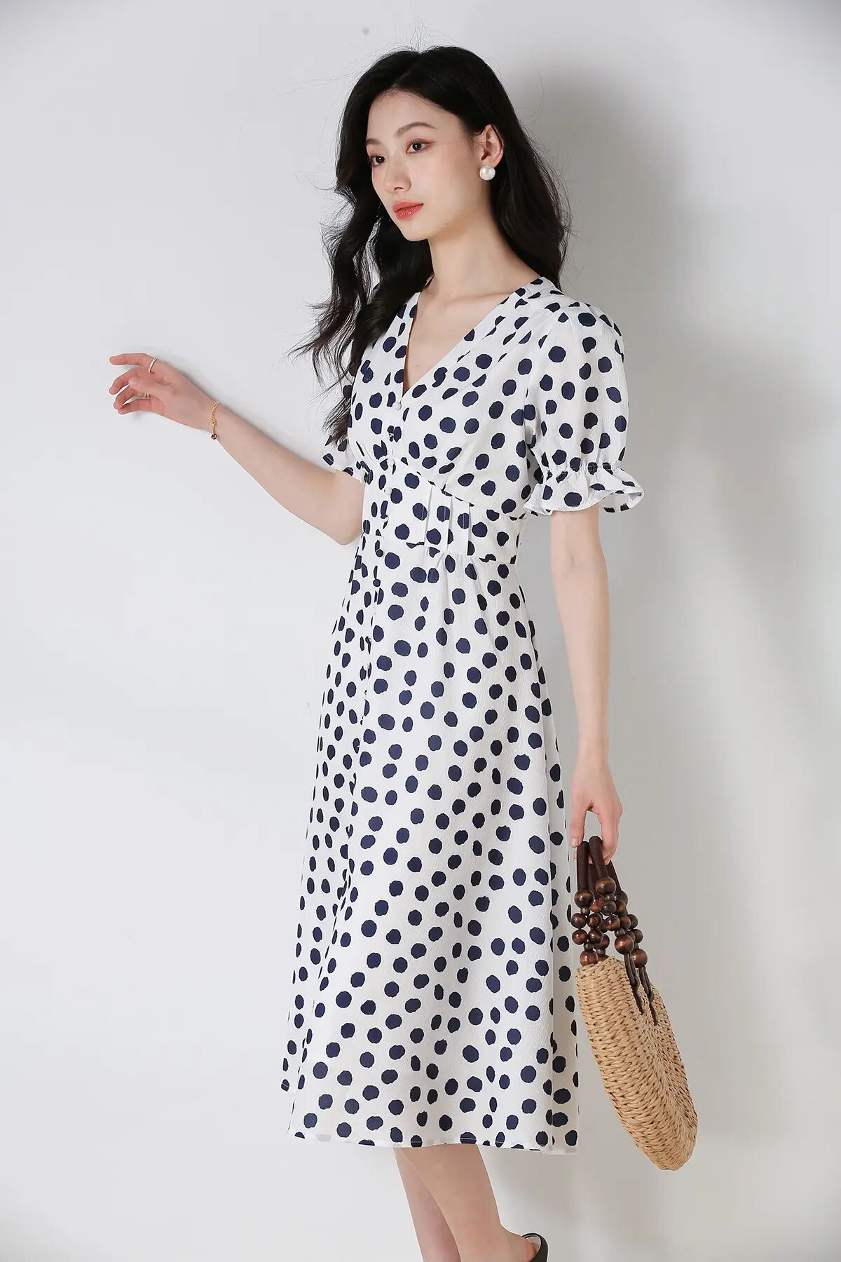 【高货sh】全新升级【铂金会员220/天猫289/差价69】(94614) 洛诗琳25夏季新款赫本抽褶收腰雪纺茶歇法式显瘦连衣裙