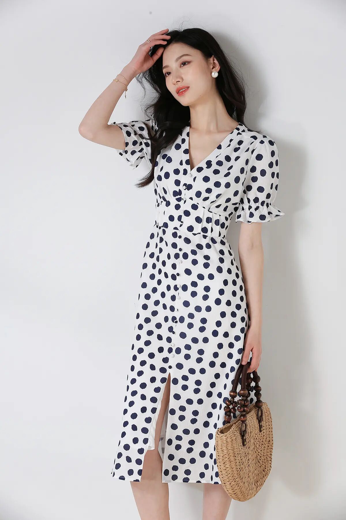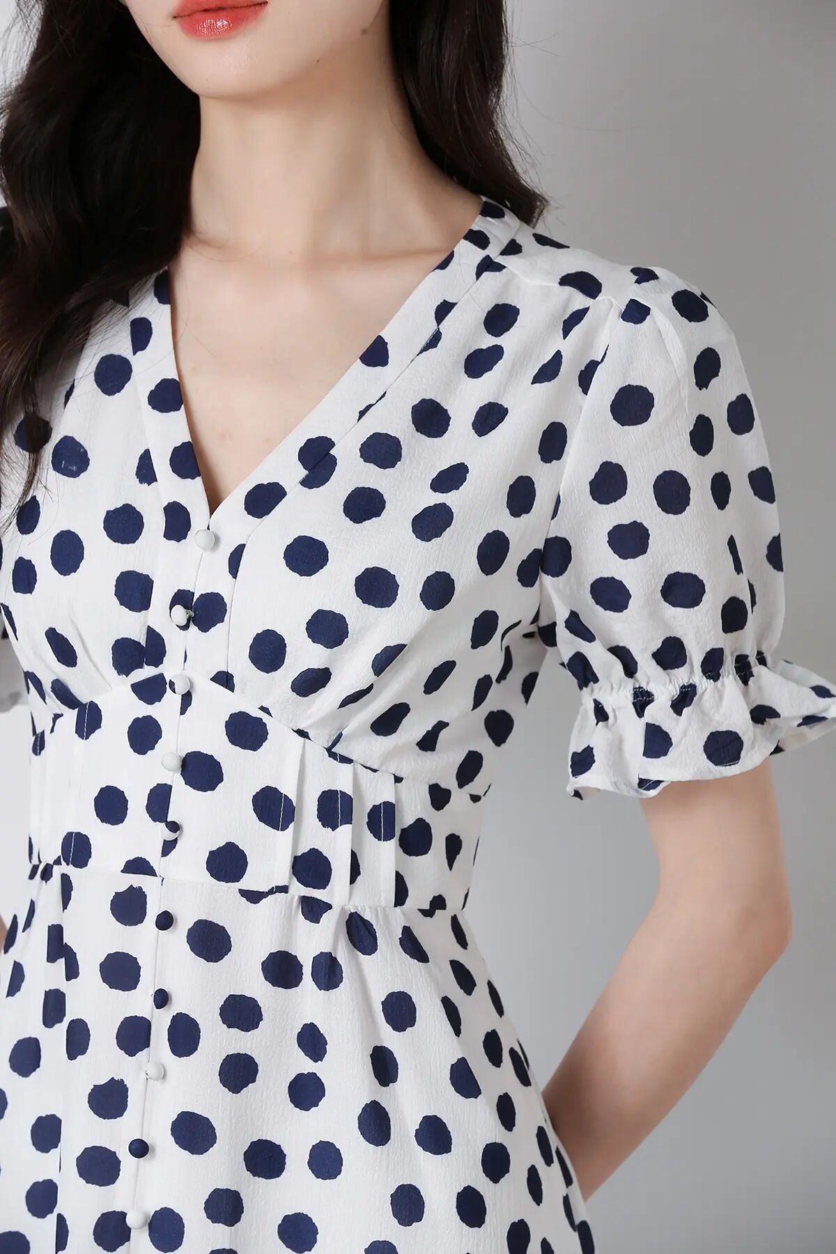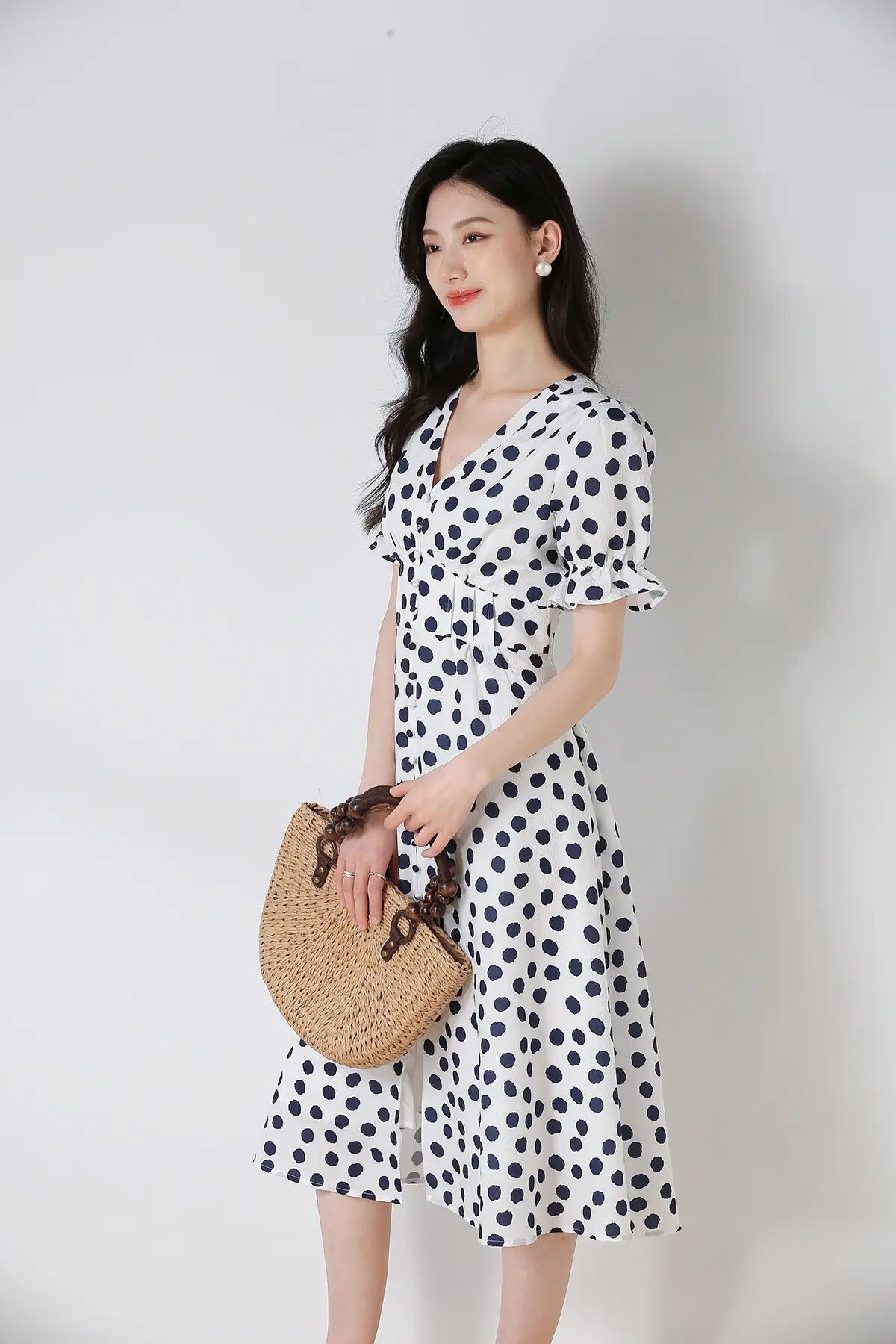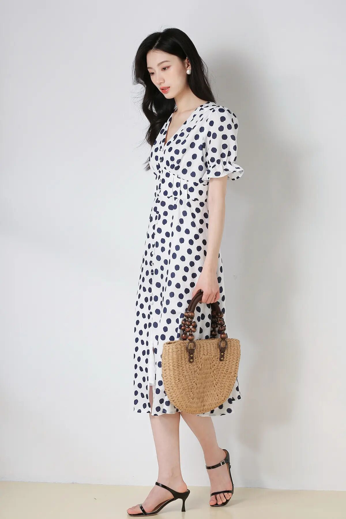 【高货sh】全新升级【铂金会员220/天猫289/差价69】(94614) 洛诗琳25夏季新款赫本抽褶收腰雪纺茶歇法式显瘦连衣裙