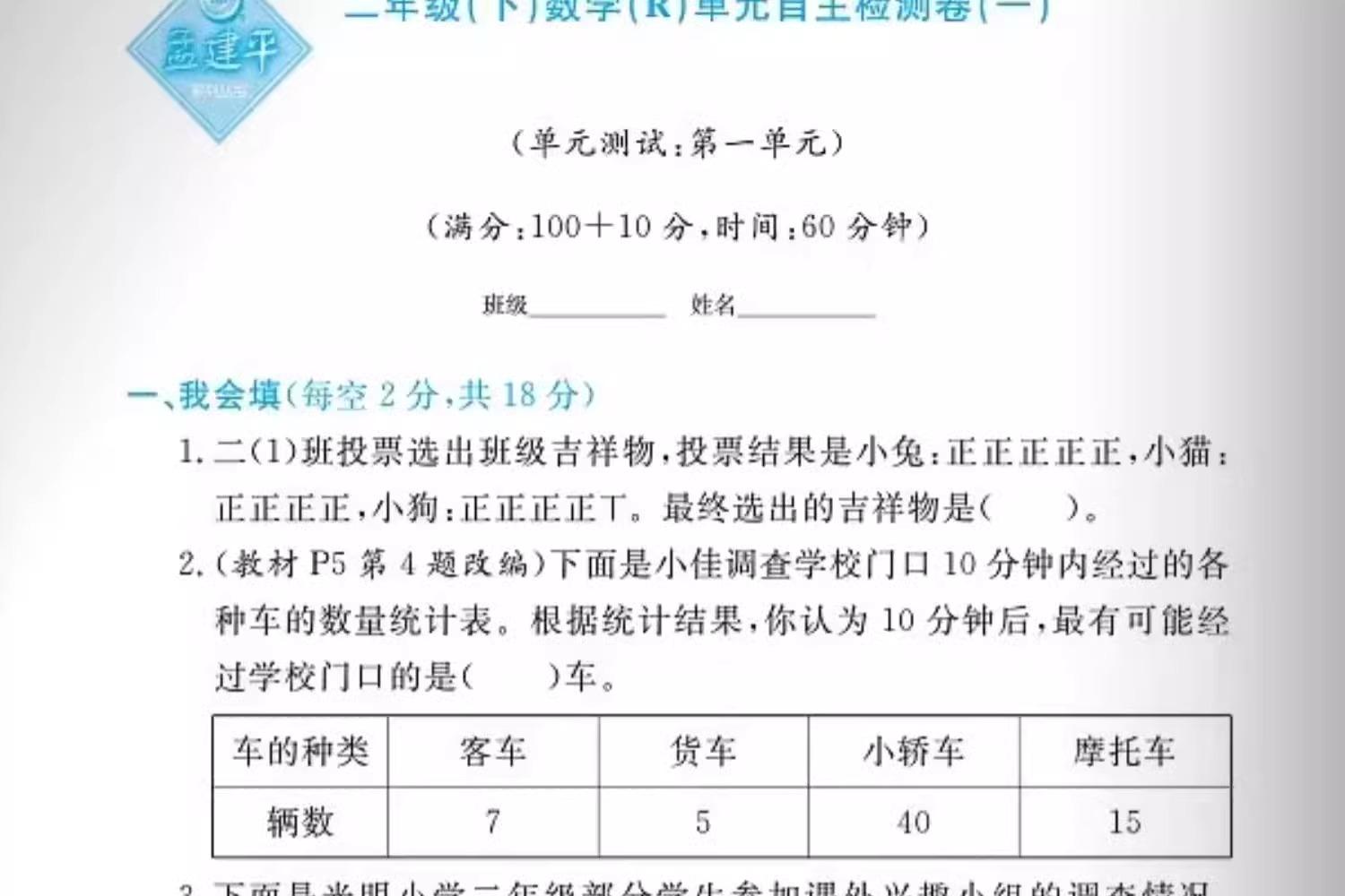 2025秋孟建平小学单元测试卷上册人教版全套同步练习册专项训练