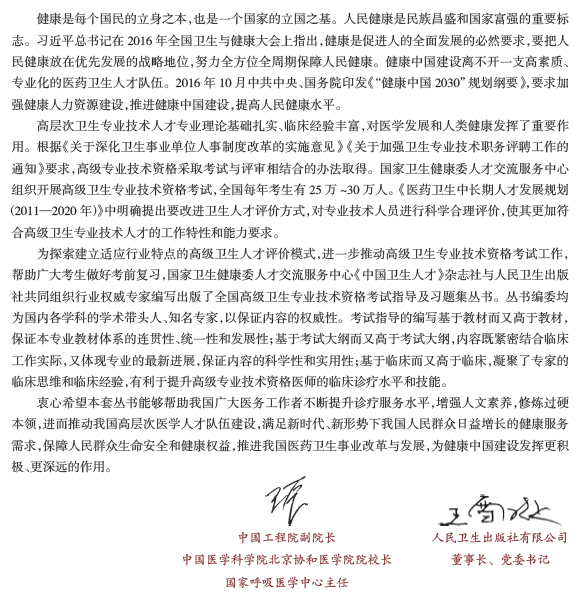 两本书围绕新形势下本专业高级职称人才的培养目标,与临床实践紧密结合,力求反映本学科特点、工作重心、发展趋势及行业新技术与新成果。不仅能指导拟晋升高级职称的应试者进行考前复习,还可以作为广大医务人员日常工作的案头参考书。