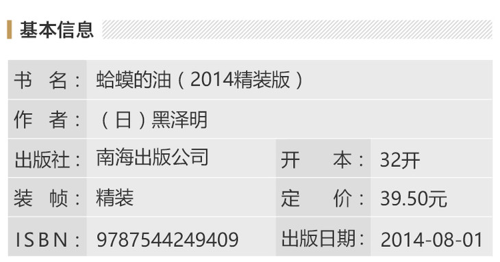 童年时代,他是爱哭鬼,以“少年剑士”自居,却被别人称为“酥糖”;入学时脑子不灵光,被远远安排在教室一角,立川老师启迪他生出自信,结束蒙昧;意外跨入电影界,找到真正想干的工作,他全心投入,一拍成名。《蛤蟆的油》不是一代电影大师黑泽明站在*俯瞰众生的故事,而是他讲述如何积攒实力,从山脚一步一步攀向山顶的往事。