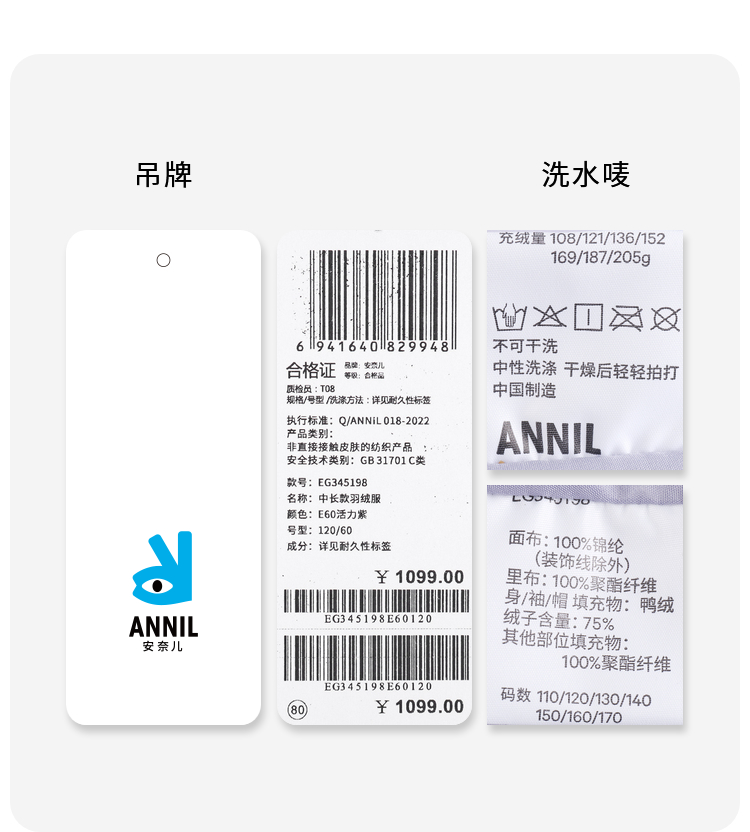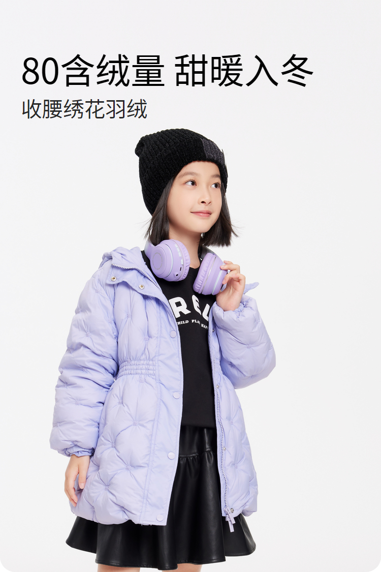 【御寒-5~5℃】女童中长款羽绒服冬外套安奈儿童装EG345198