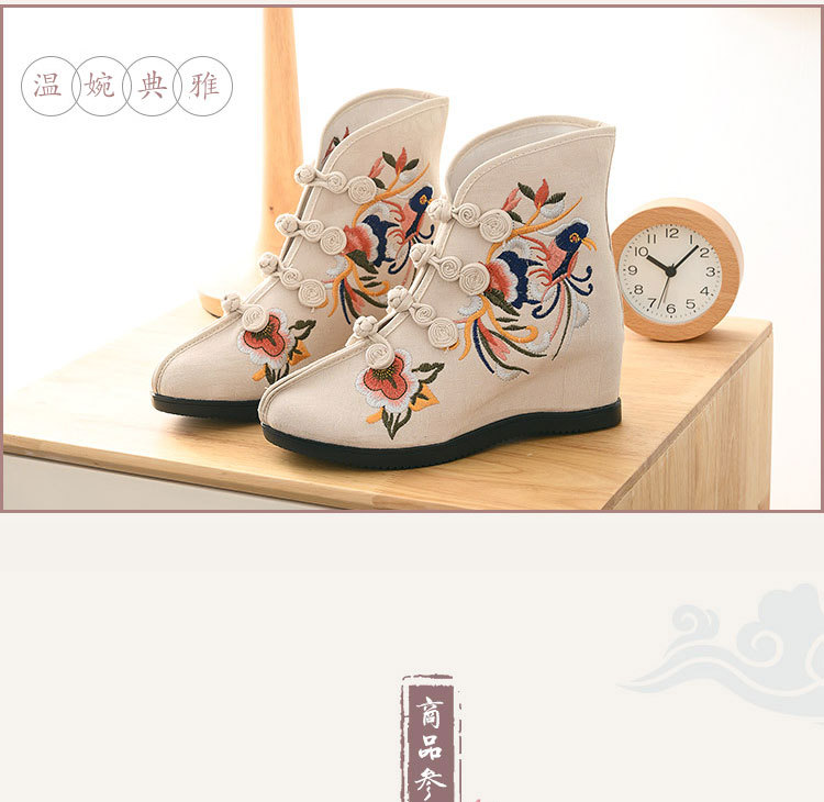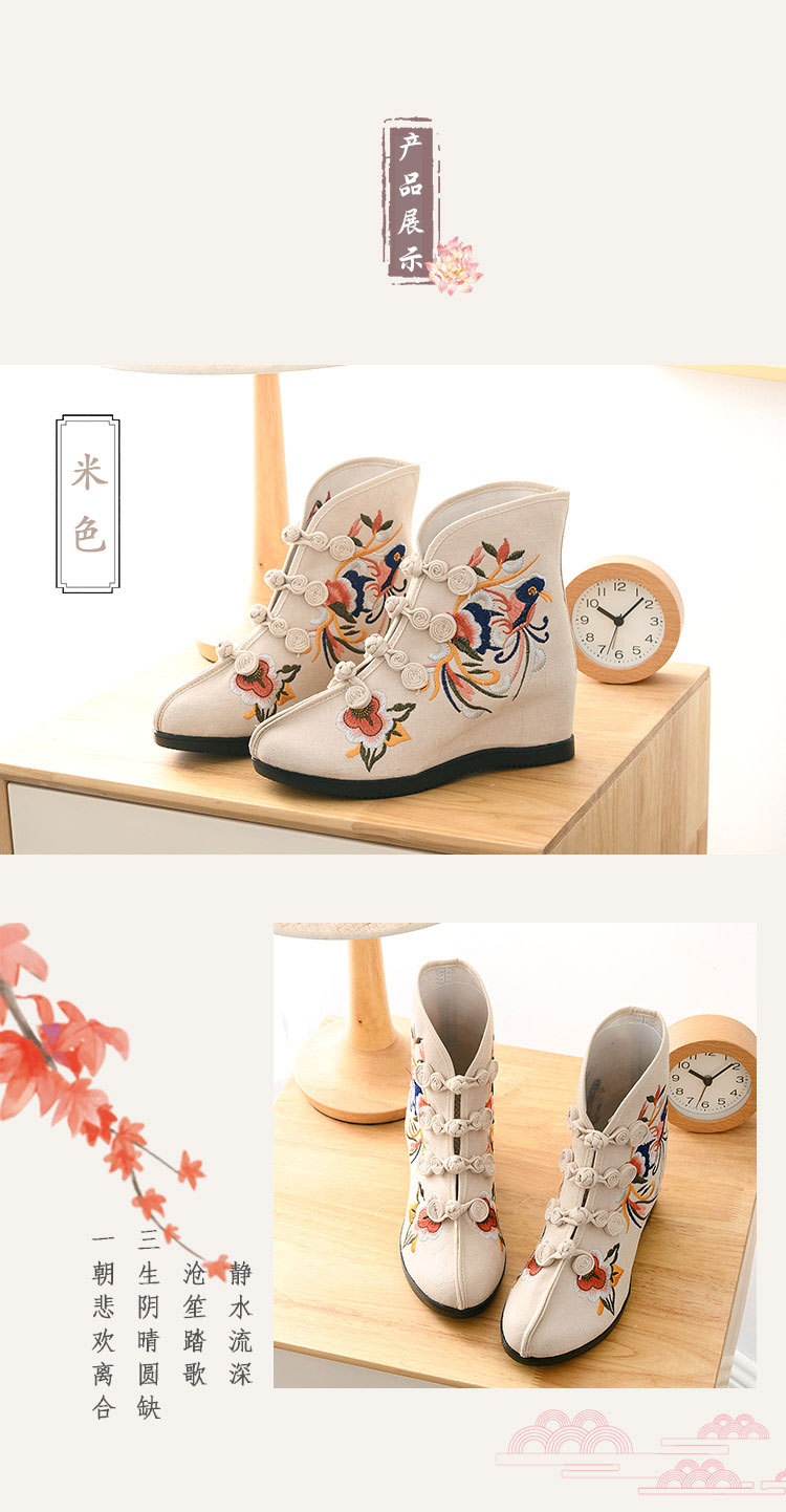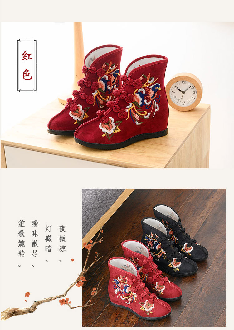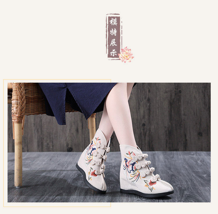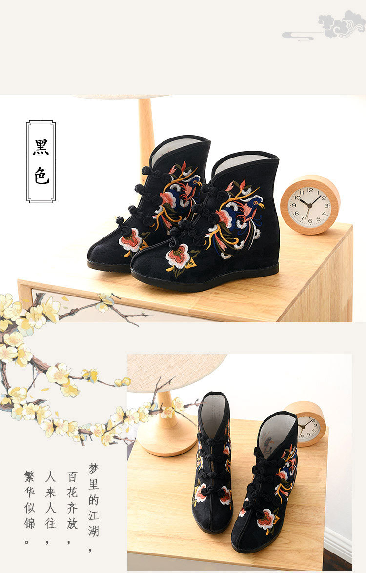 绣花靴子绣花鞋舞蹈女靴坡跟内高跟女鞋民族风布鞋汉服靴 BS831-4