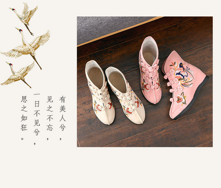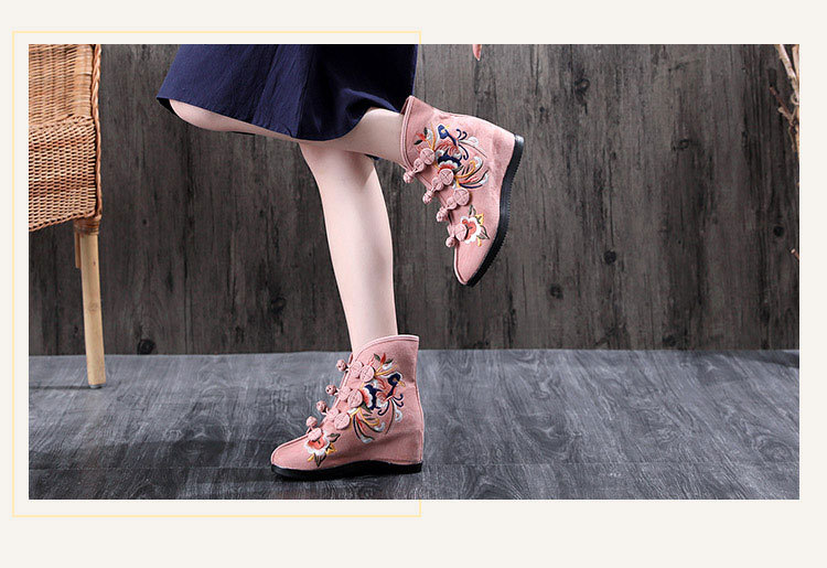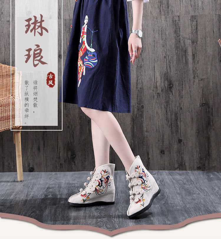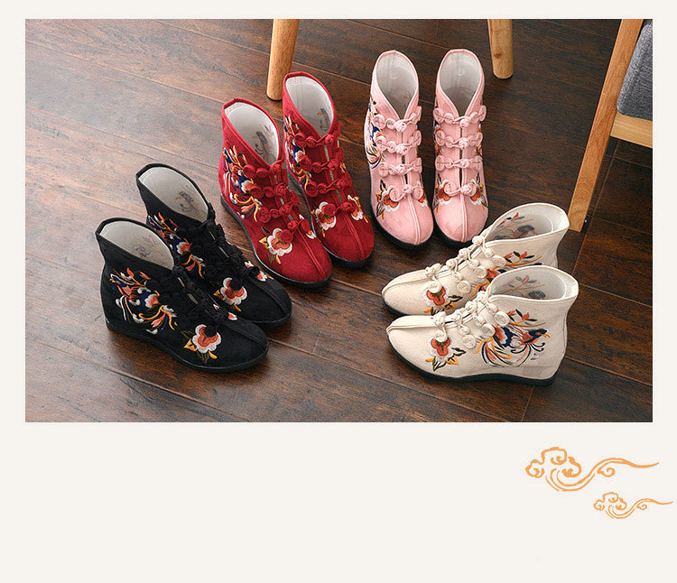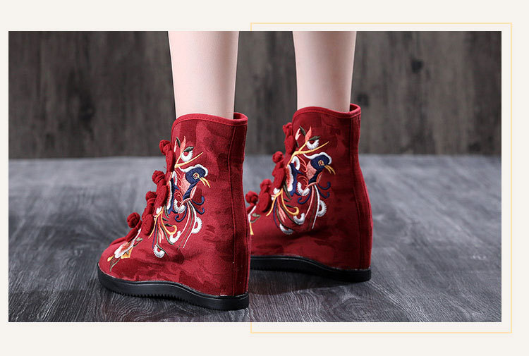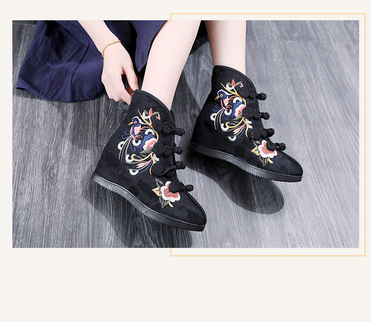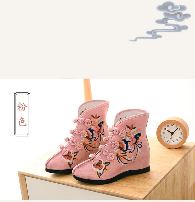 绣花靴子绣花鞋舞蹈女靴坡跟内高跟女鞋民族风布鞋汉服靴 BS831-4