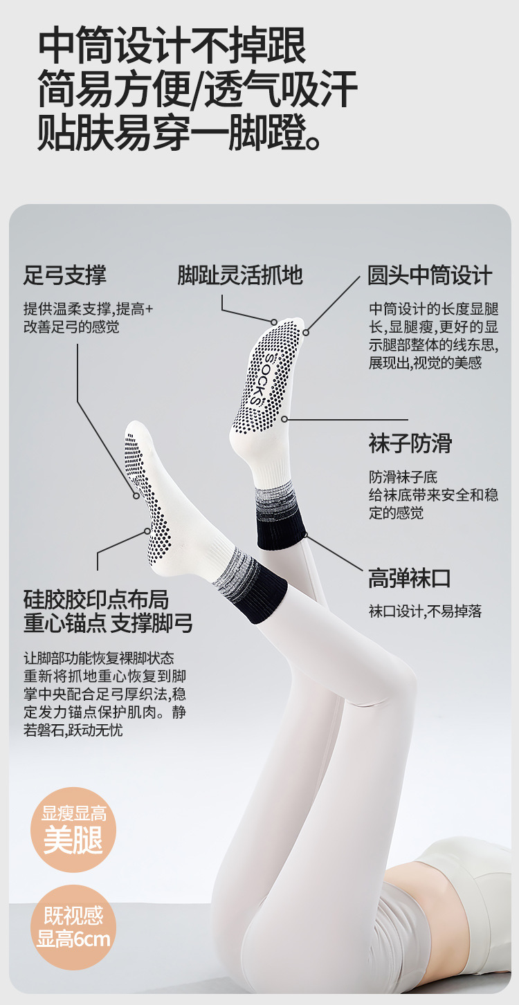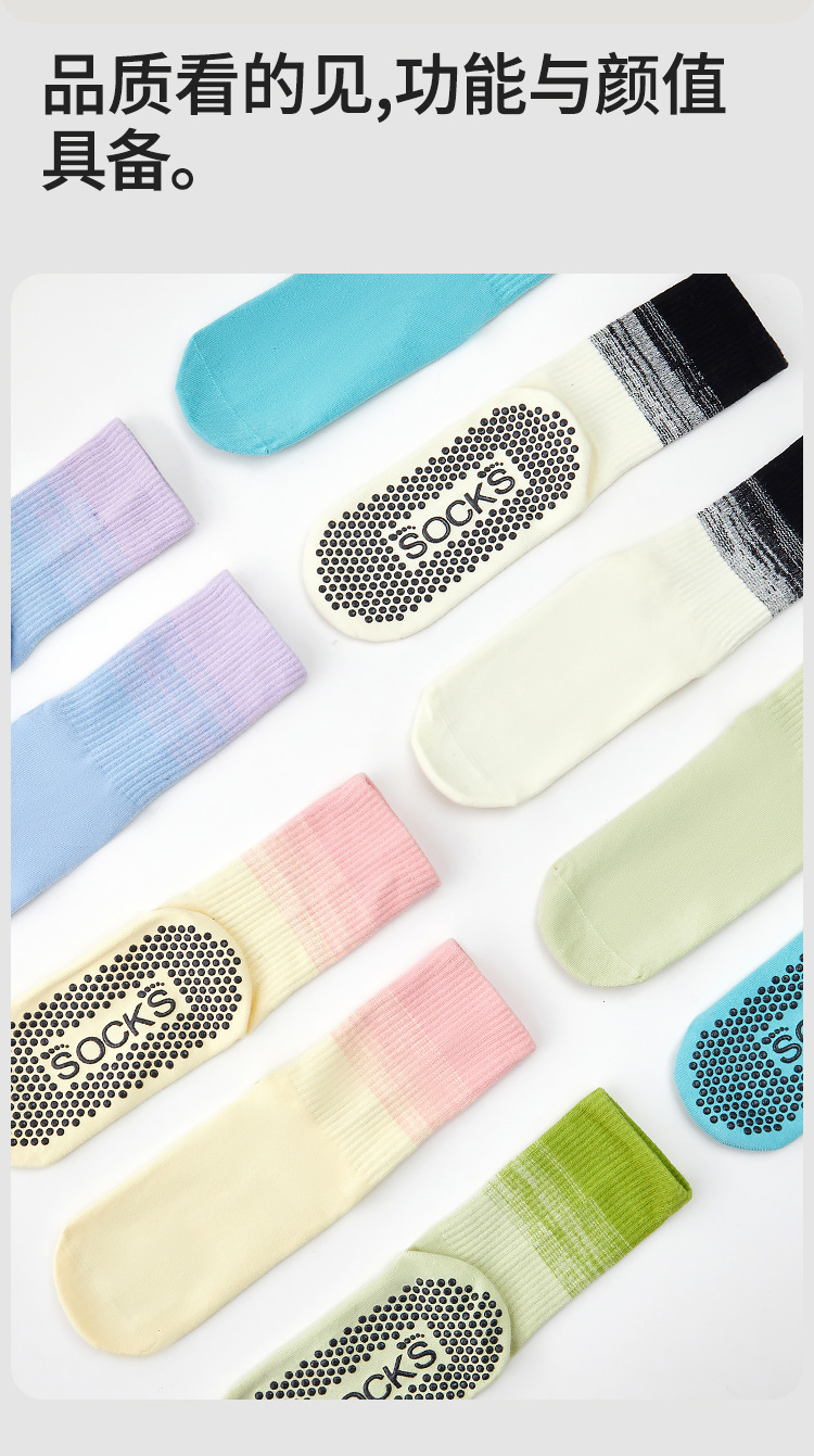 【49元任选3双】【腾飞系列】新品扎染瑜伽袜子春秋防滑专业女中筒运动袜定制成人款普拉提袜子(活动产品,收货7天内支持退换)