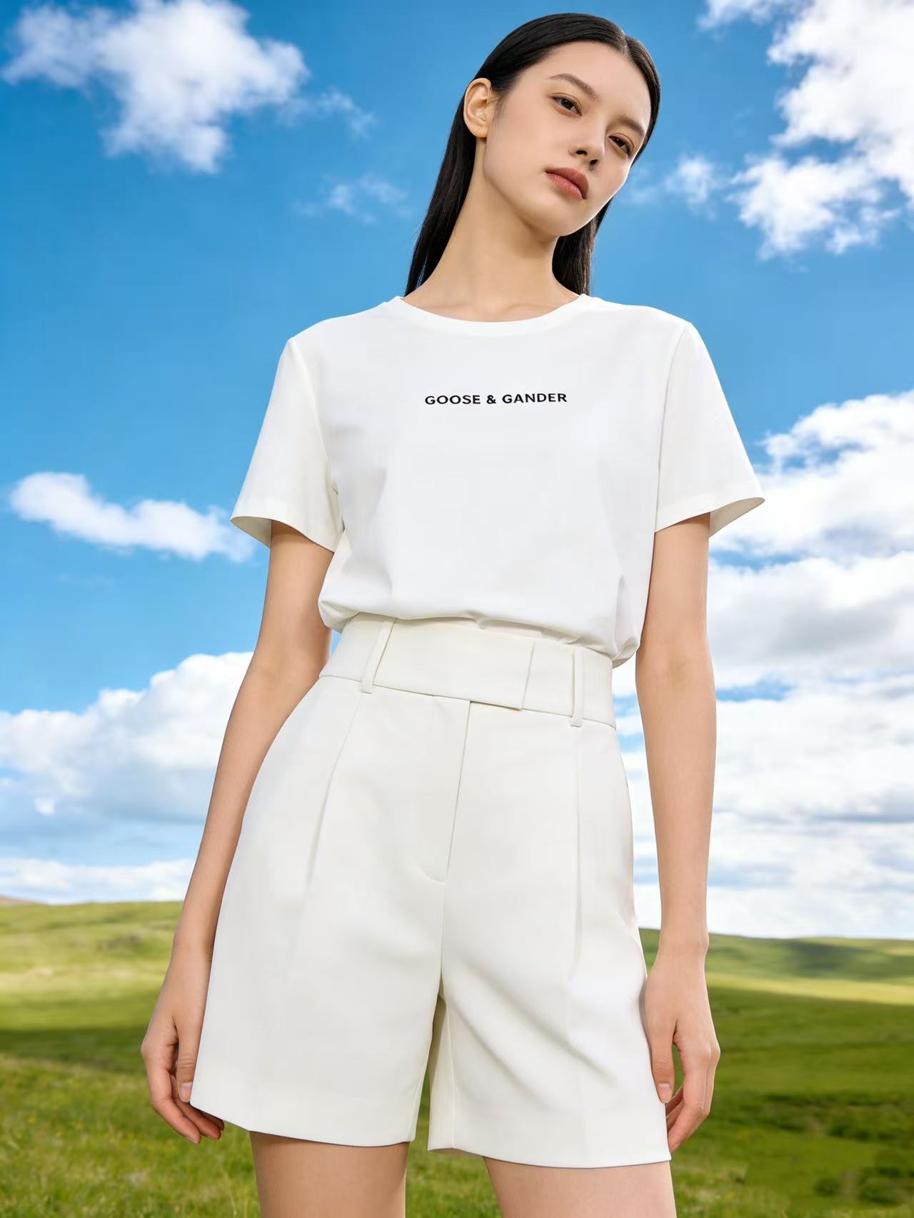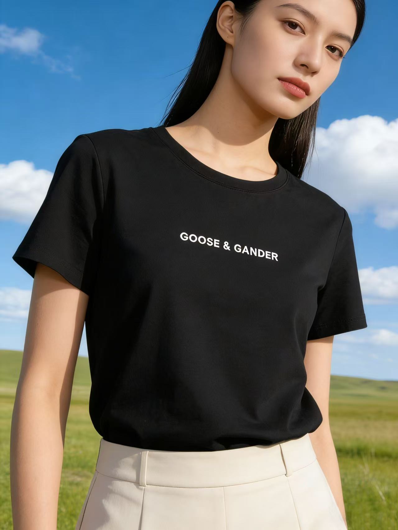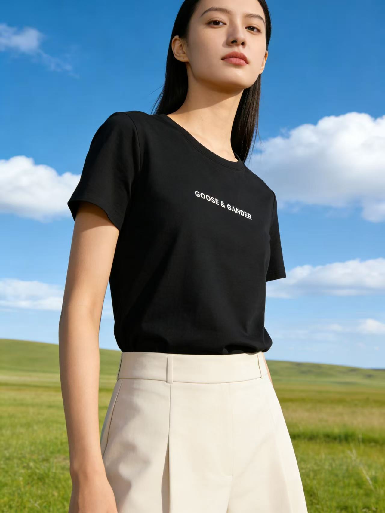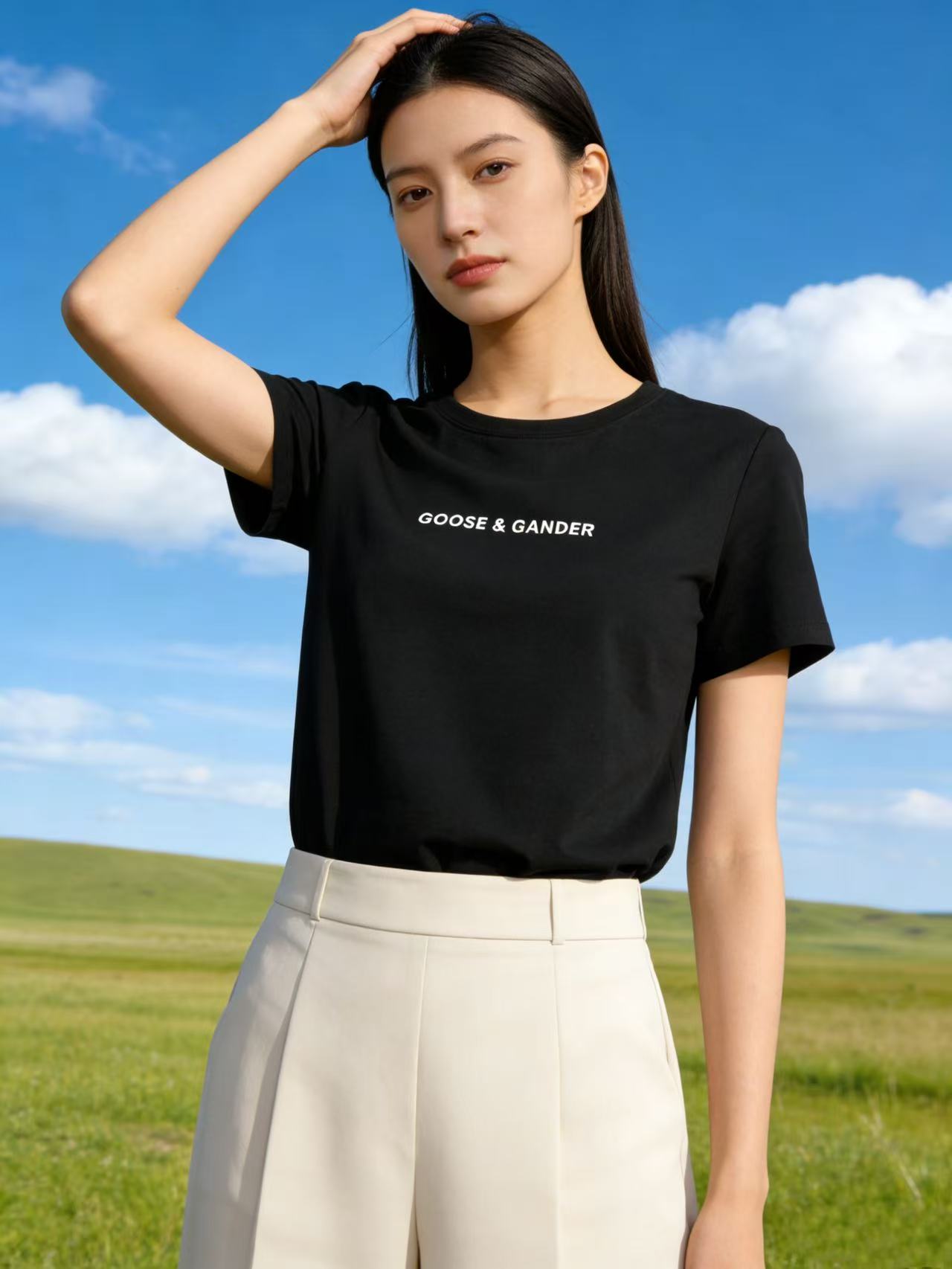性价比天花板【自营】精致G&G字母刺绣!6319精梳棉95%圆领简约短袖T恤上衣-喜出