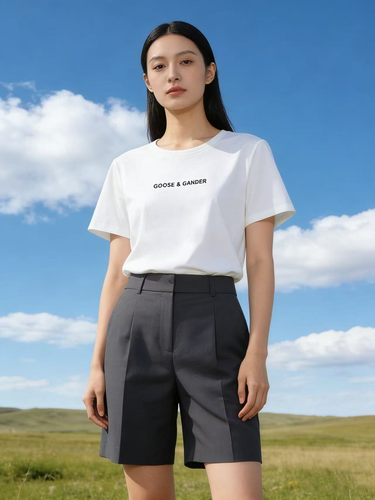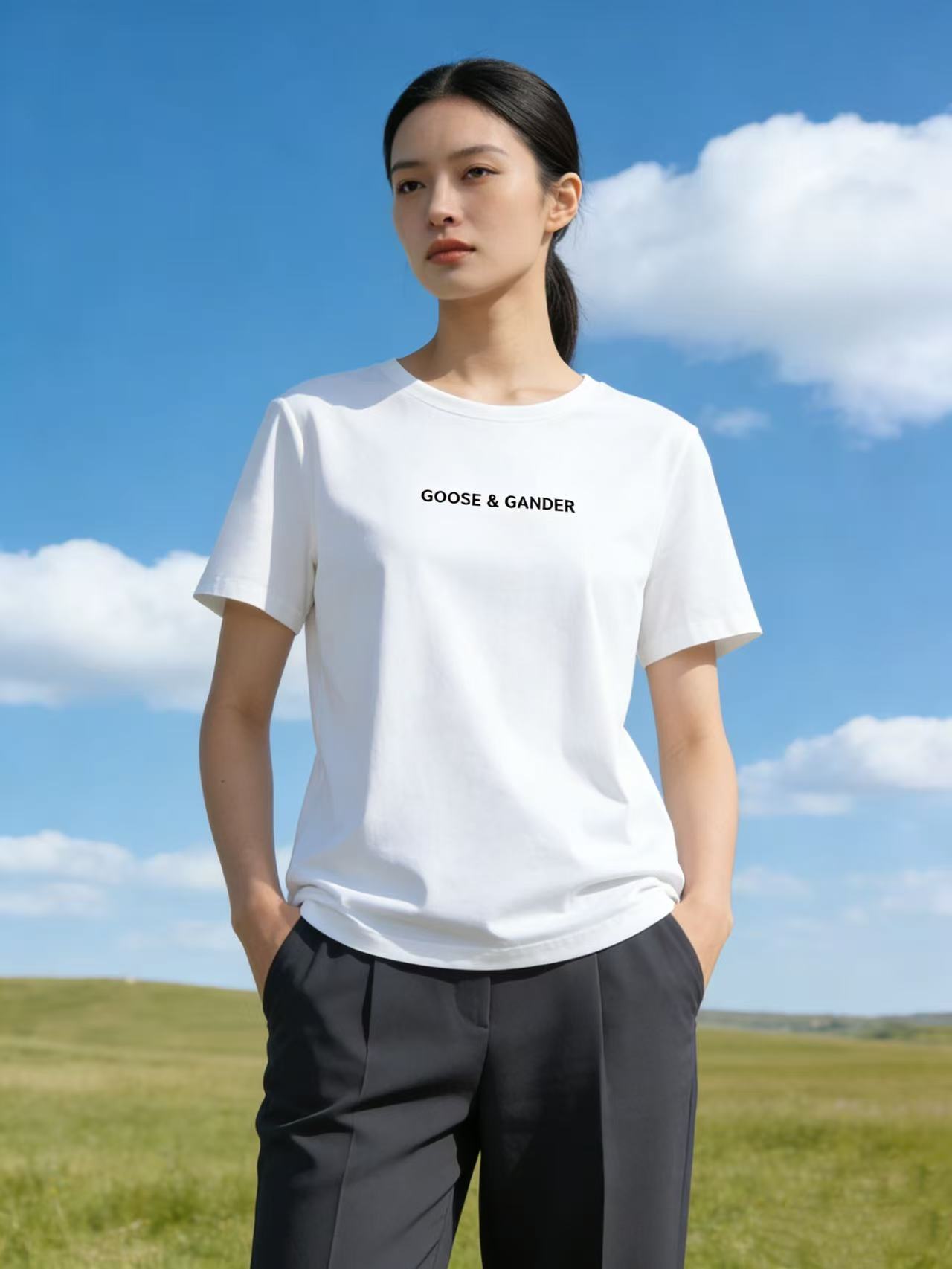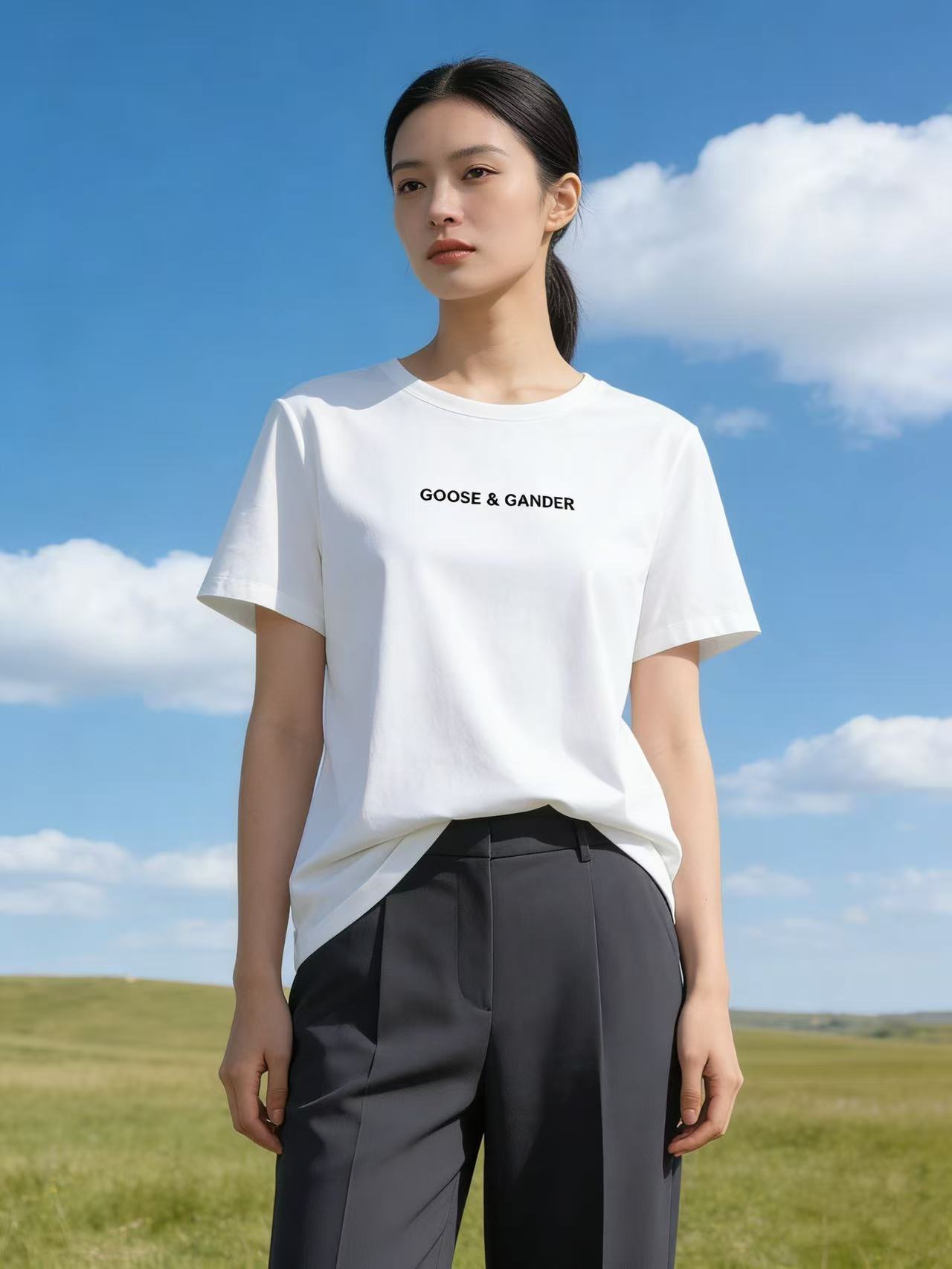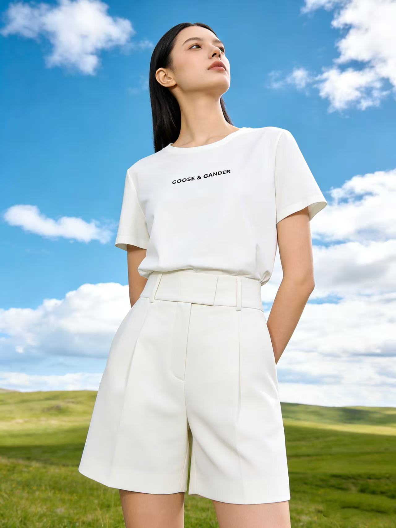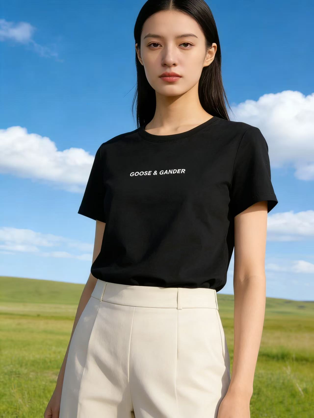 性价比天花板【自营】精致G&G字母刺绣!6319精梳棉95%圆领简约短袖T恤上衣-喜出