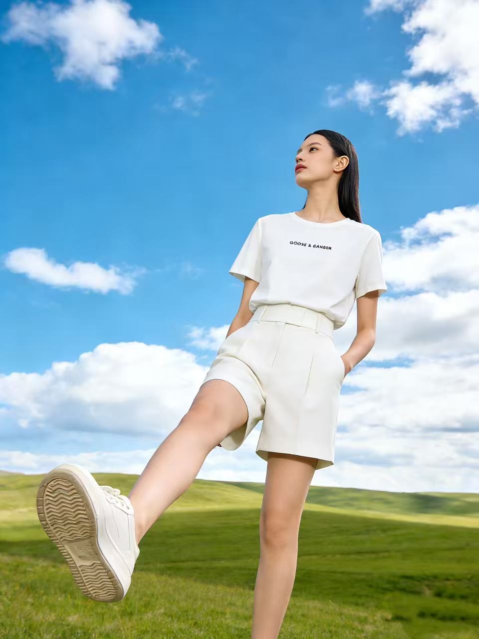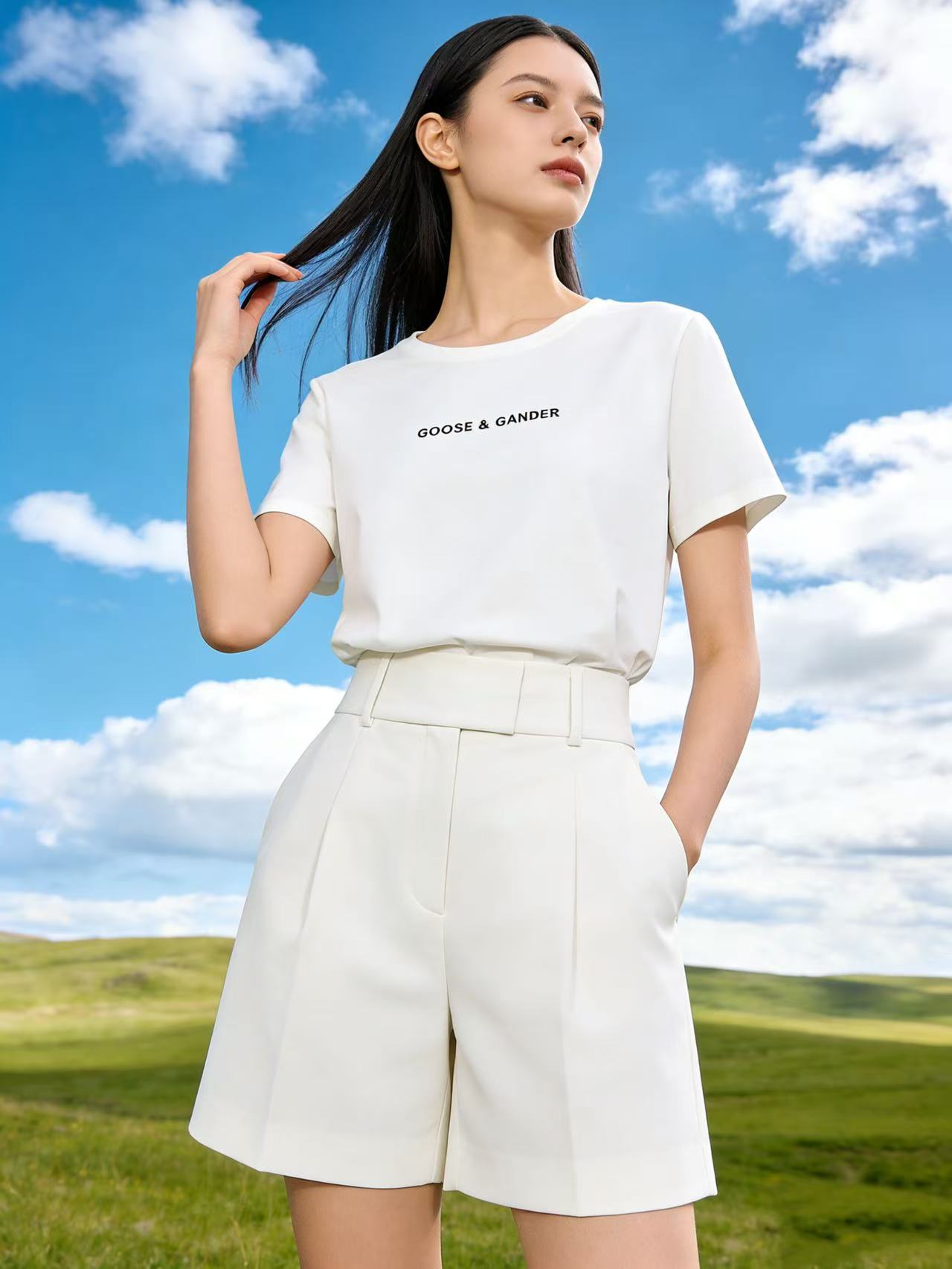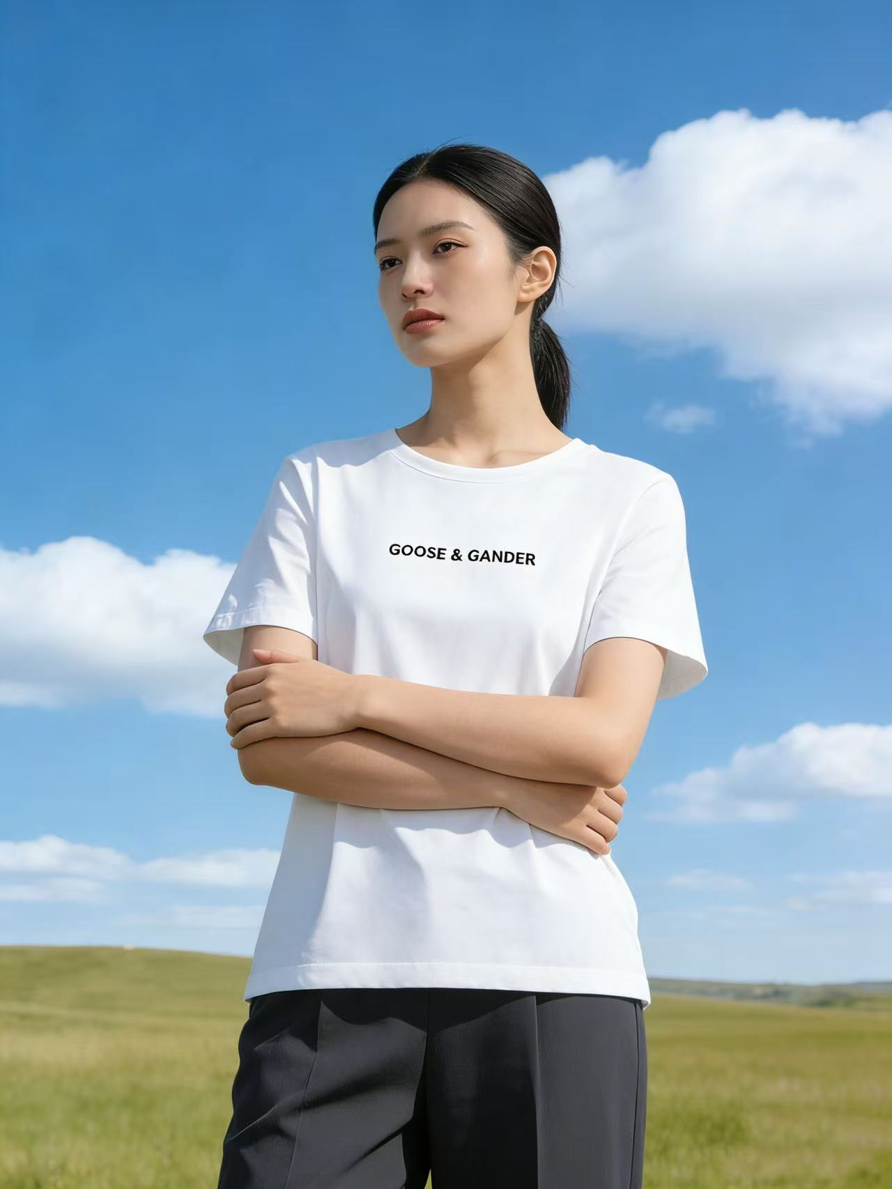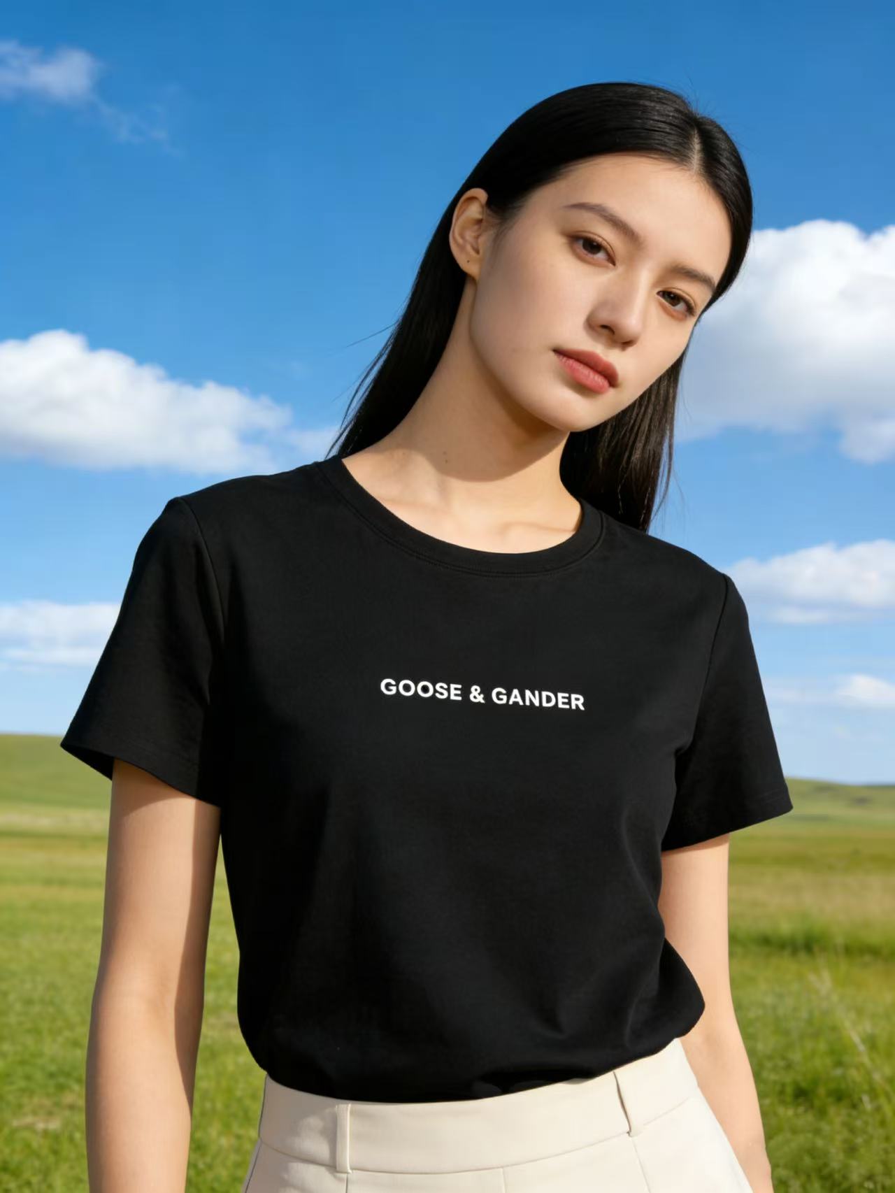 性价比天花板【自营】精致G&G字母刺绣!6319精梳棉95%圆领简约短袖T恤上衣-喜出