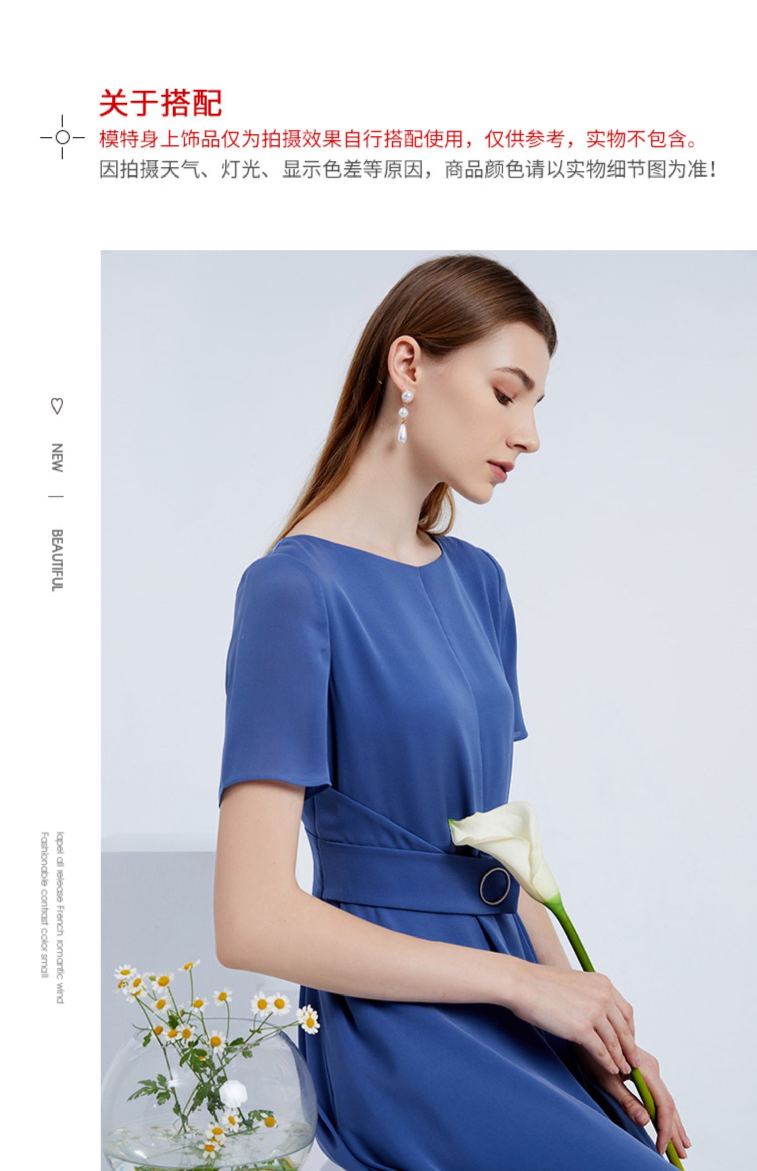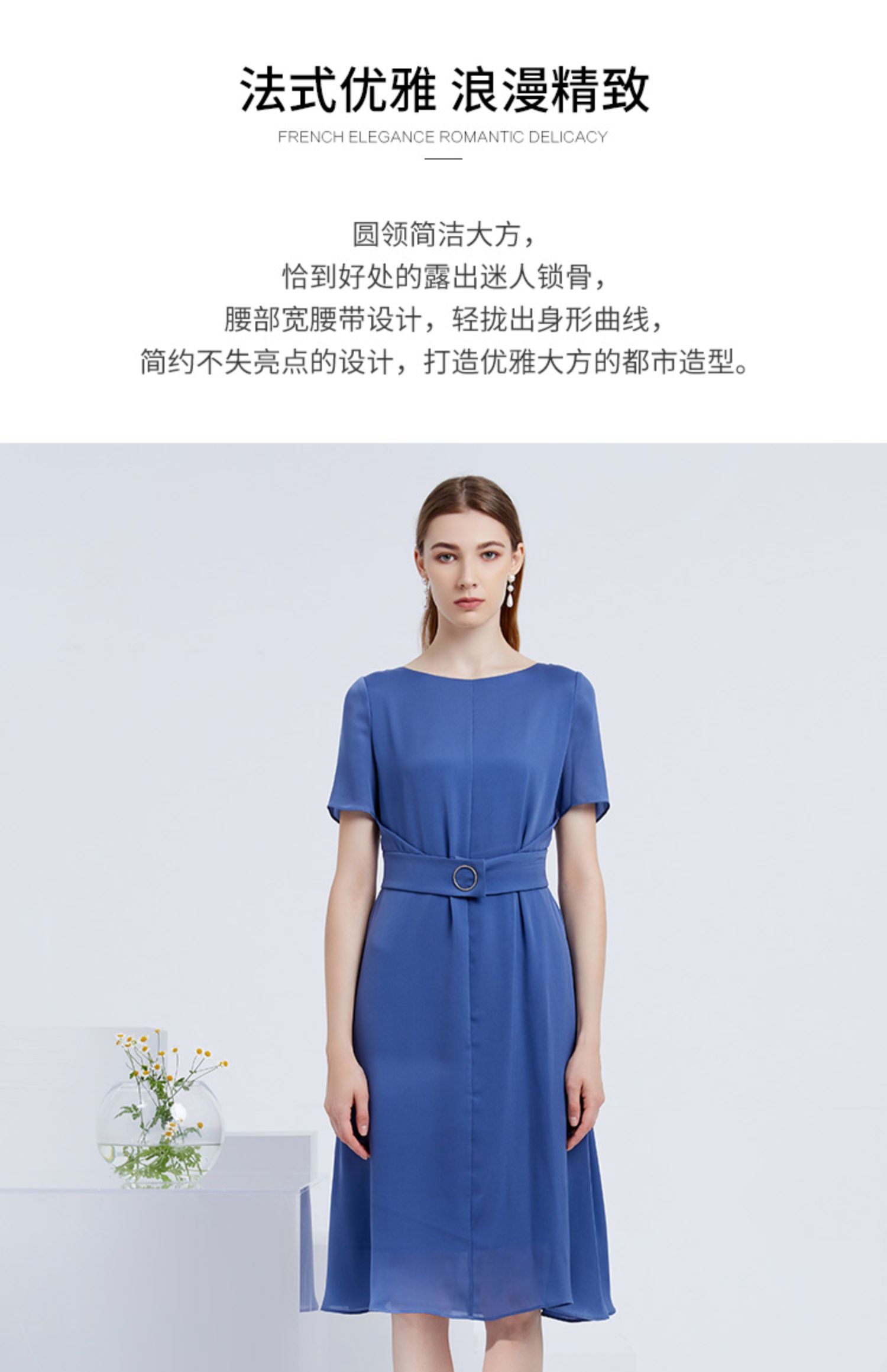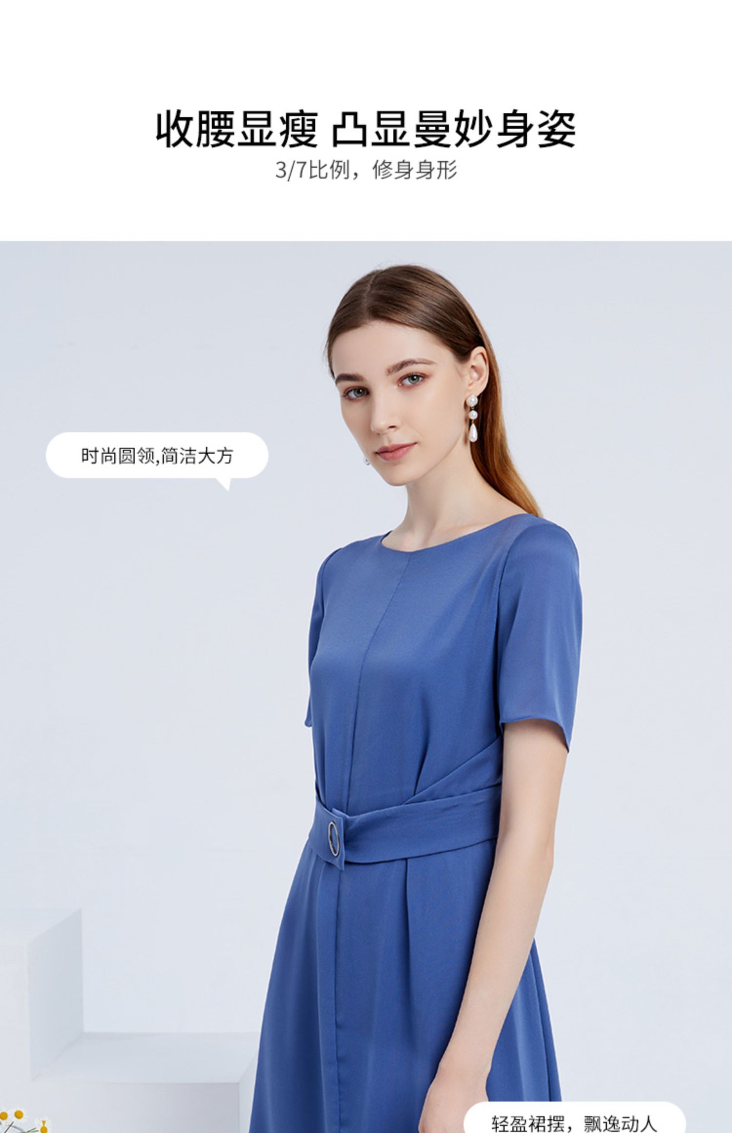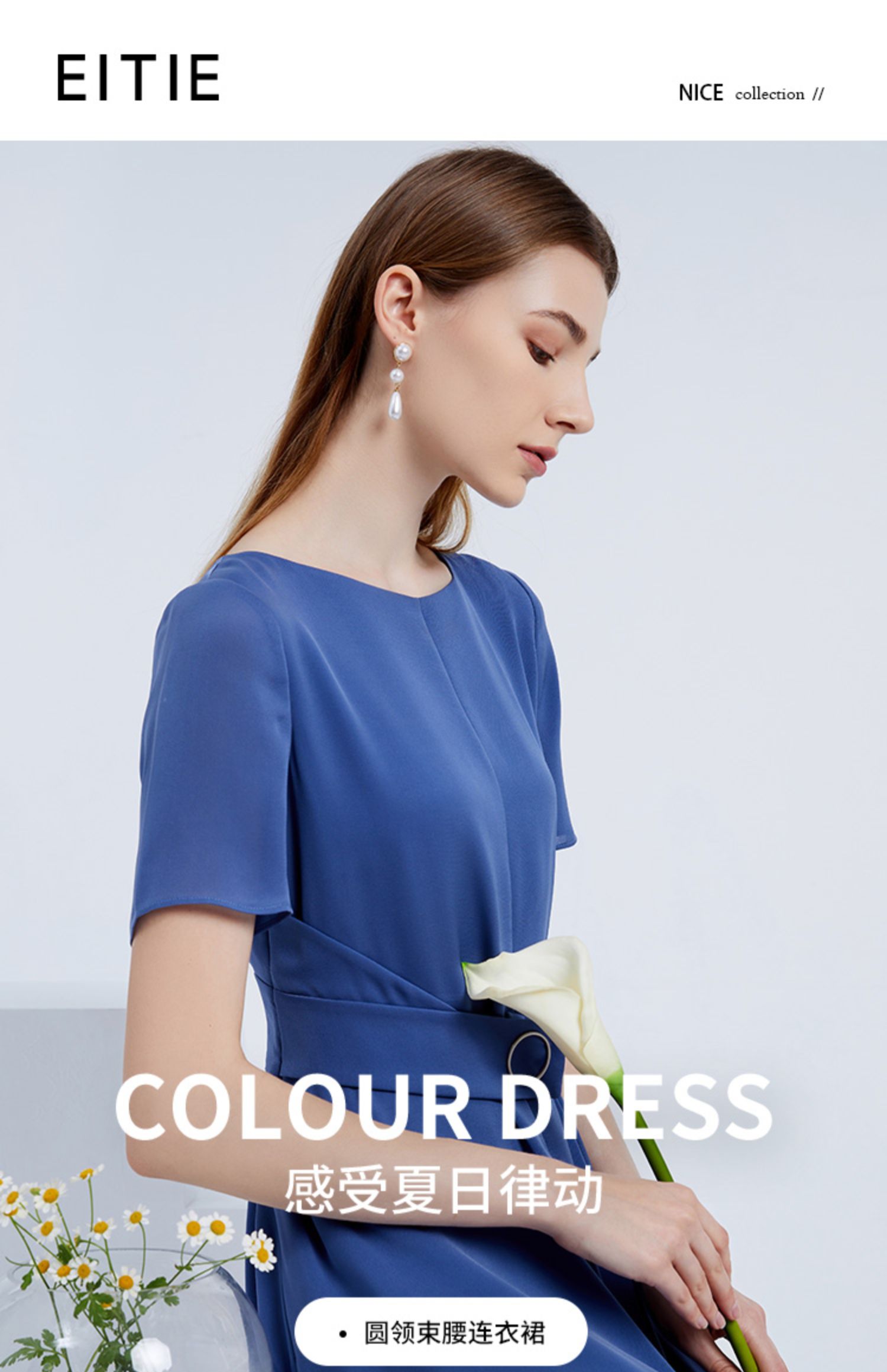 故障+EITIE爱特爱夏季新款通勤优雅收腰显瘦简约纯色A字连衣裙5907631