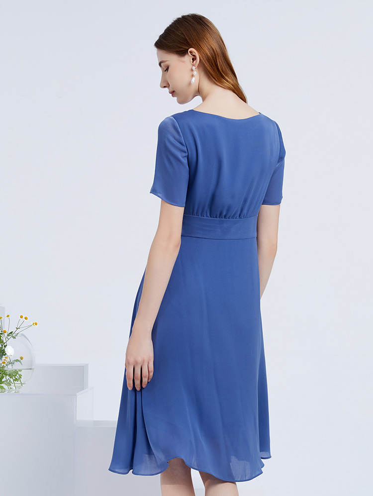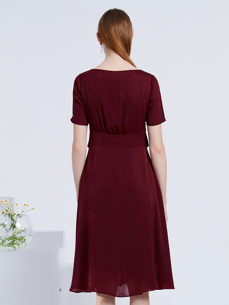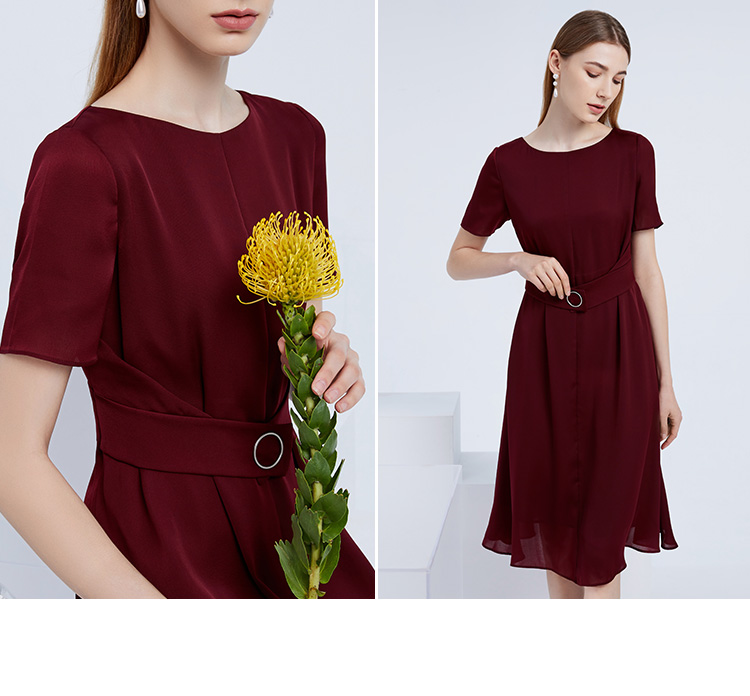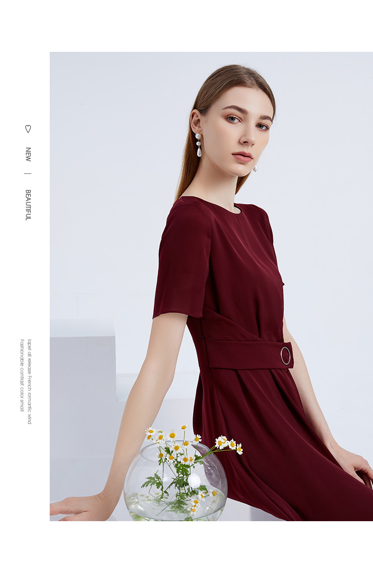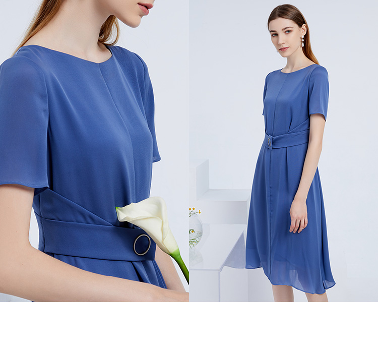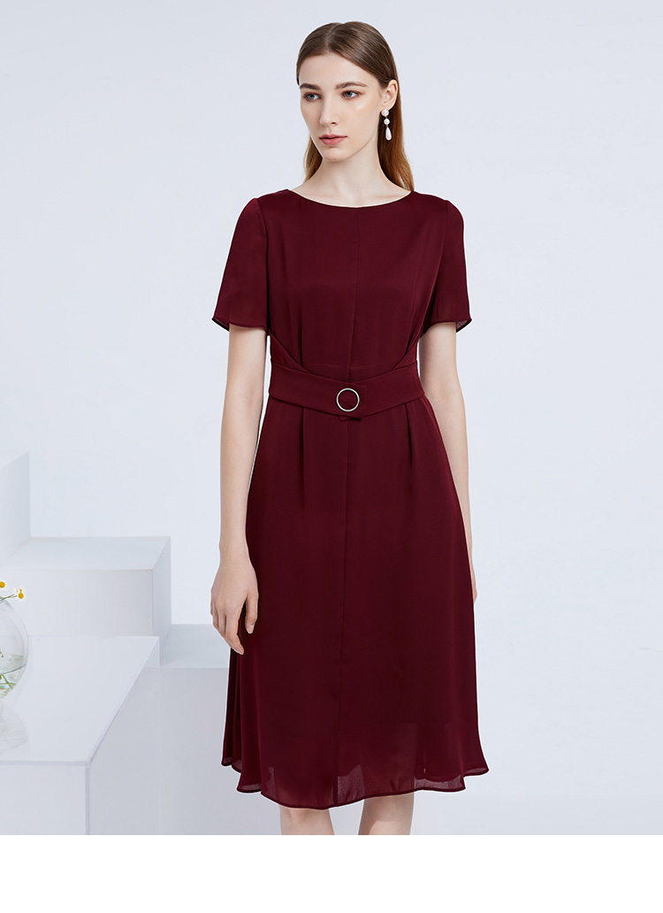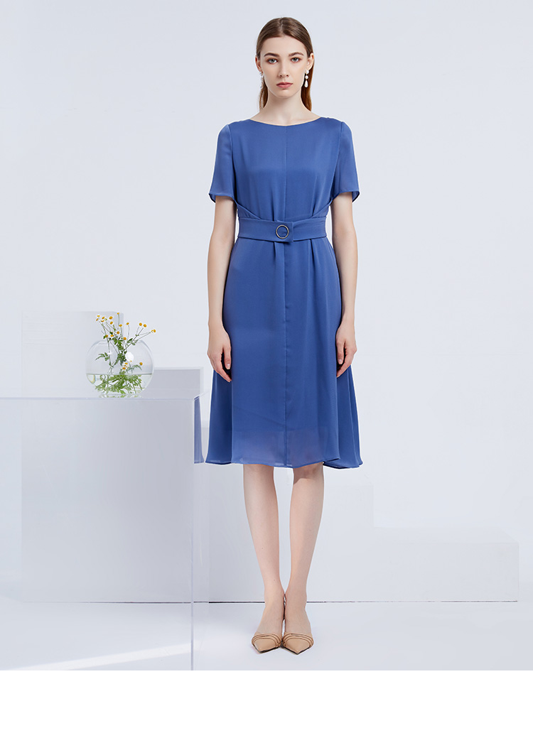 故障+EITIE爱特爱夏季新款通勤优雅收腰显瘦简约纯色A字连衣裙5907631