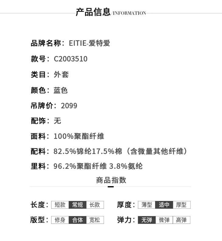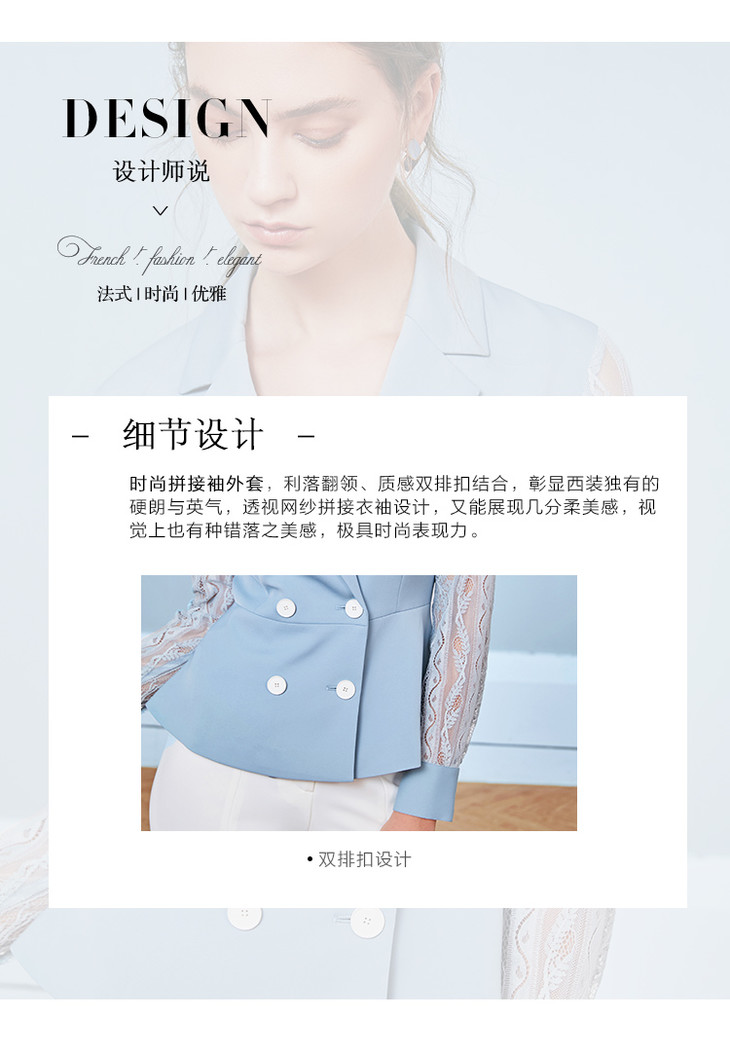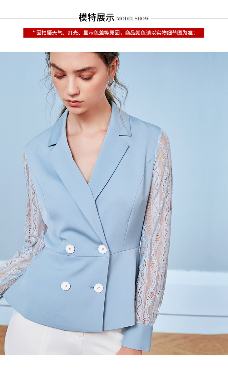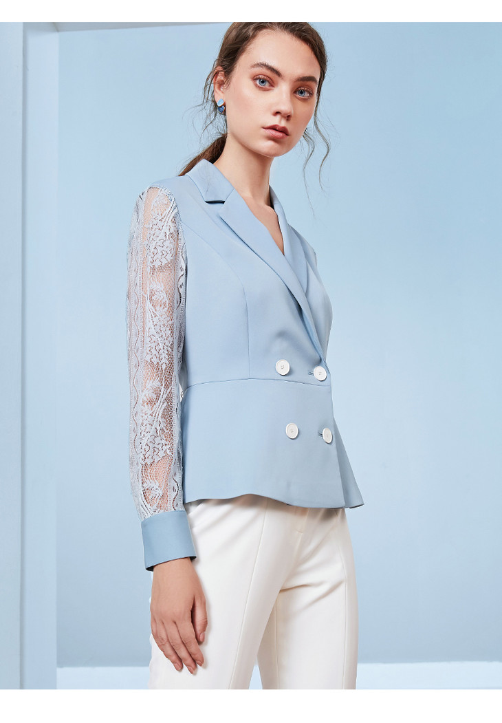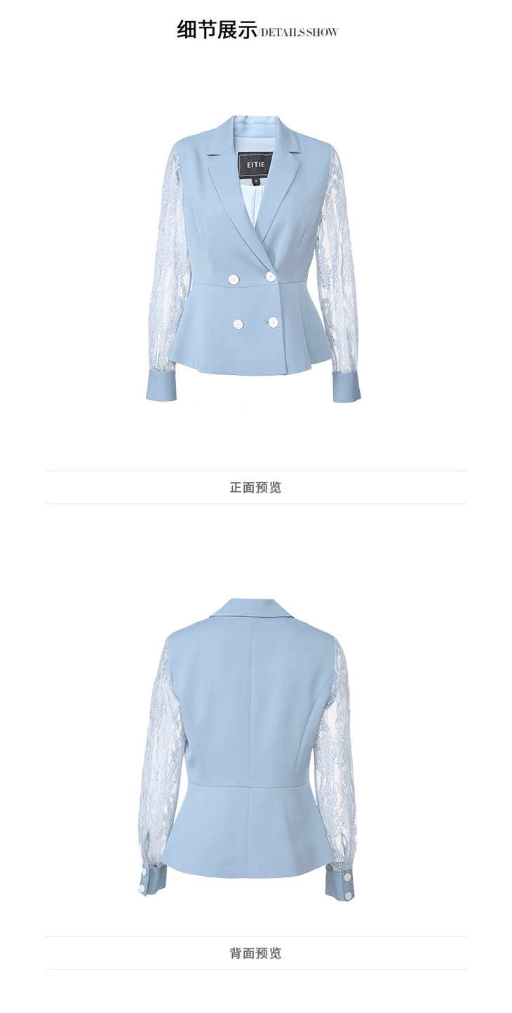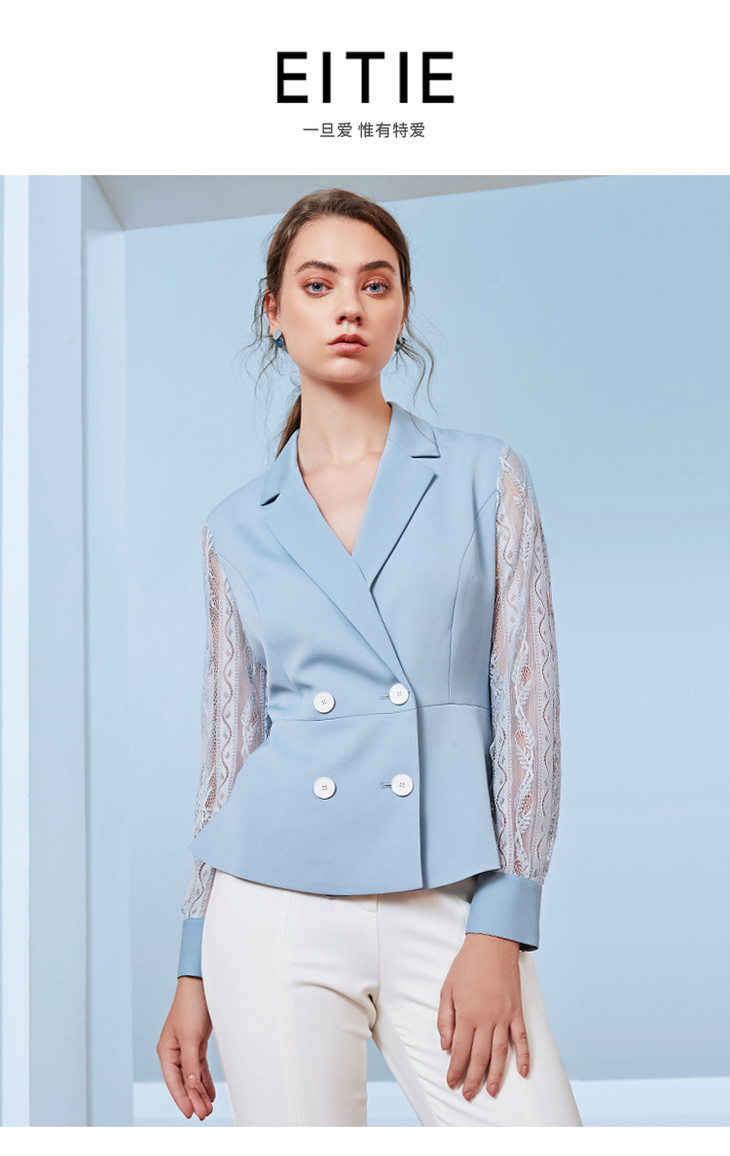 EITIE爱特爱秋季新款洋气镂空蕾丝拼接双排扣收腰西装外套女C2003510