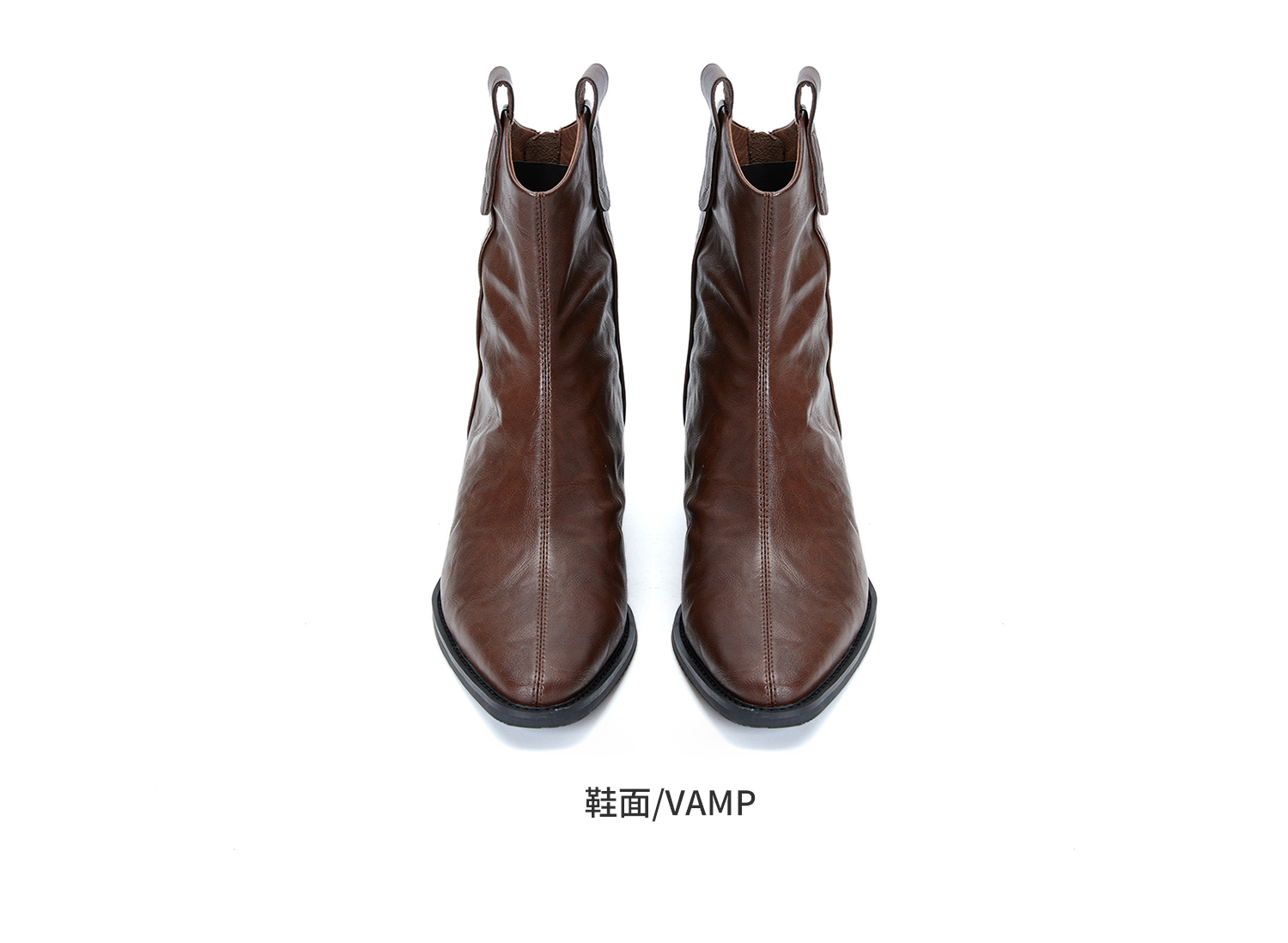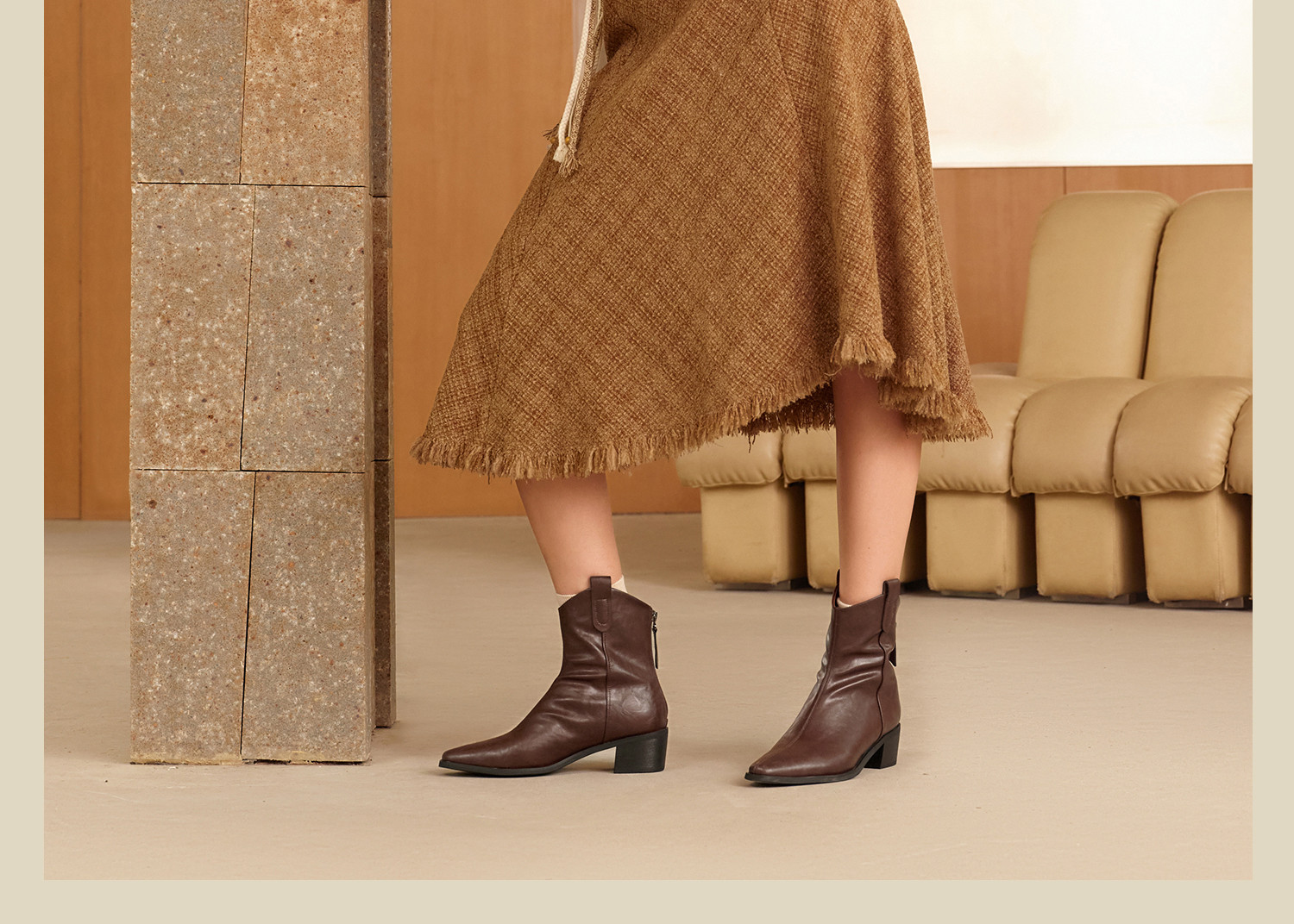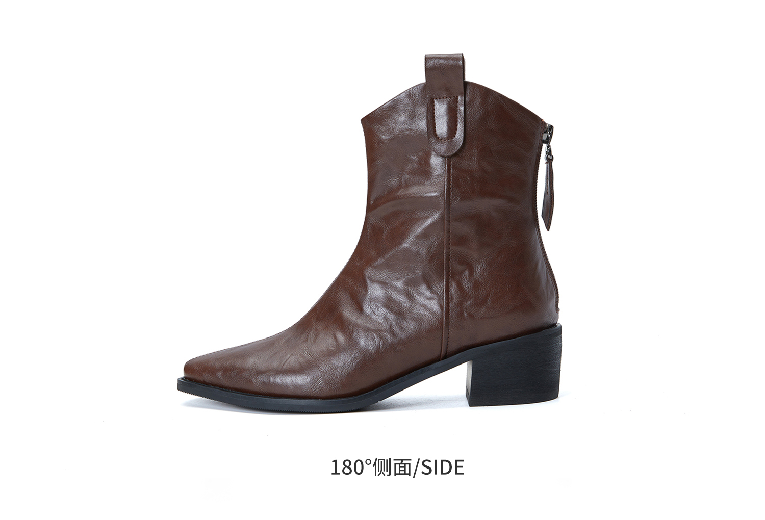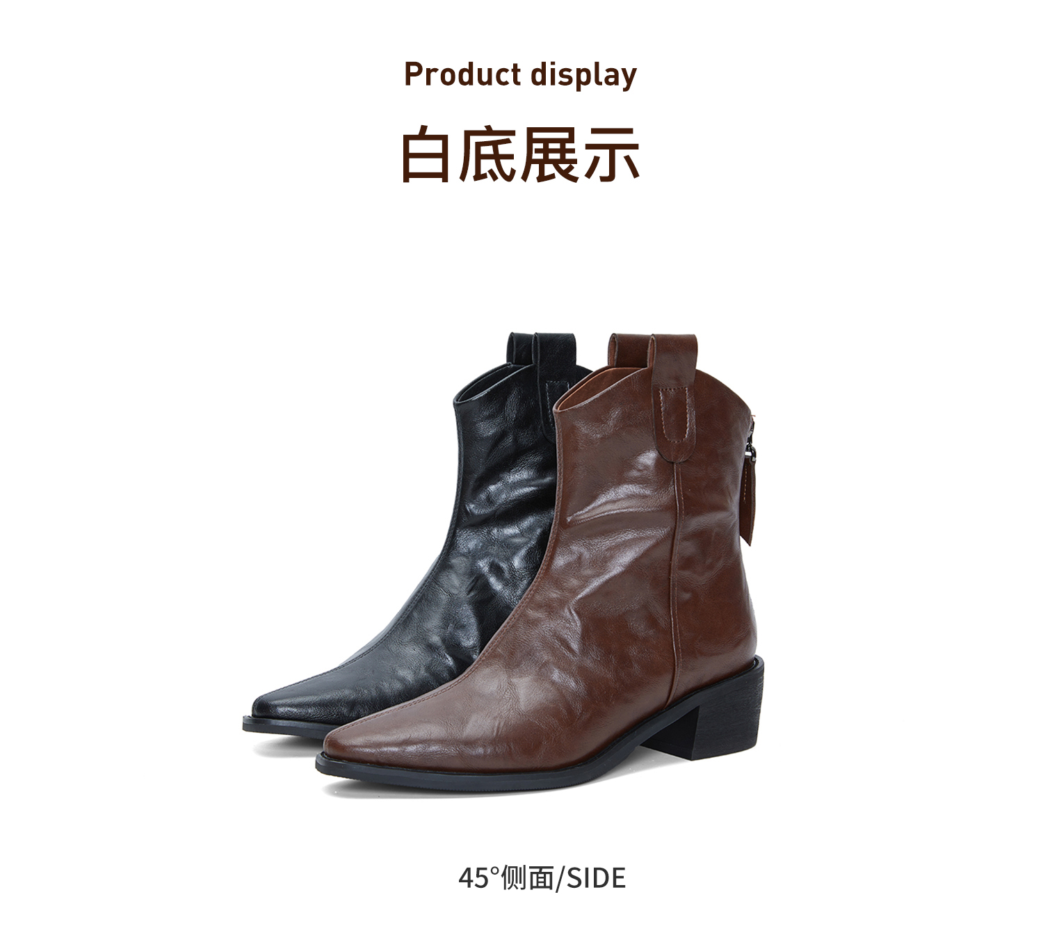 【土豆妈同款】百田森PYQ2C936西部牛仔靴女小短靴真皮尖头靴子美拉德