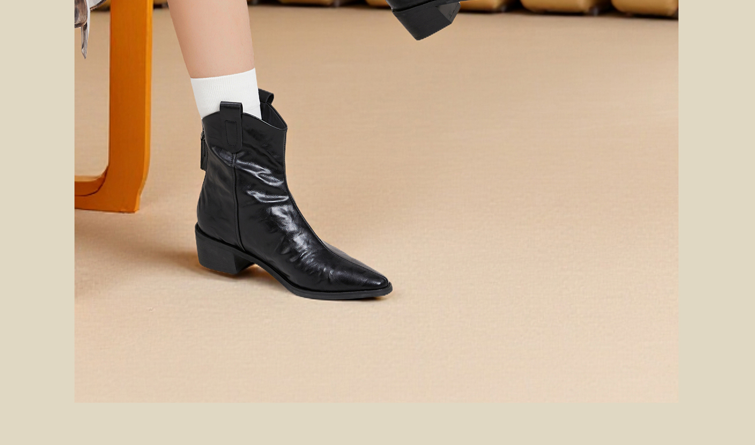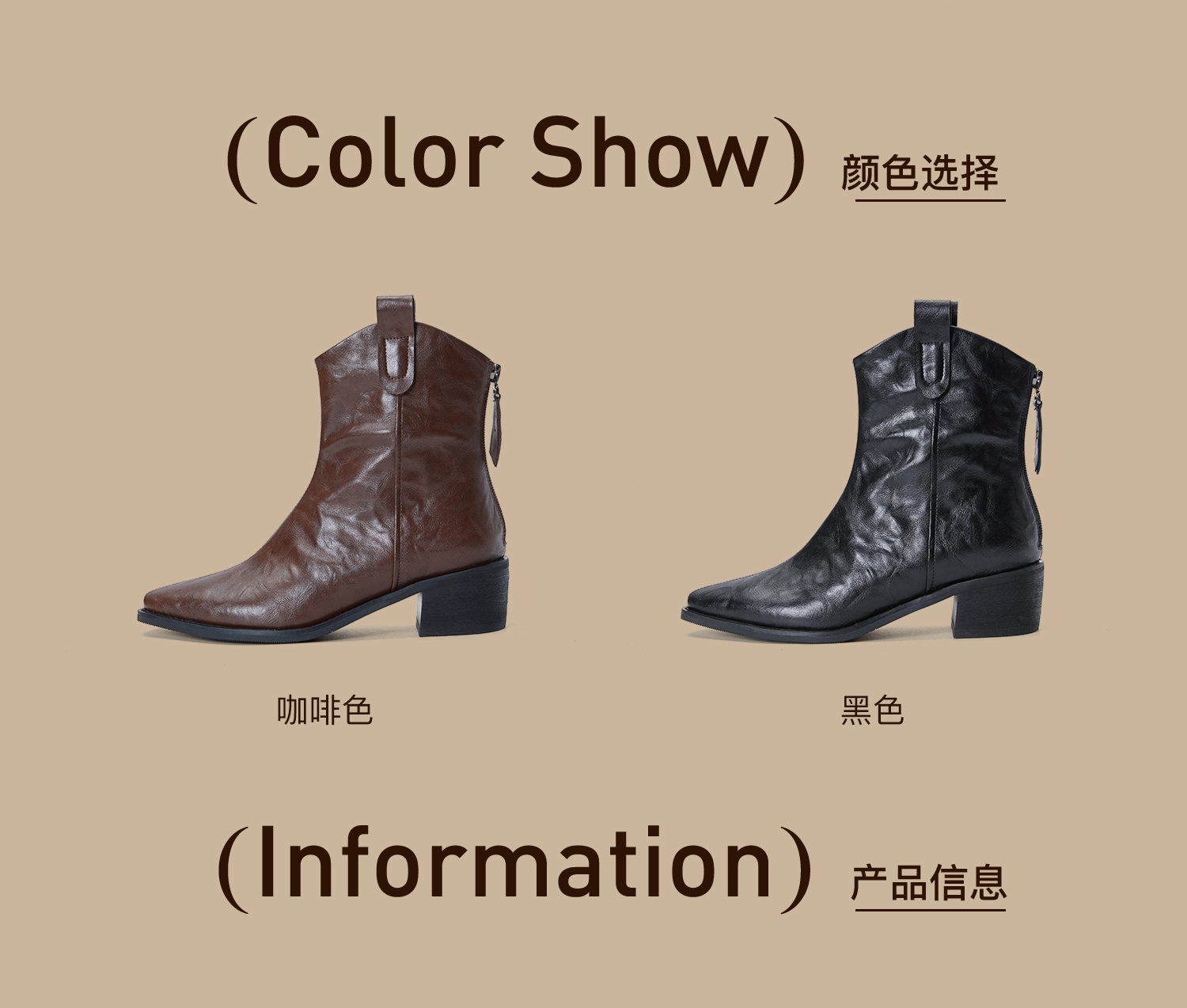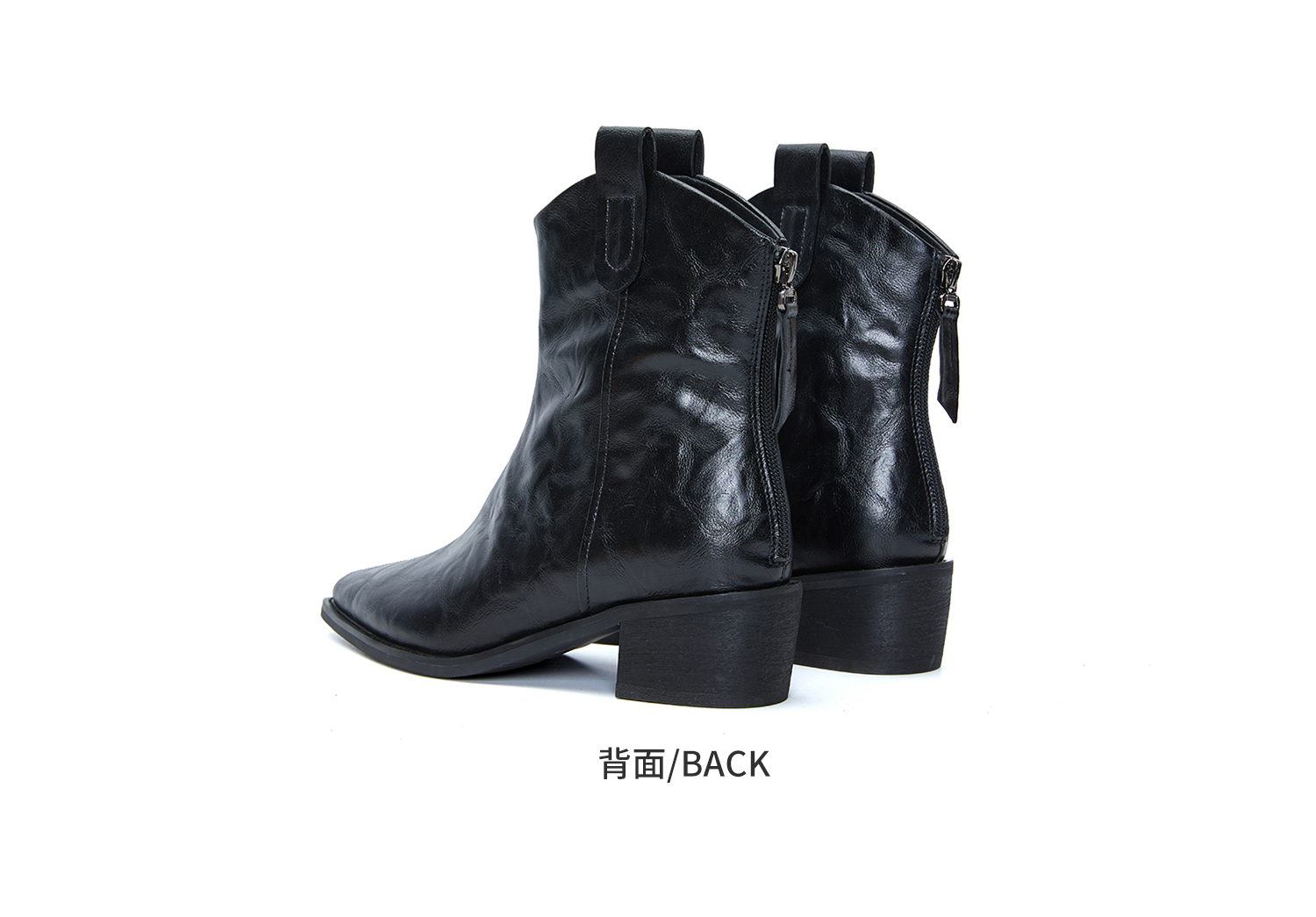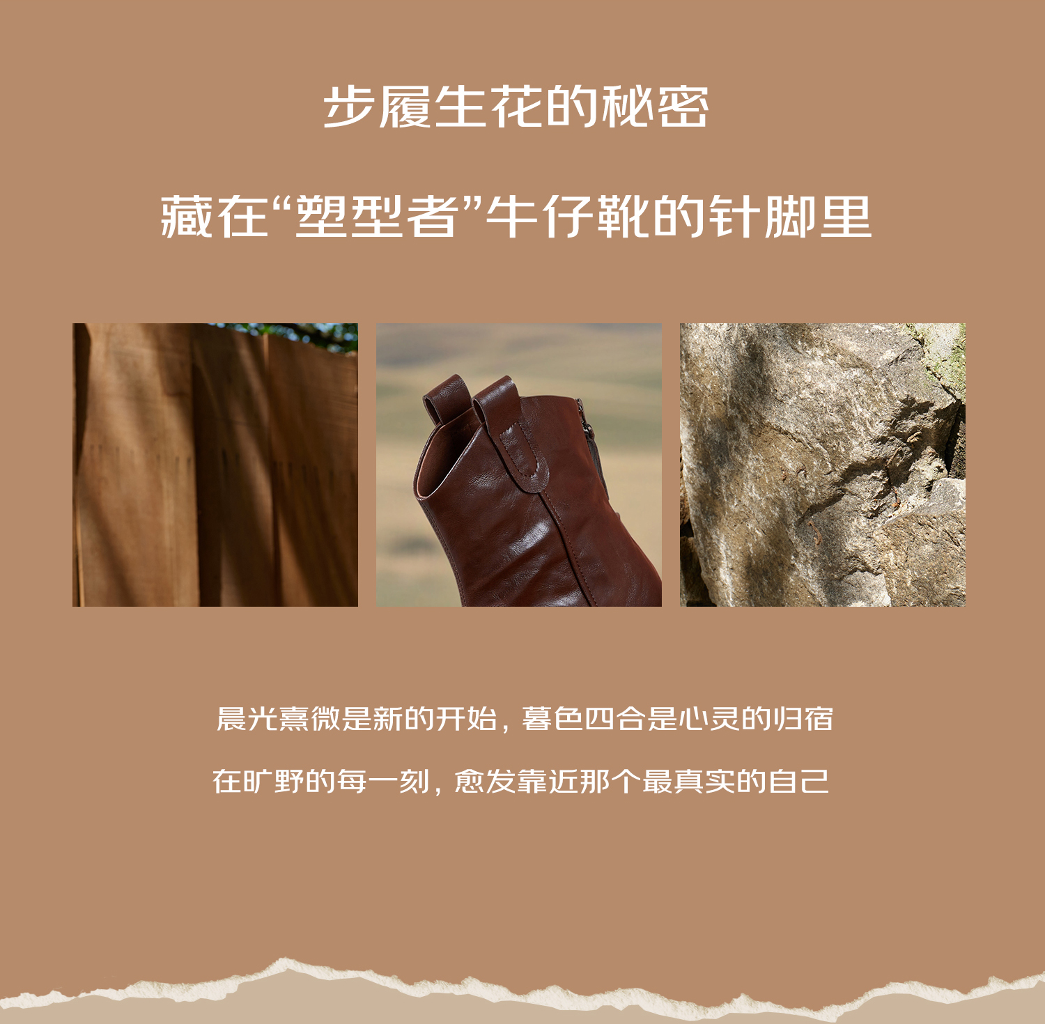 【土豆妈同款】百田森PYQ2C936西部牛仔靴女小短靴真皮尖头靴子美拉德