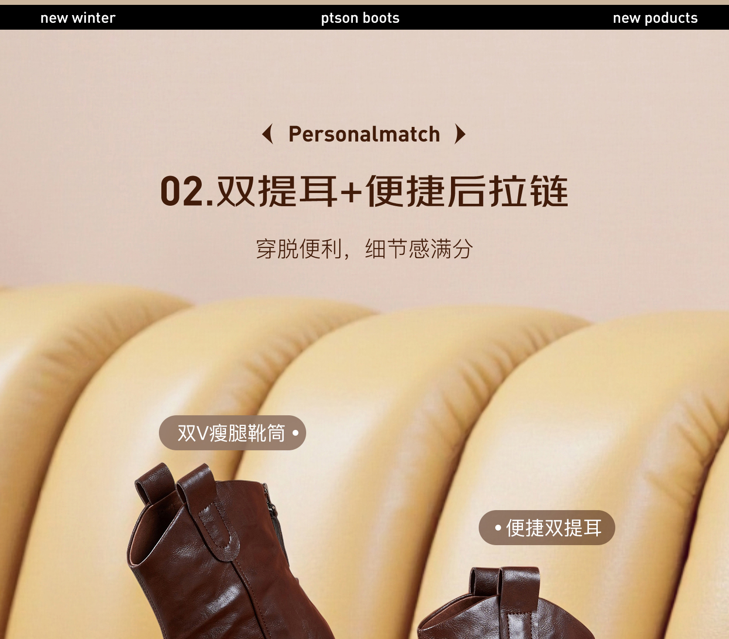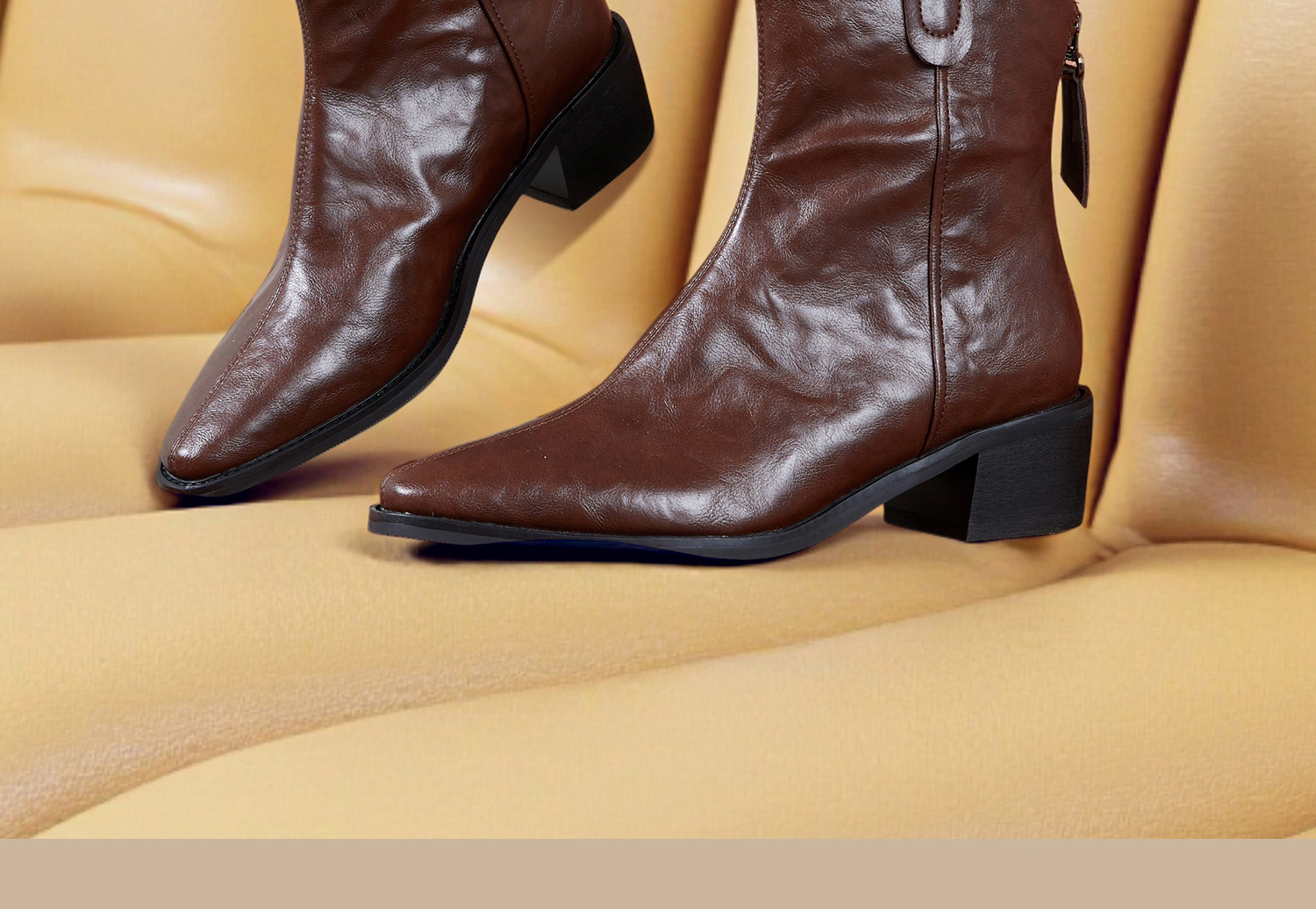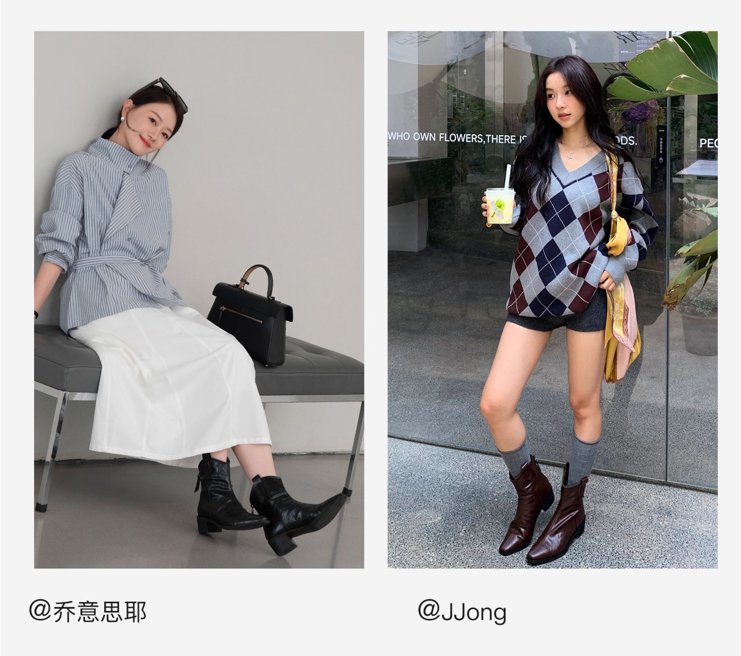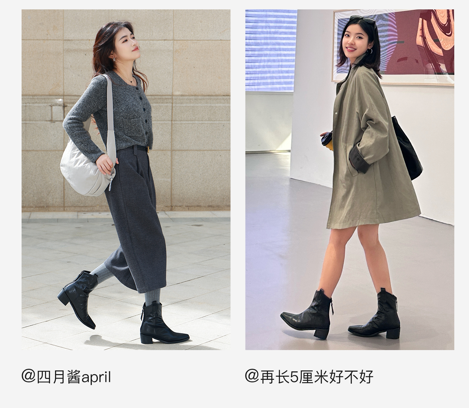 【土豆妈同款】百田森PYQ2C936西部牛仔靴女小短靴真皮尖头靴子美拉德