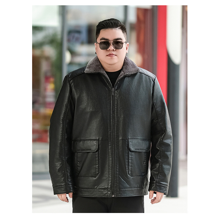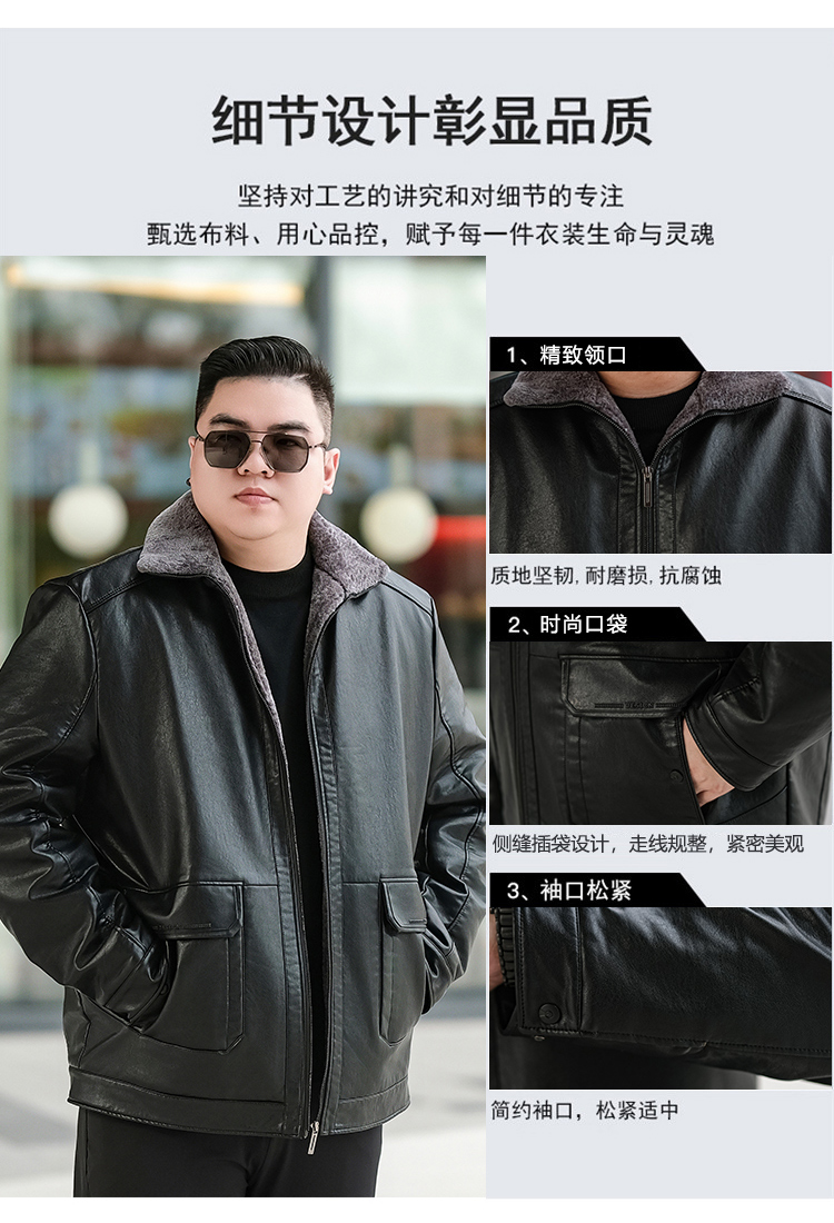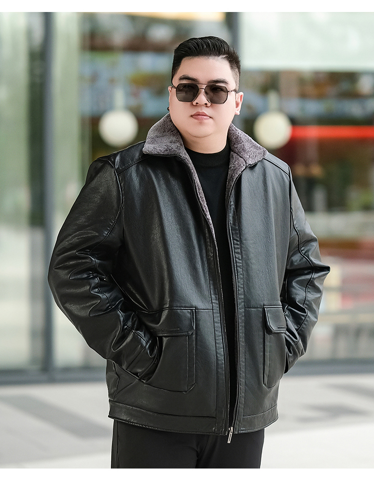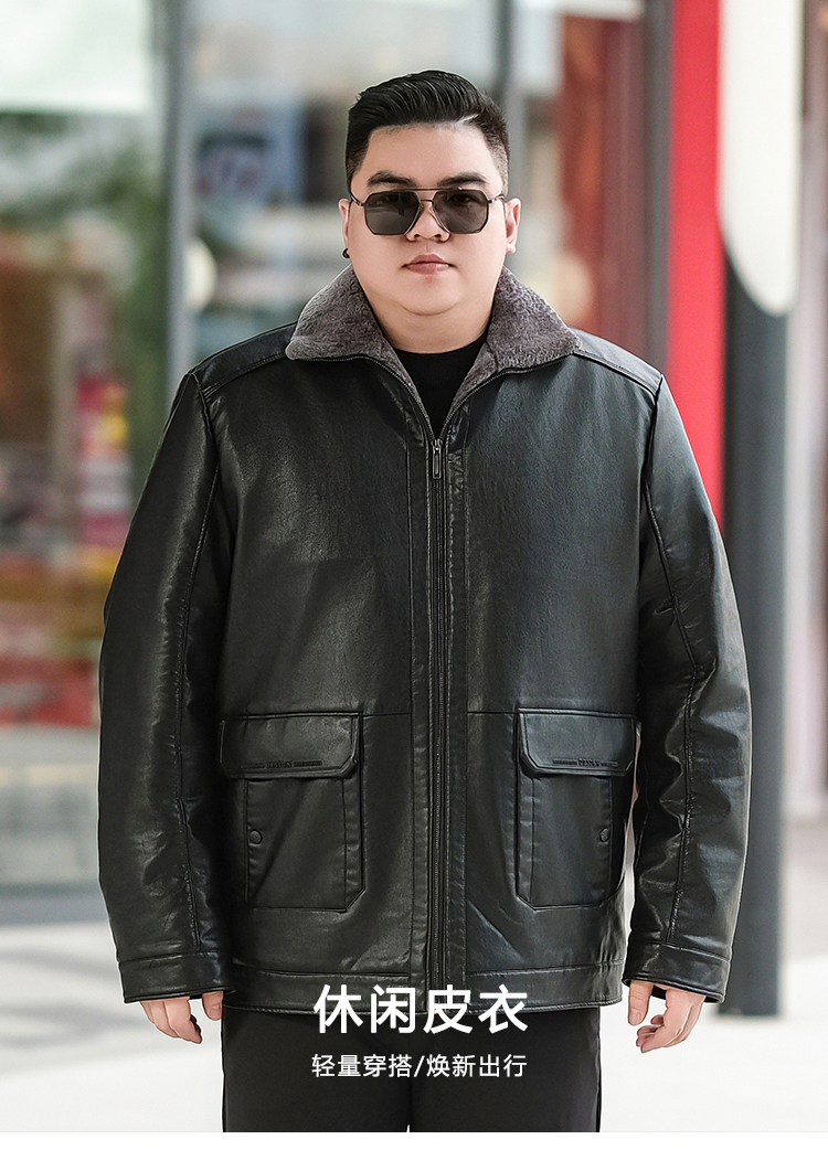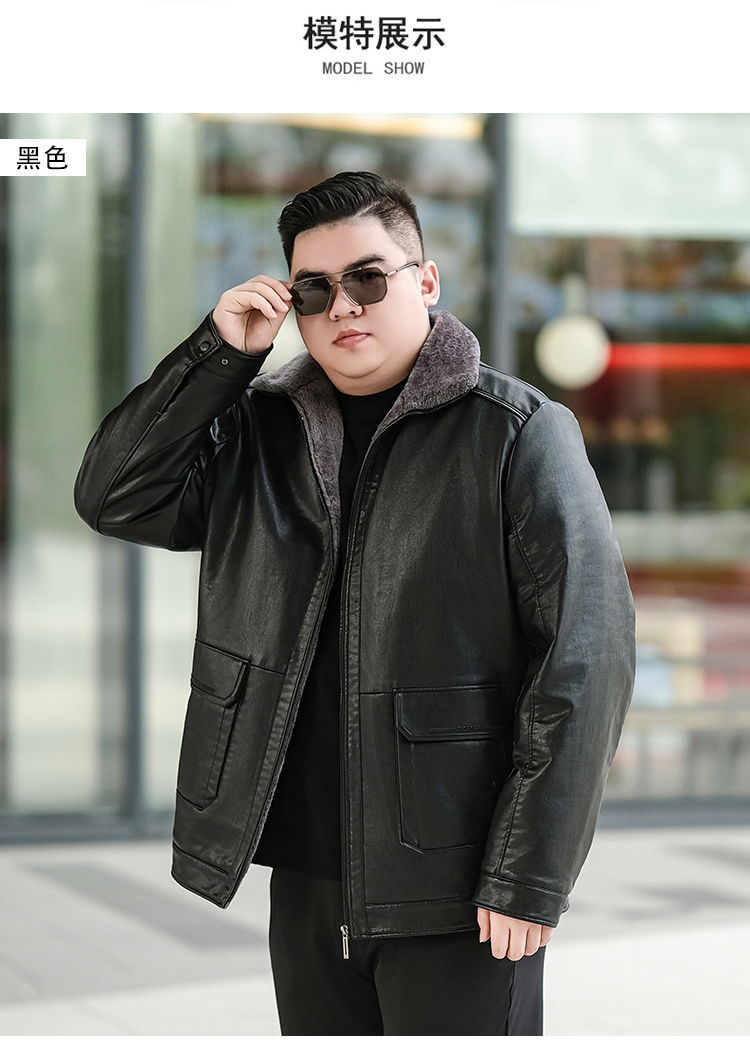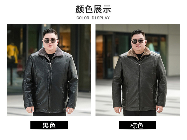 【拉链款】【新款DTX】大依优型大码翻领皮夹克PU加绒棉衣外套加肥加大肥佬休闲上衣男士胖子秋冬