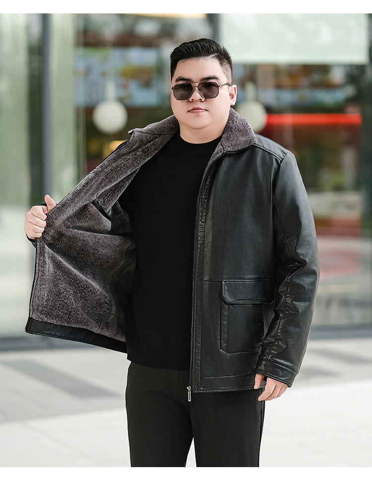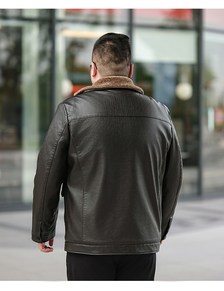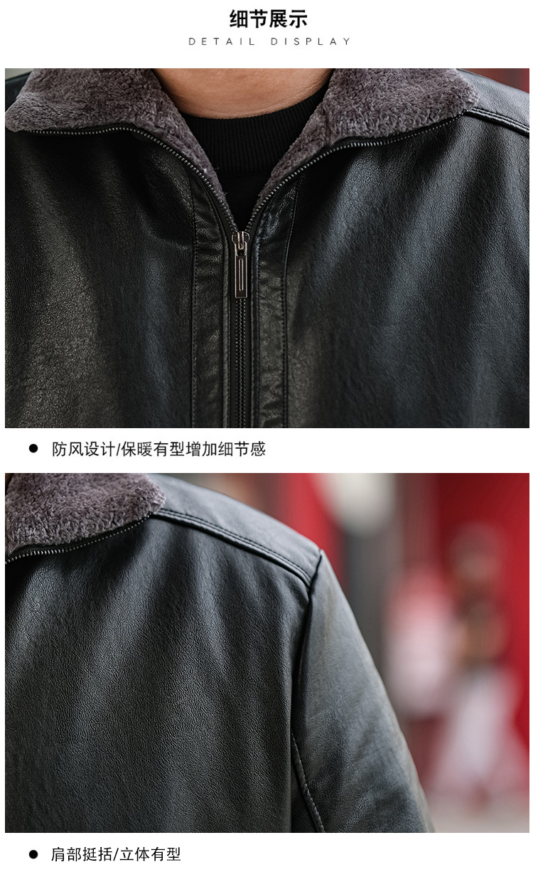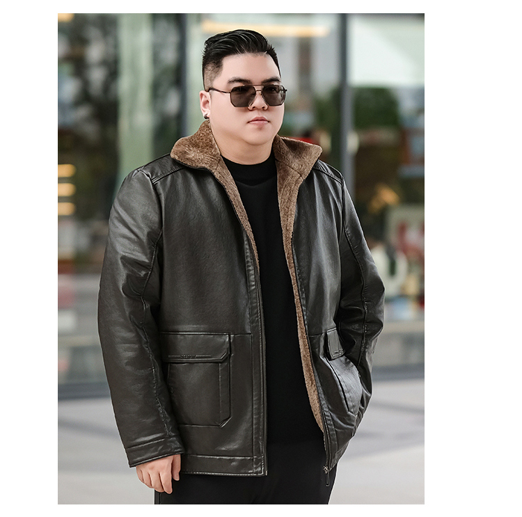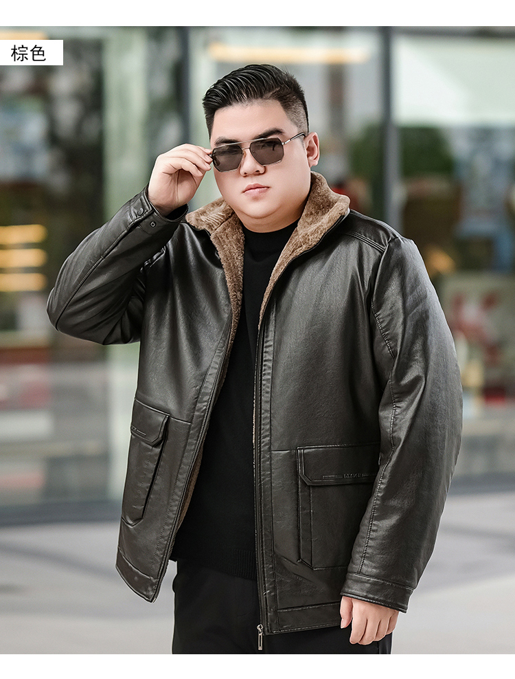 【拉链款】【新款DTX】大依优型大码翻领皮夹克PU加绒棉衣外套加肥加大肥佬休闲上衣男士胖子秋冬