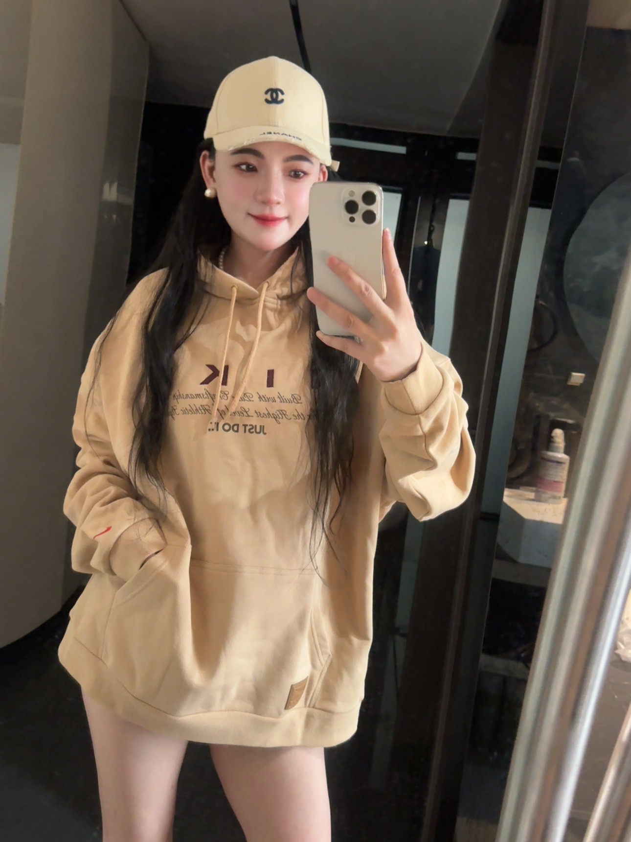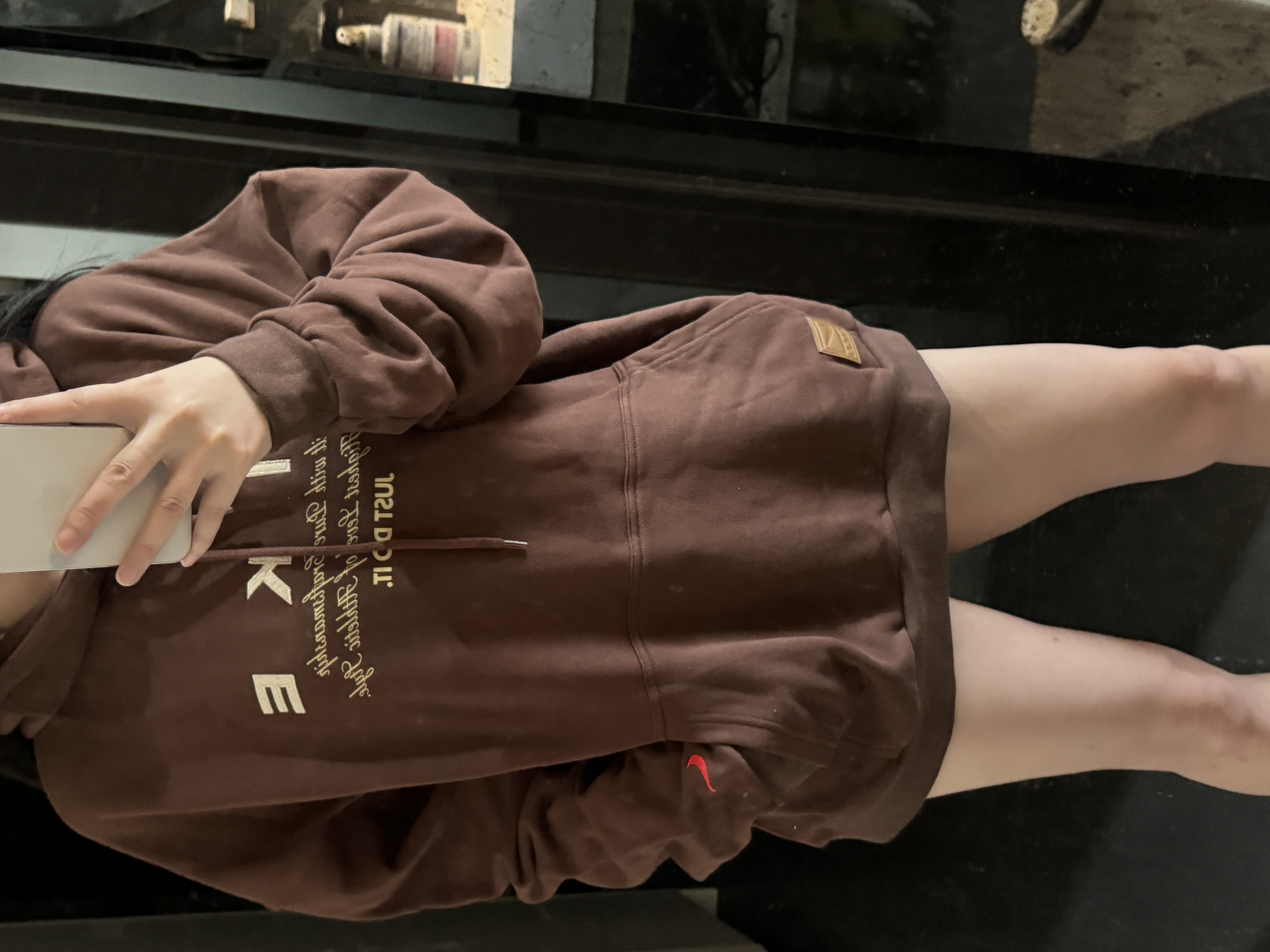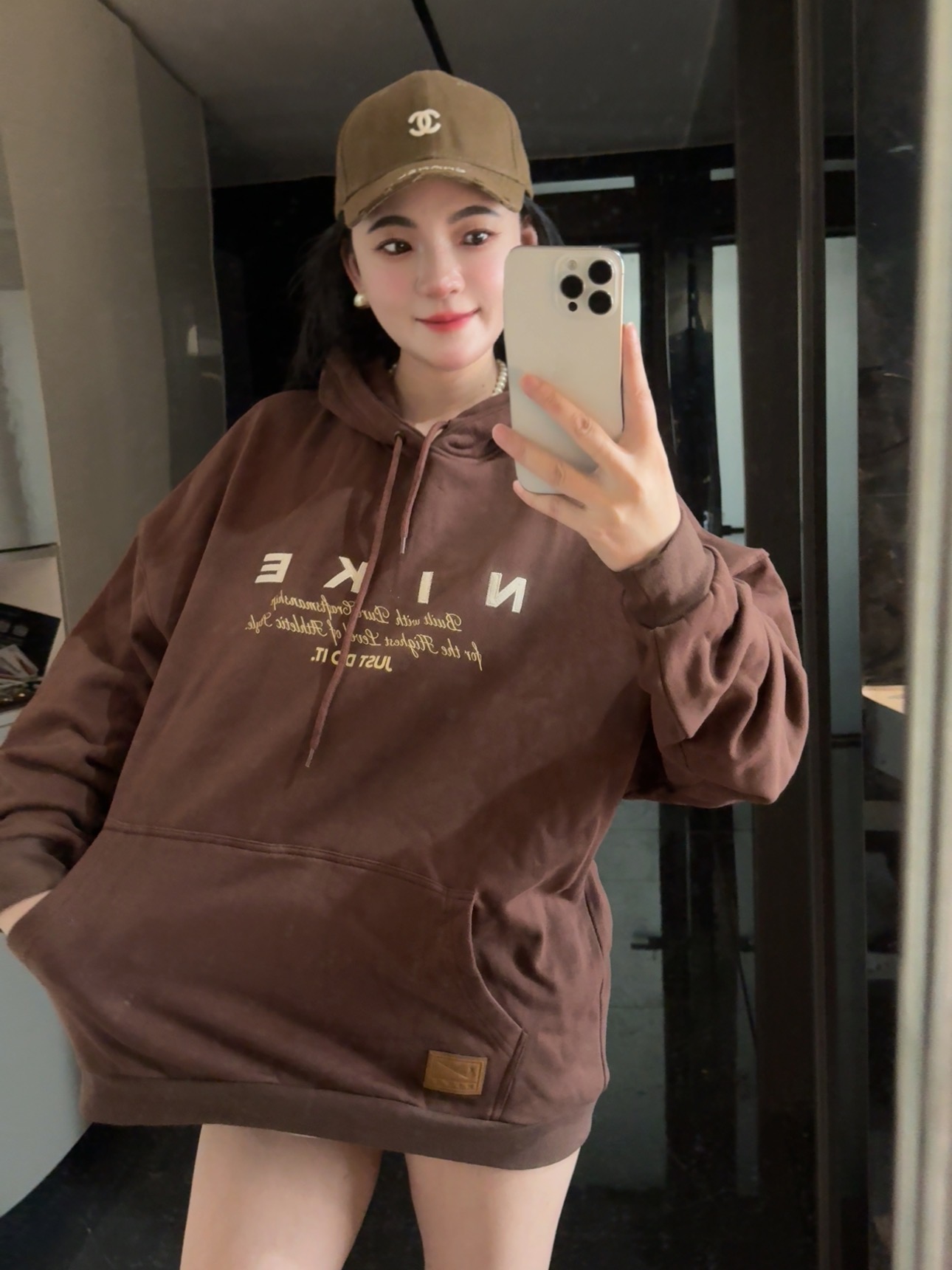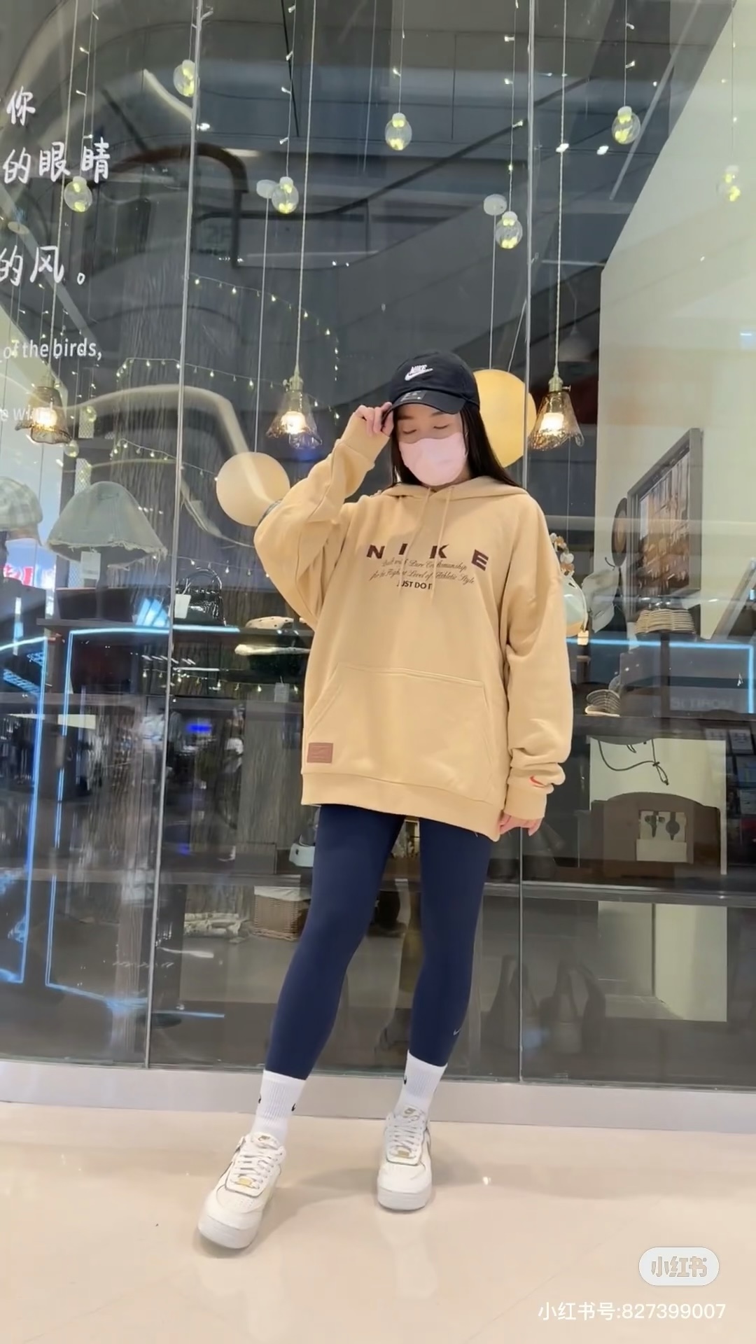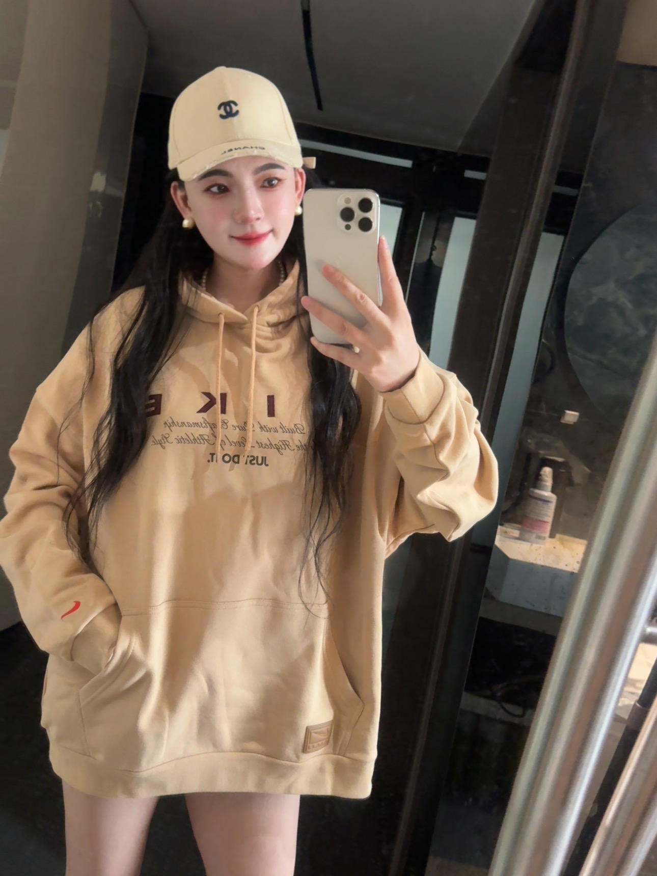 前侧袋鼠口袋边缘带有棕色皮革质感的Ni*ke标签 这款卫衣在官网马上断货了。如果你也喜欢这种"高级慵懒感",想要一件既有设计感又舒适百搭的卫衣,那这件Ni*ke米色复古连帽卫衣绝对是你的不二之选!