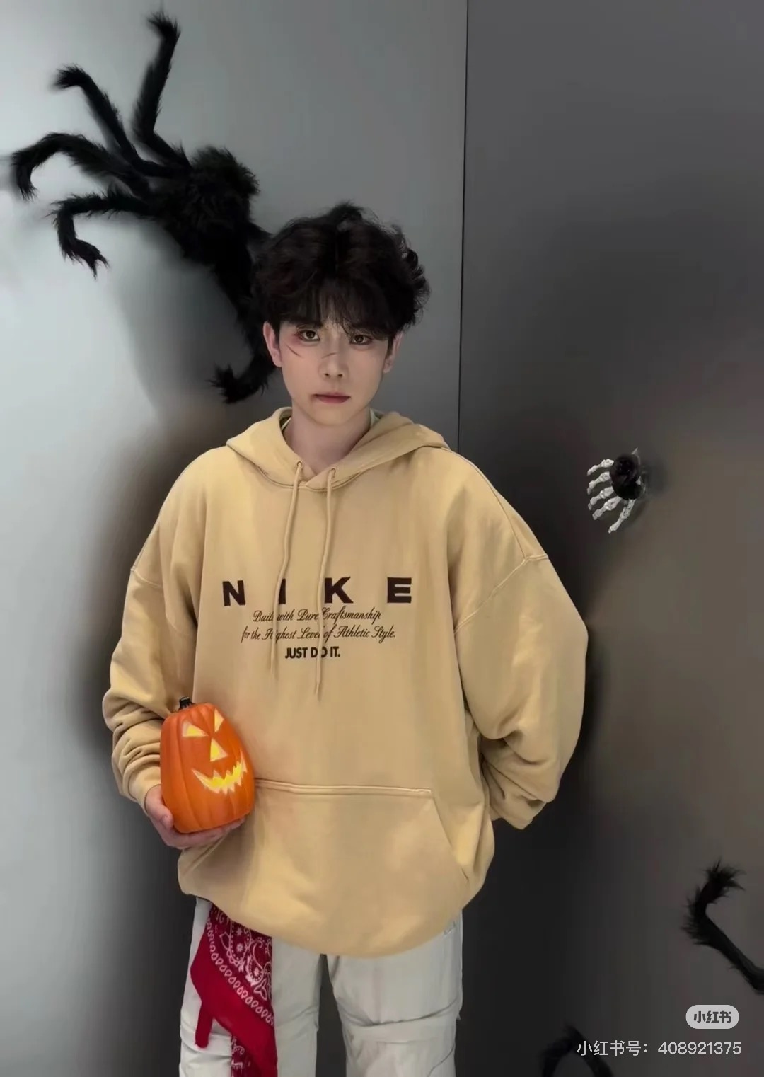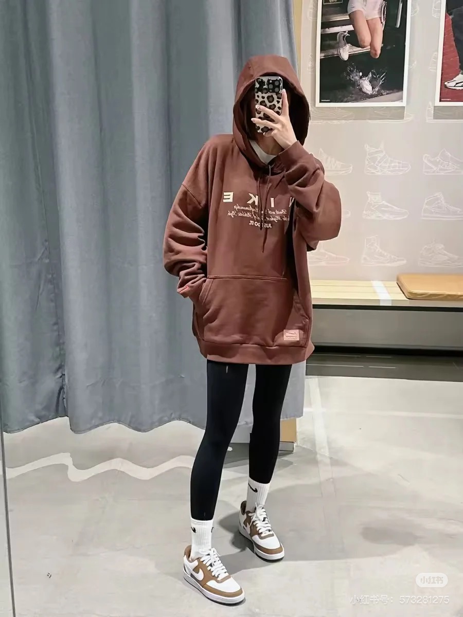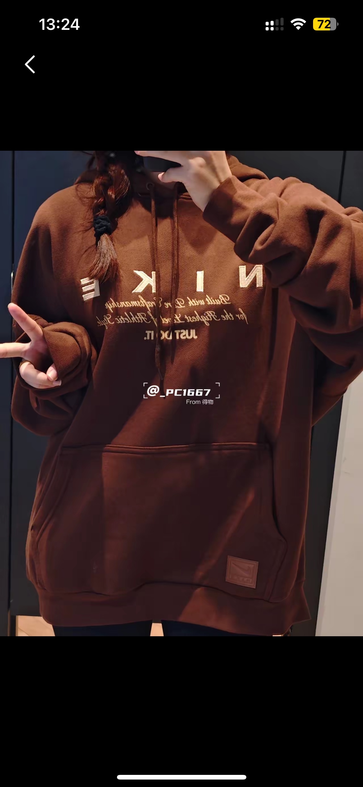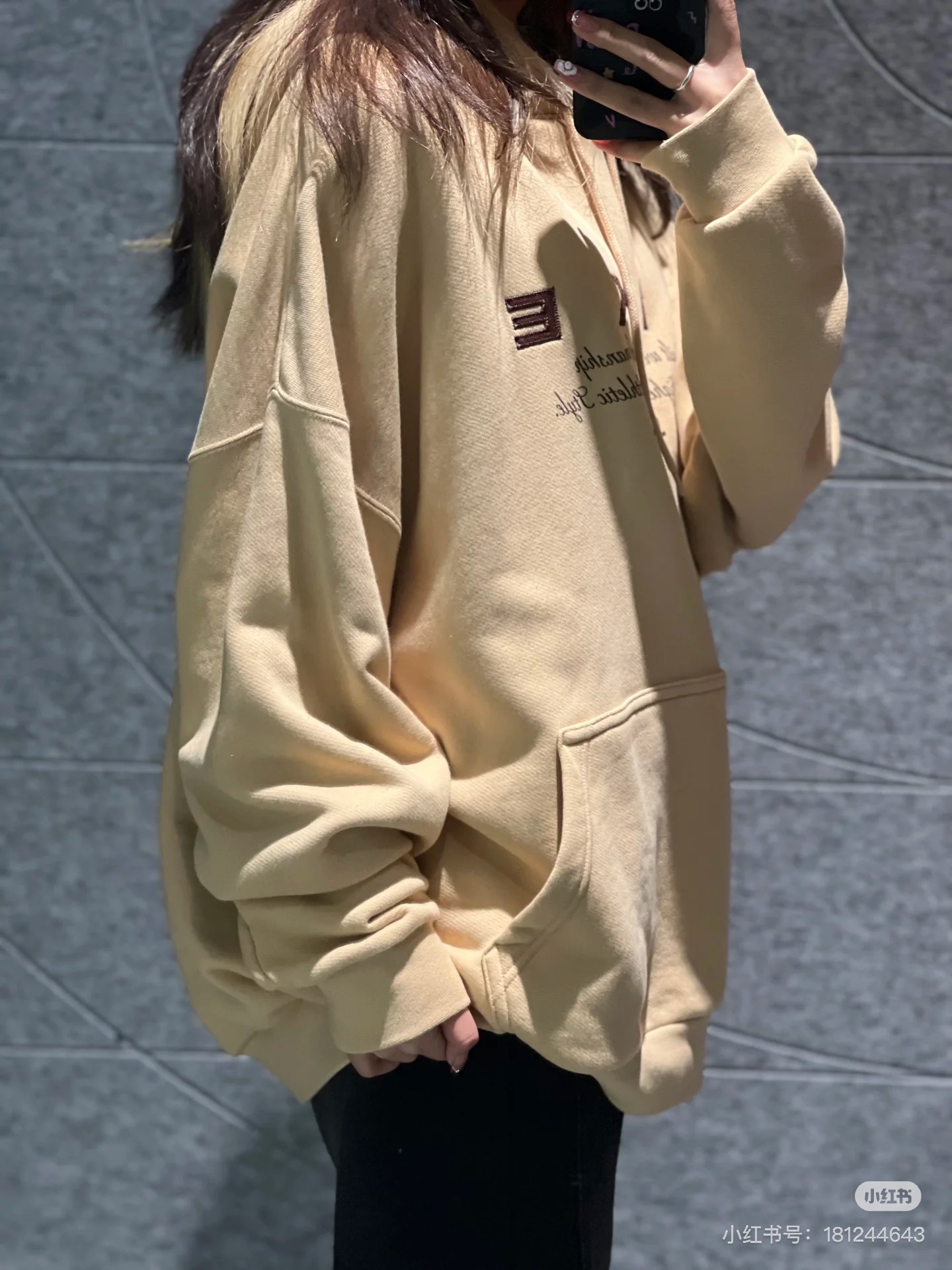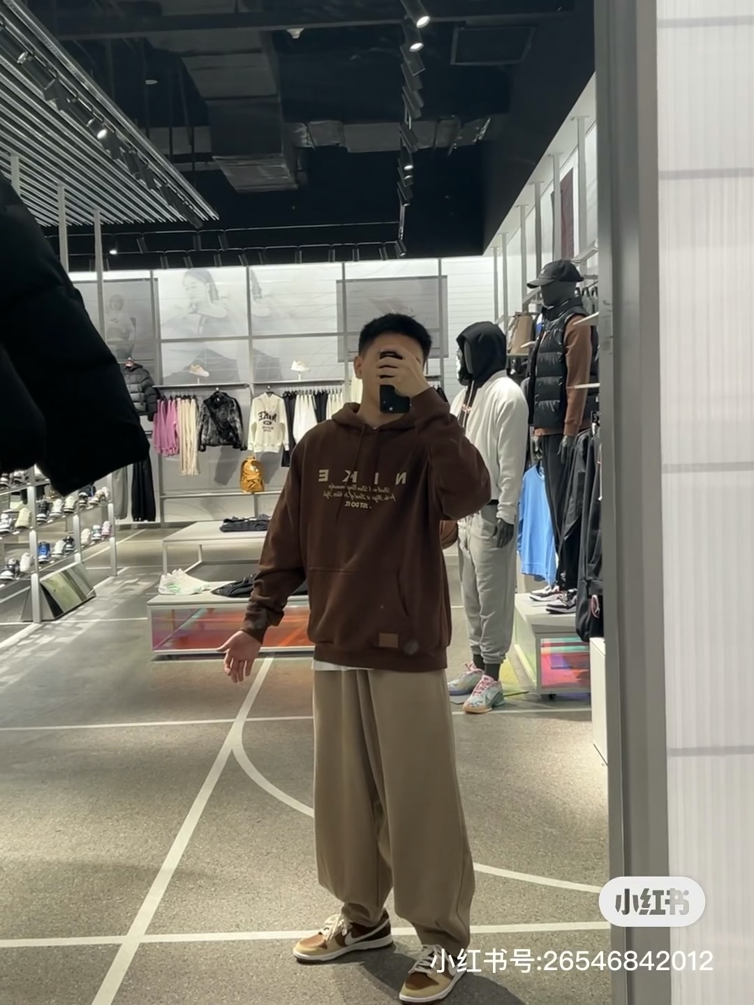 前侧袋鼠口袋边缘带有棕色皮革质感的Ni*ke标签 这款卫衣在官网马上断货了。如果你也喜欢这种"高级慵懒感",想要一件既有设计感又舒适百搭的卫衣,那这件Ni*ke米色复古连帽卫衣绝对是你的不二之选!