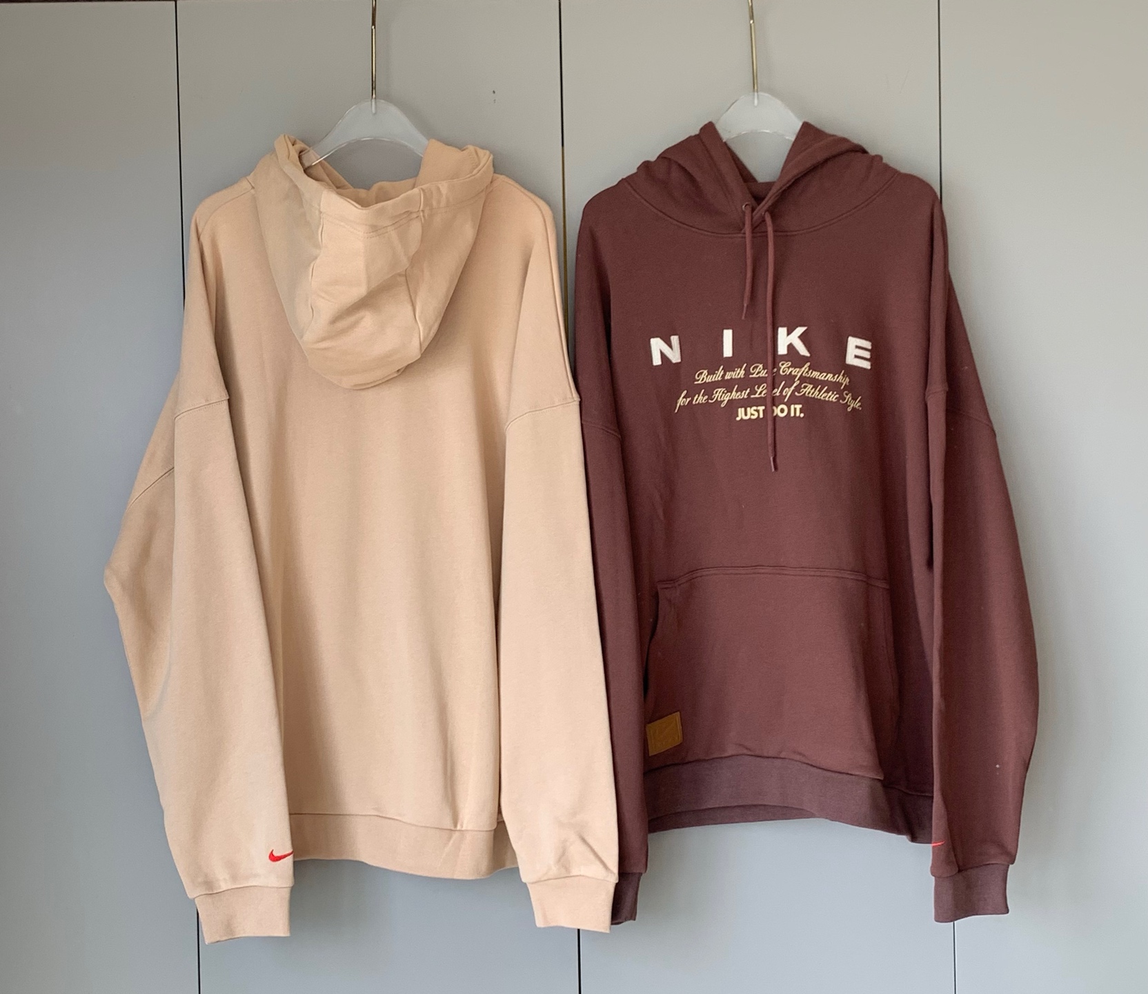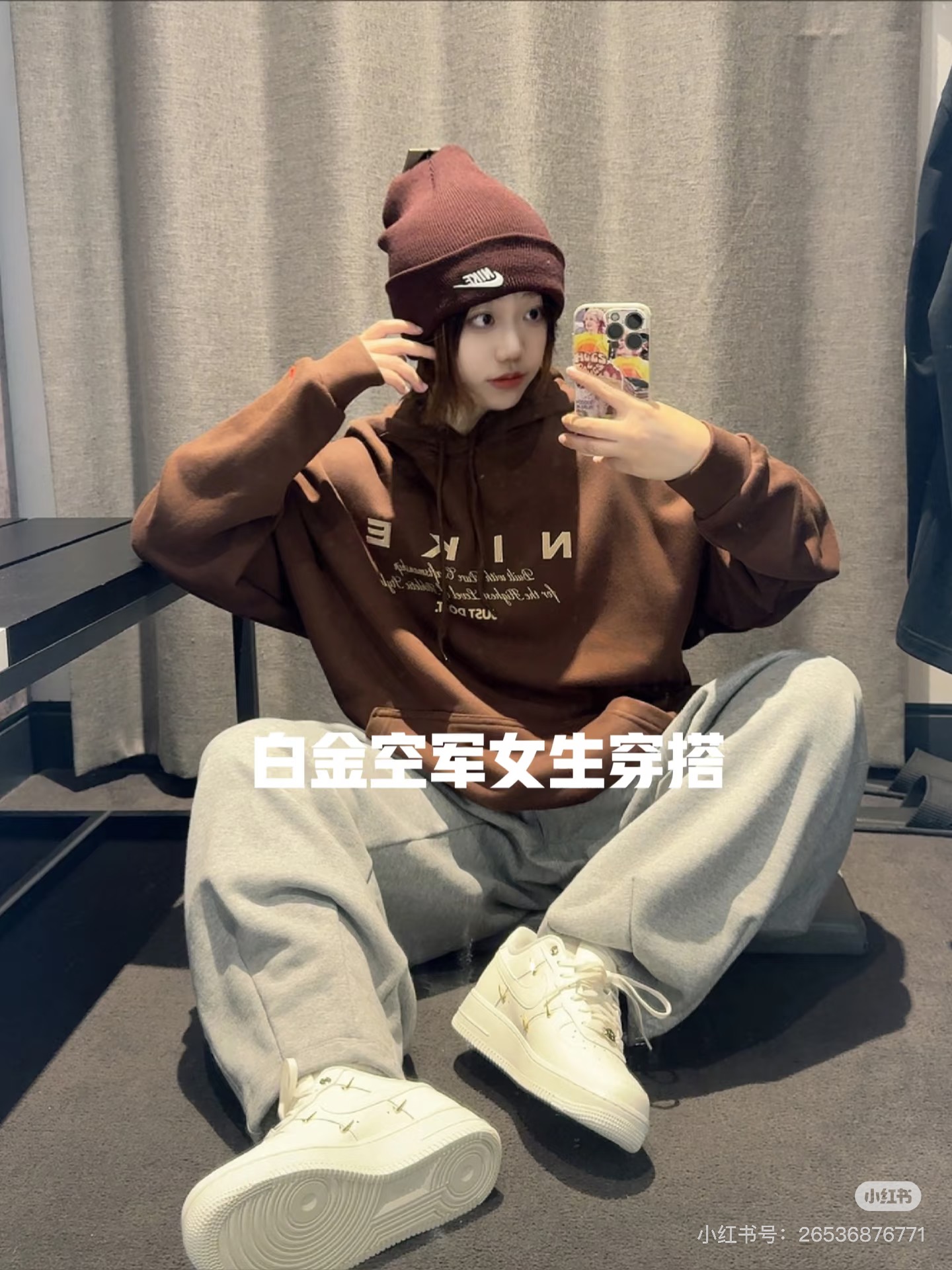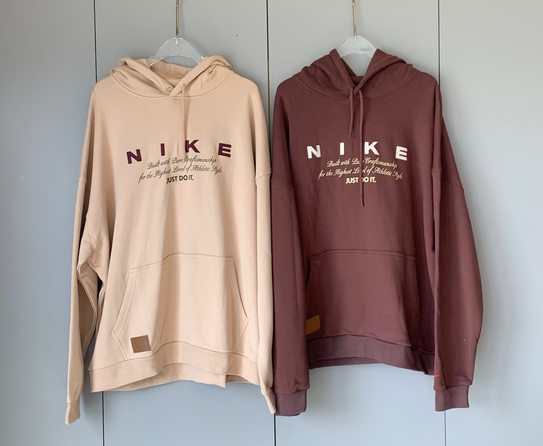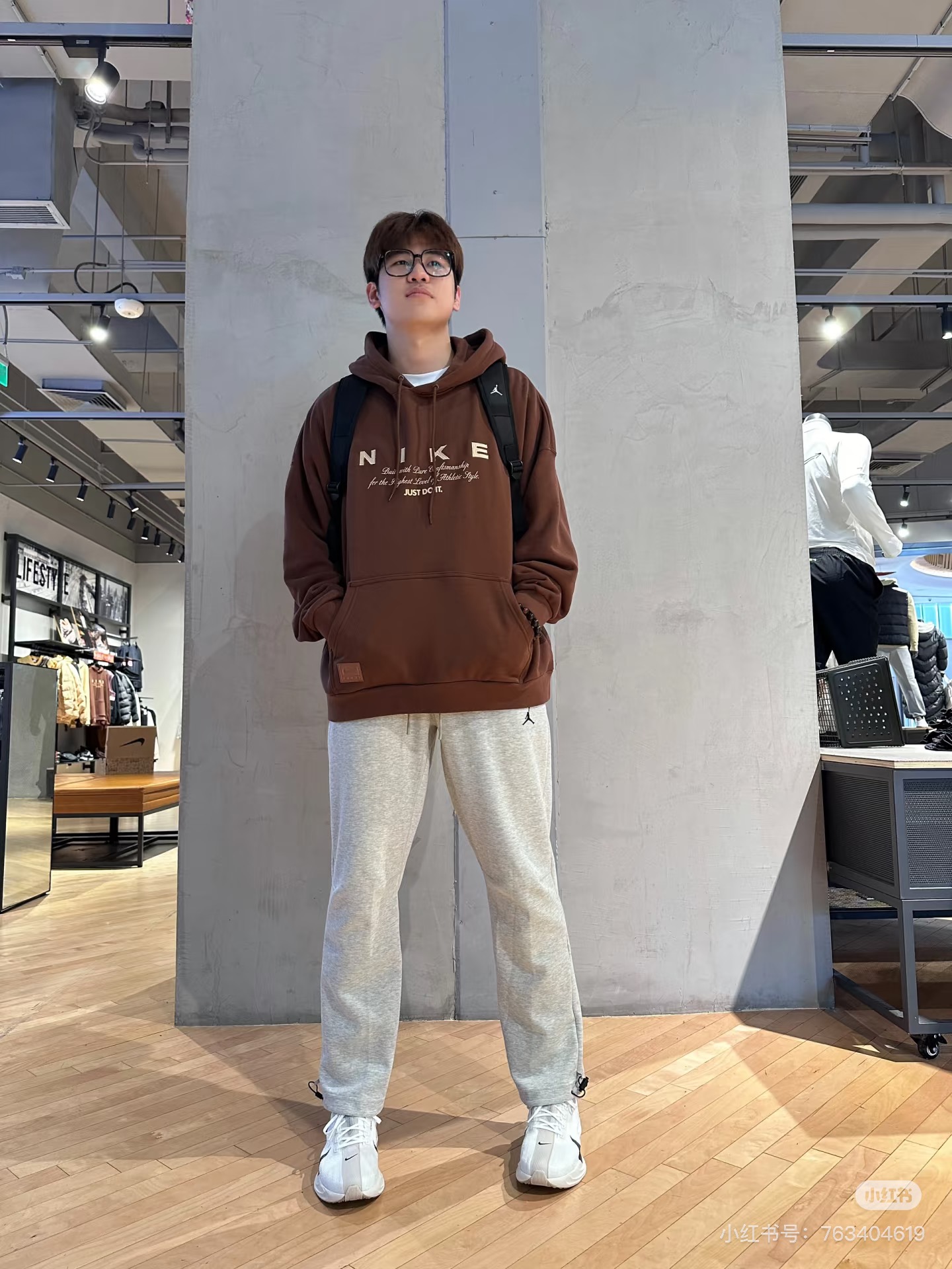 前侧袋鼠口袋边缘带有棕色皮革质感的Ni*ke标签 这款卫衣在官网马上断货了。如果你也喜欢这种"高级慵懒感",想要一件既有设计感又舒适百搭的卫衣,那这件Ni*ke米色复古连帽卫衣绝对是你的不二之选!