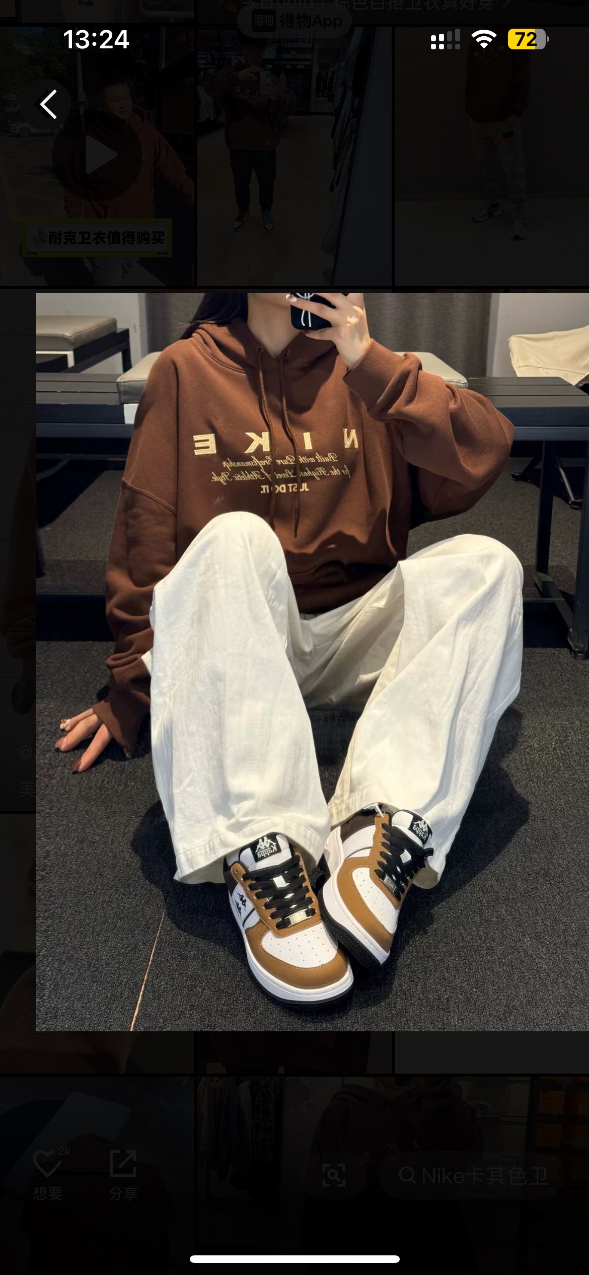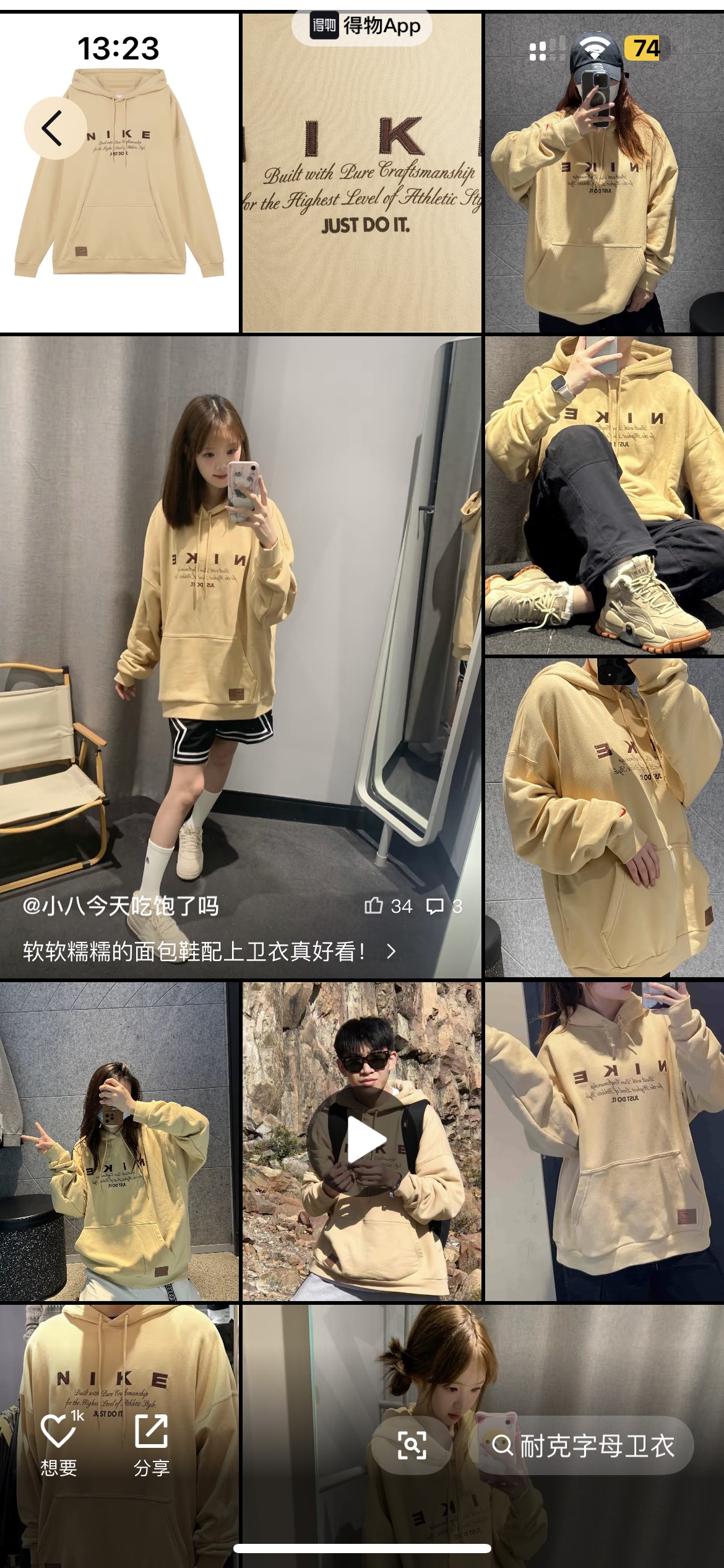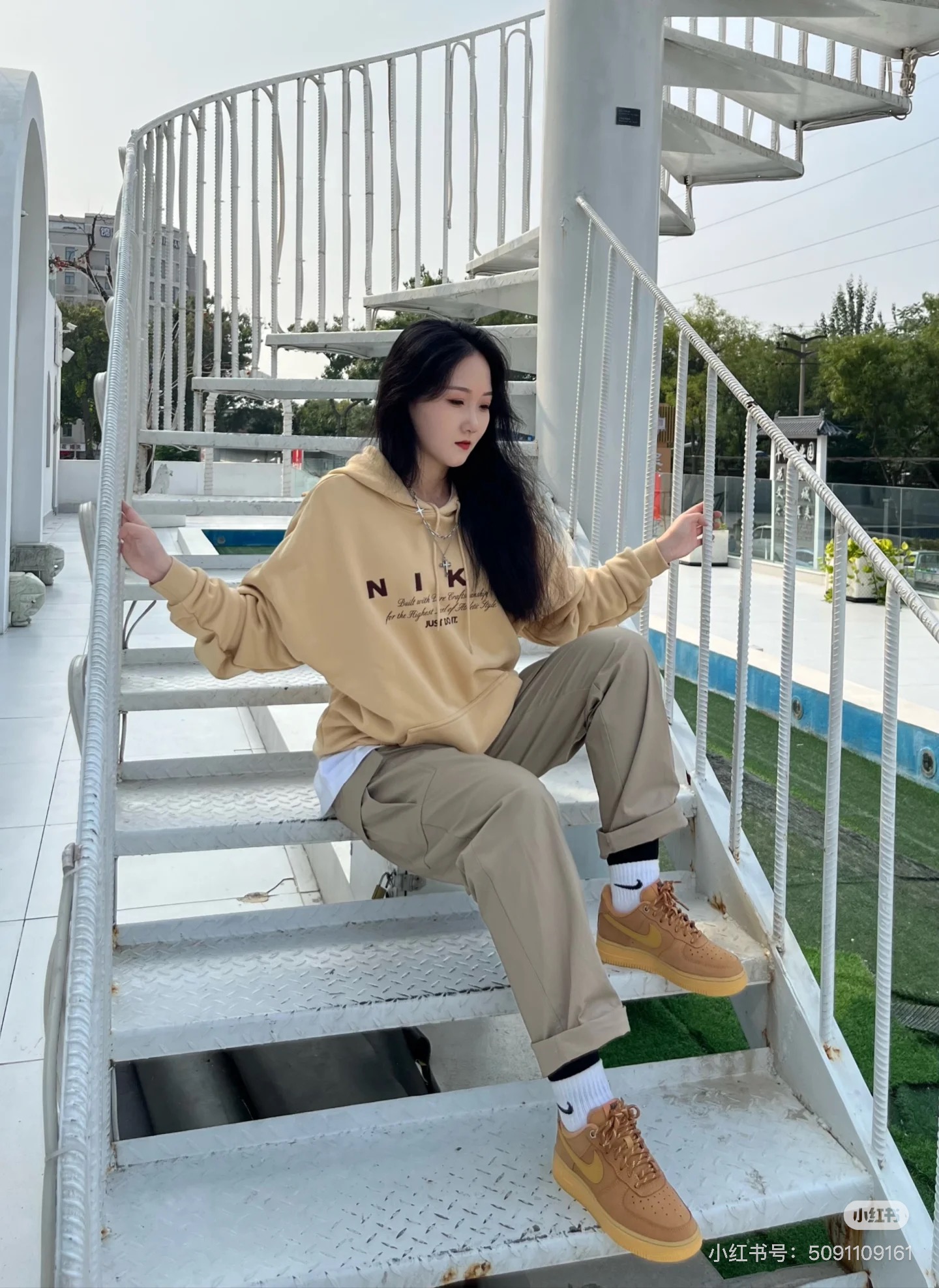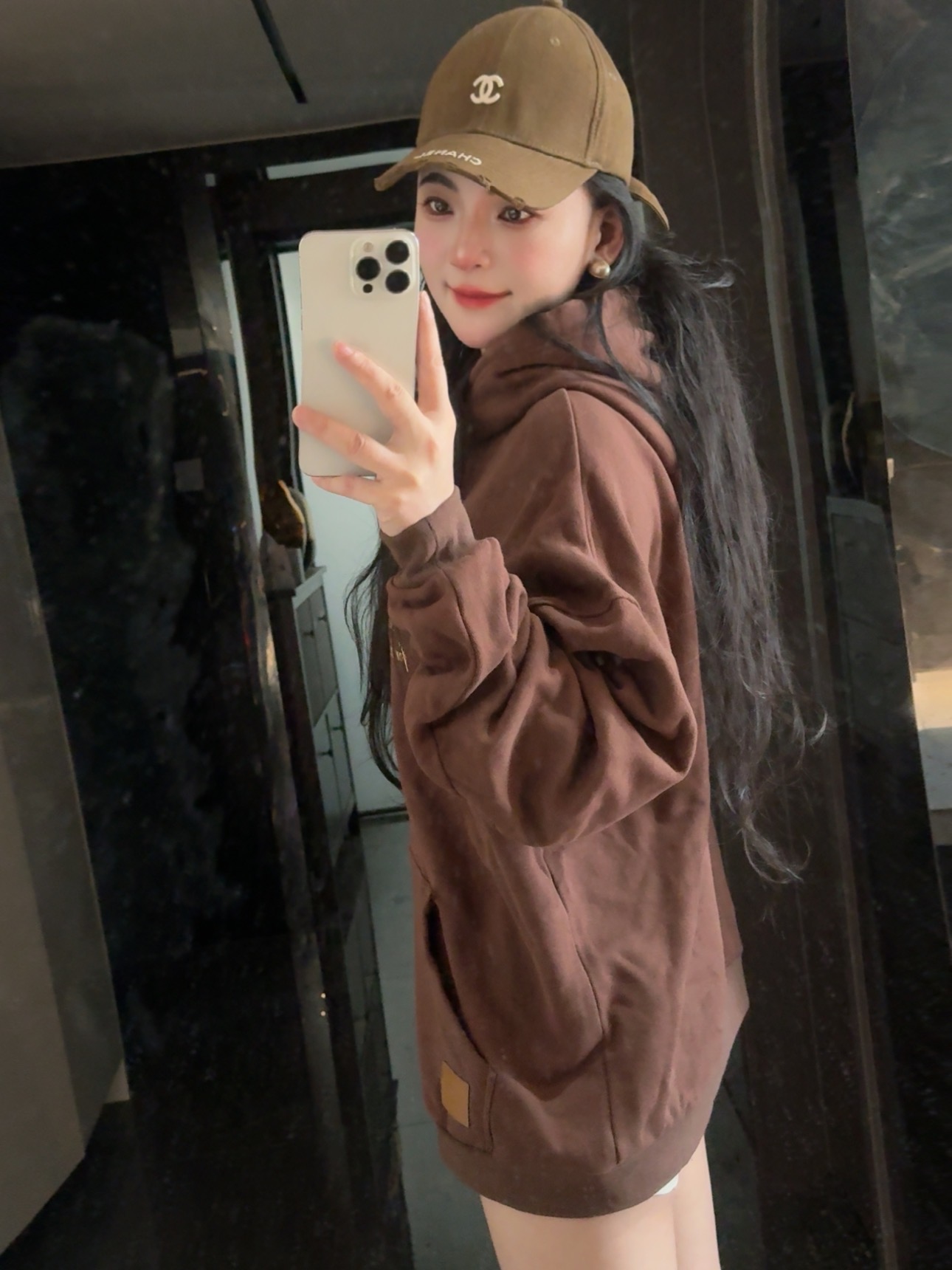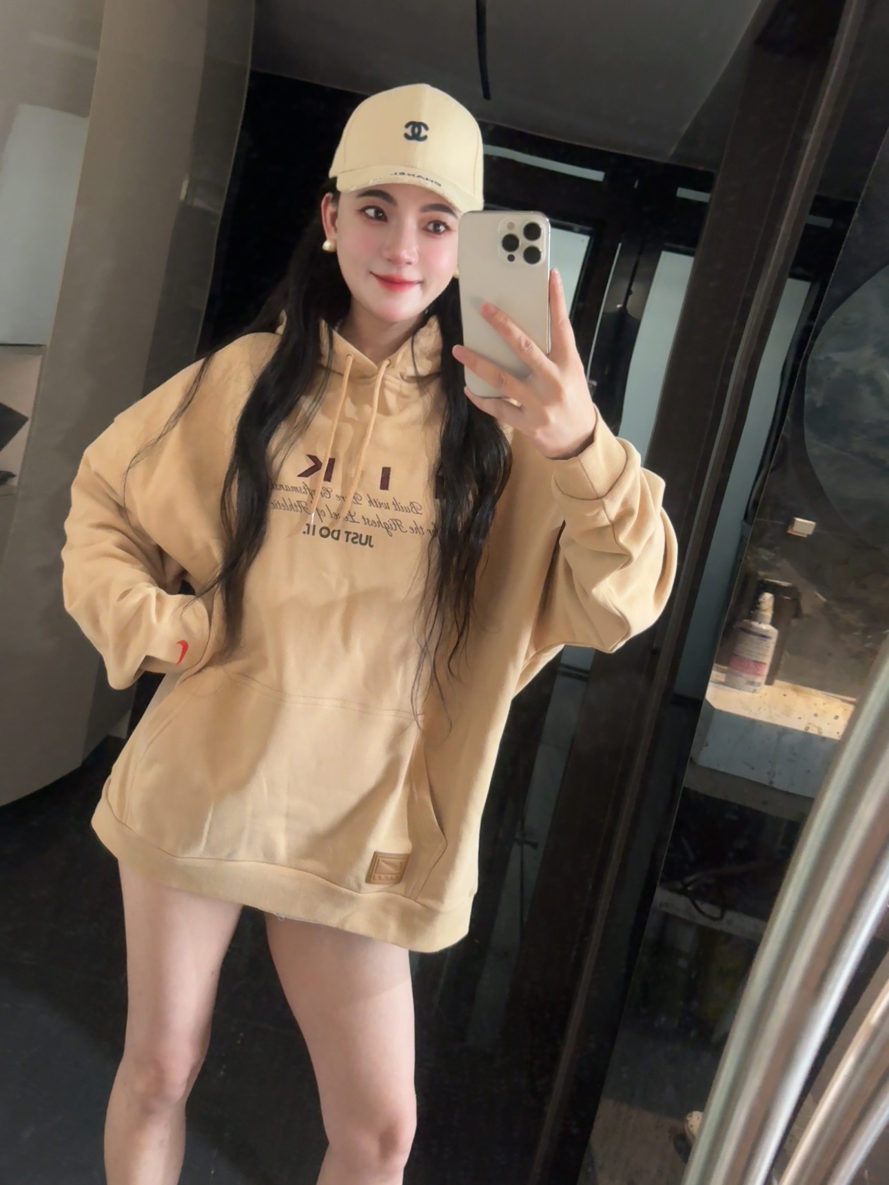 前侧袋鼠口袋边缘带有棕色皮革质感的Ni*ke标签 这款卫衣在官网马上断货了。如果你也喜欢这种"高级慵懒感",想要一件既有设计感又舒适百搭的卫衣,那这件Ni*ke米色复古连帽卫衣绝对是你的不二之选!