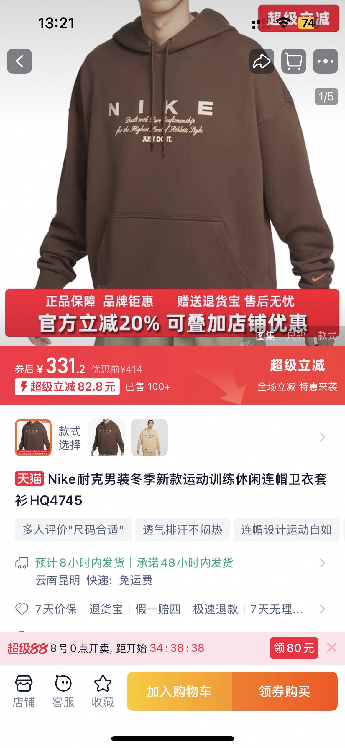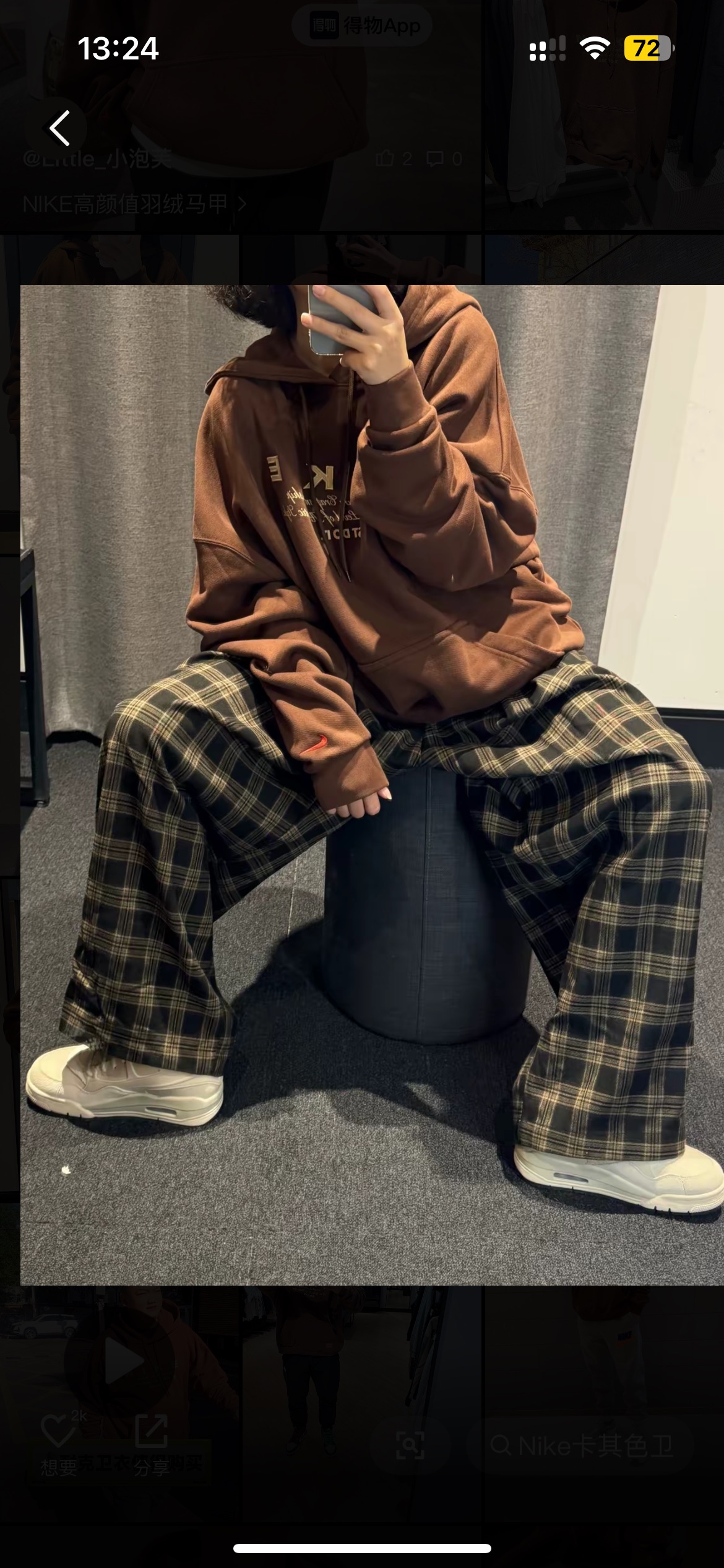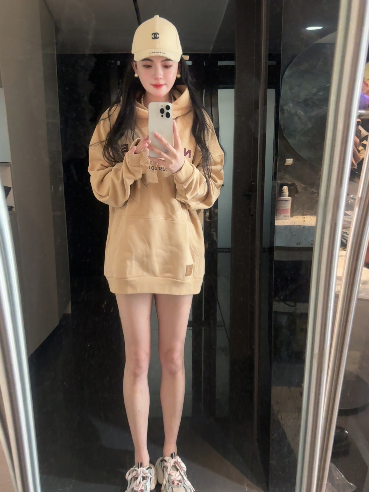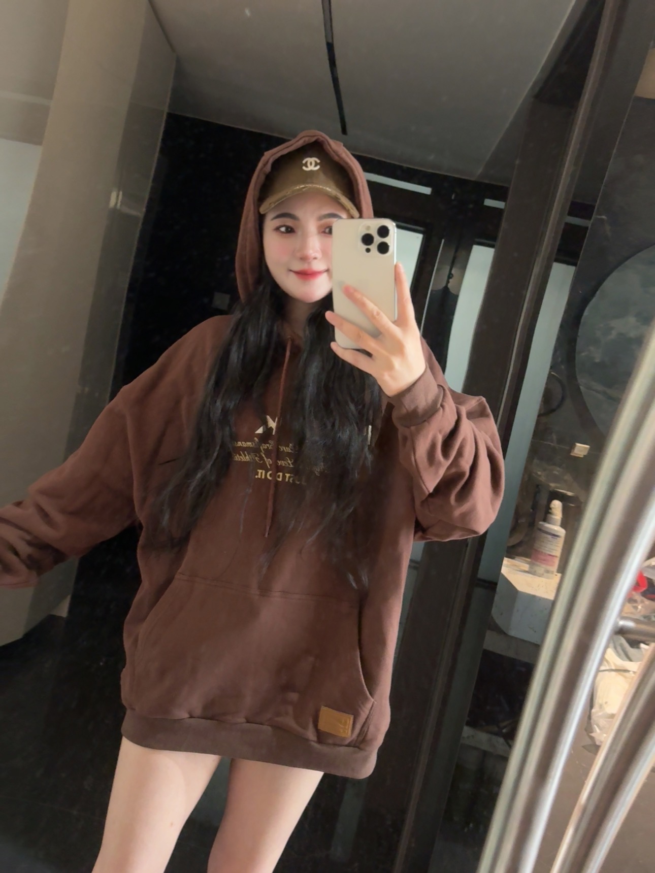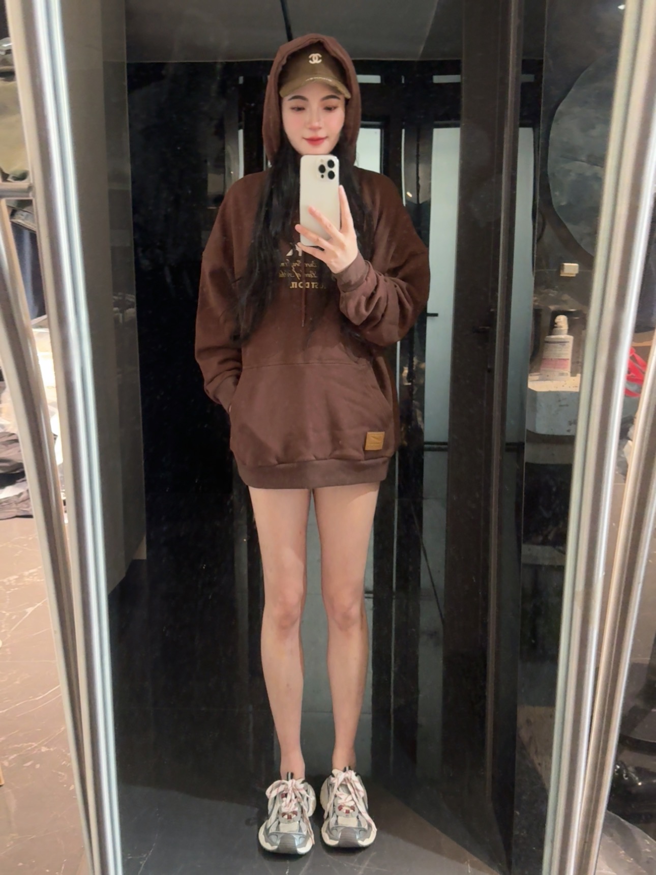 前侧袋鼠口袋边缘带有棕色皮革质感的Ni*ke标签 这款卫衣在官网马上断货了。如果你也喜欢这种"高级慵懒感",想要一件既有设计感又舒适百搭的卫衣,那这件Ni*ke米色复古连帽卫衣绝对是你的不二之选!