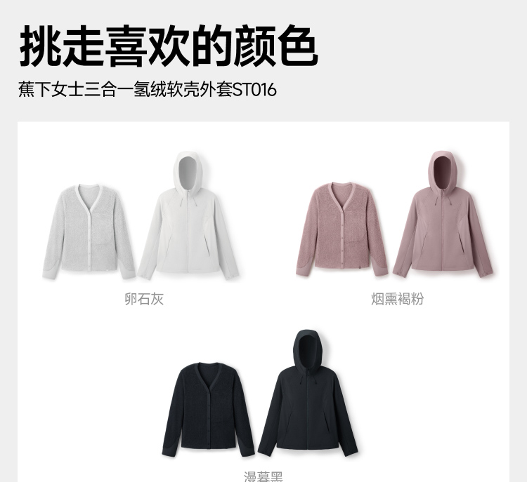 【蕉下精选】蕉下女士三合一氢绒软壳外套ST01625+ST01725