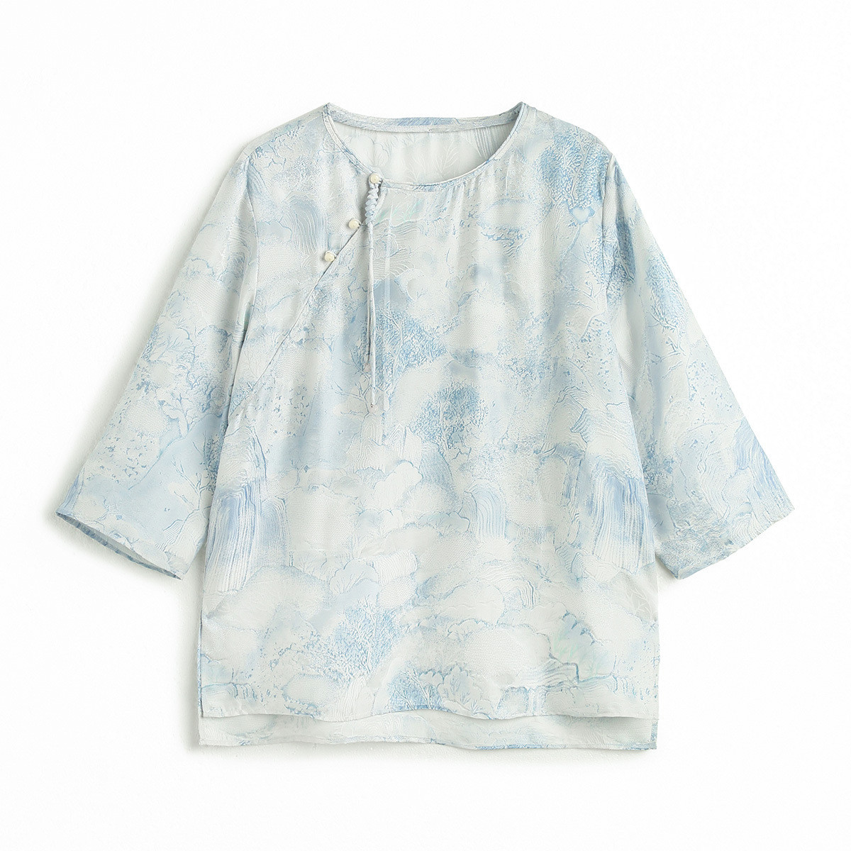 PALUOPO/PL19姆米桑波缎圆领宽松国风印花重磅桑蚕丝T恤ES2F1027Z