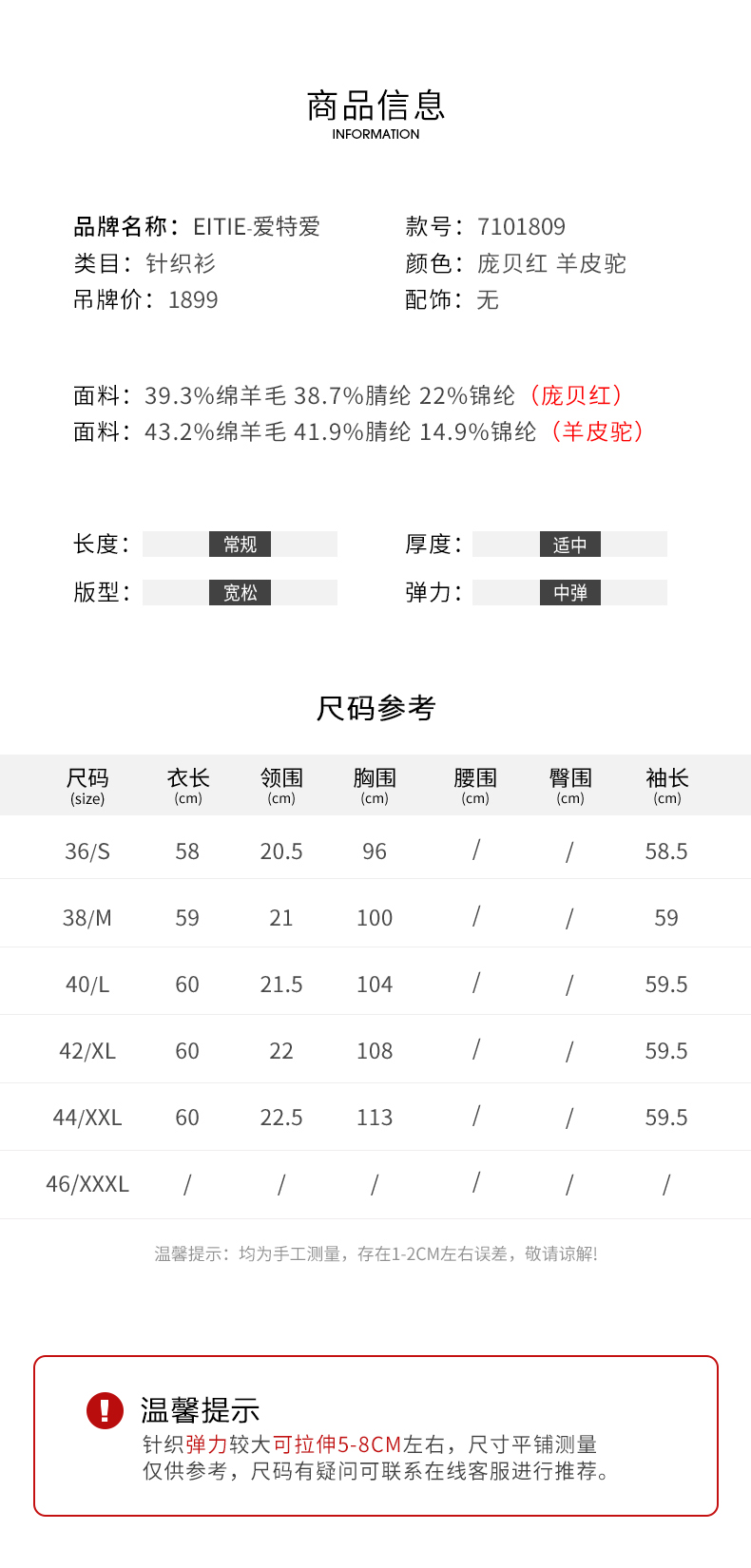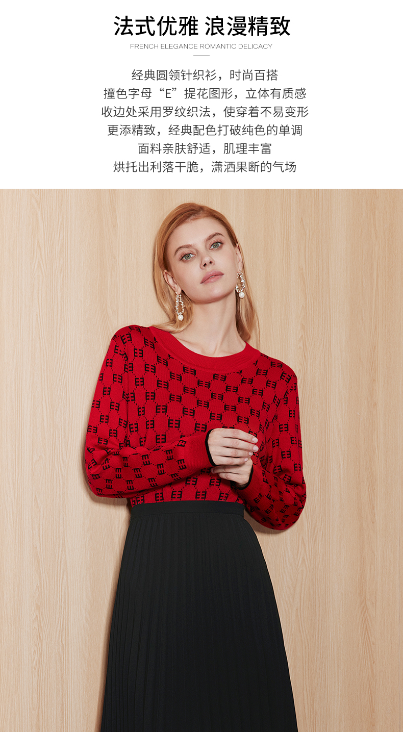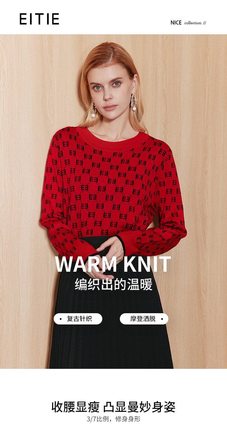 EITIE爱特爱秋季新款时尚修身显瘦套头打底针织衫7101809