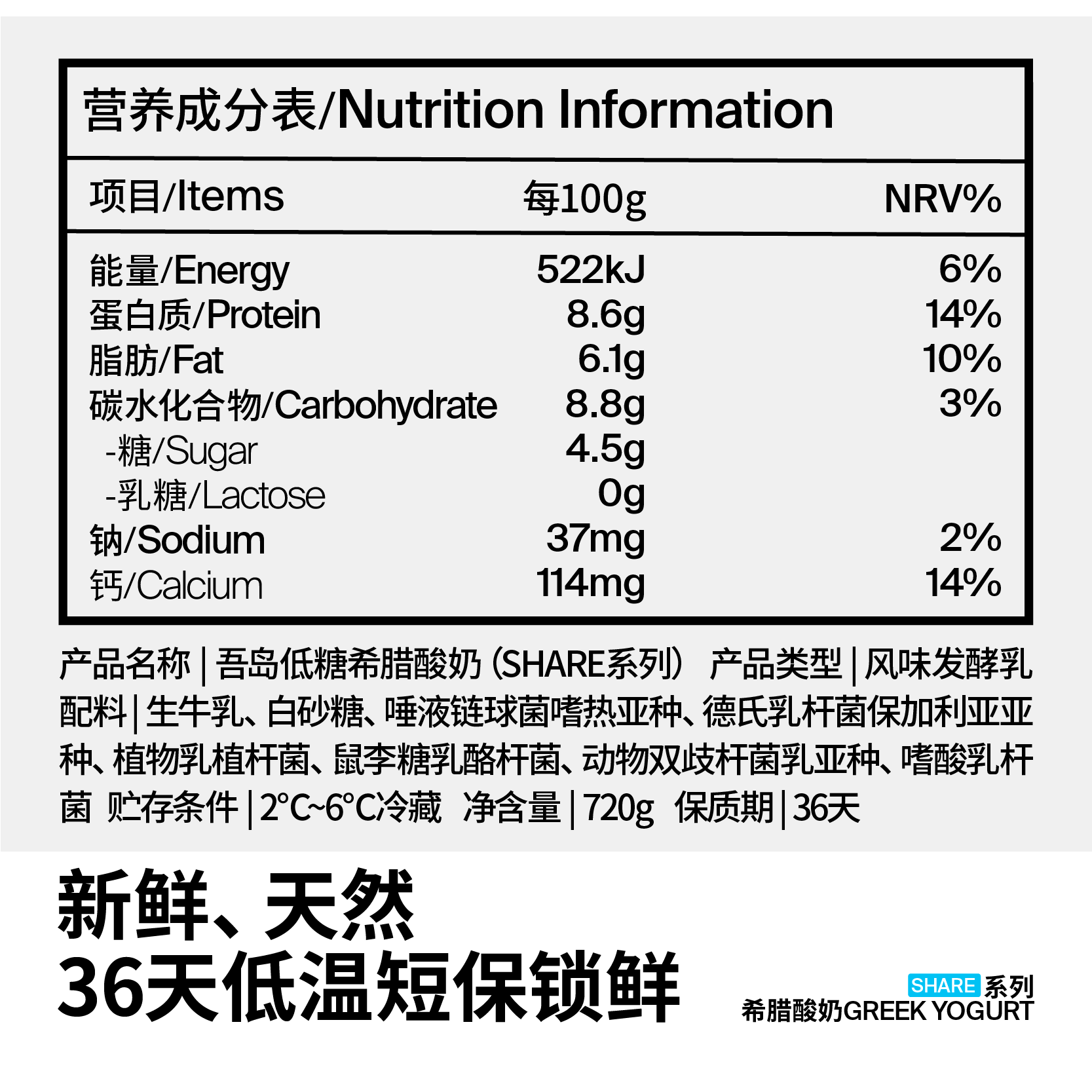 - 720g无蔗糖保质期28天、其余口味&规格保质期均为36天